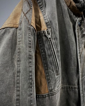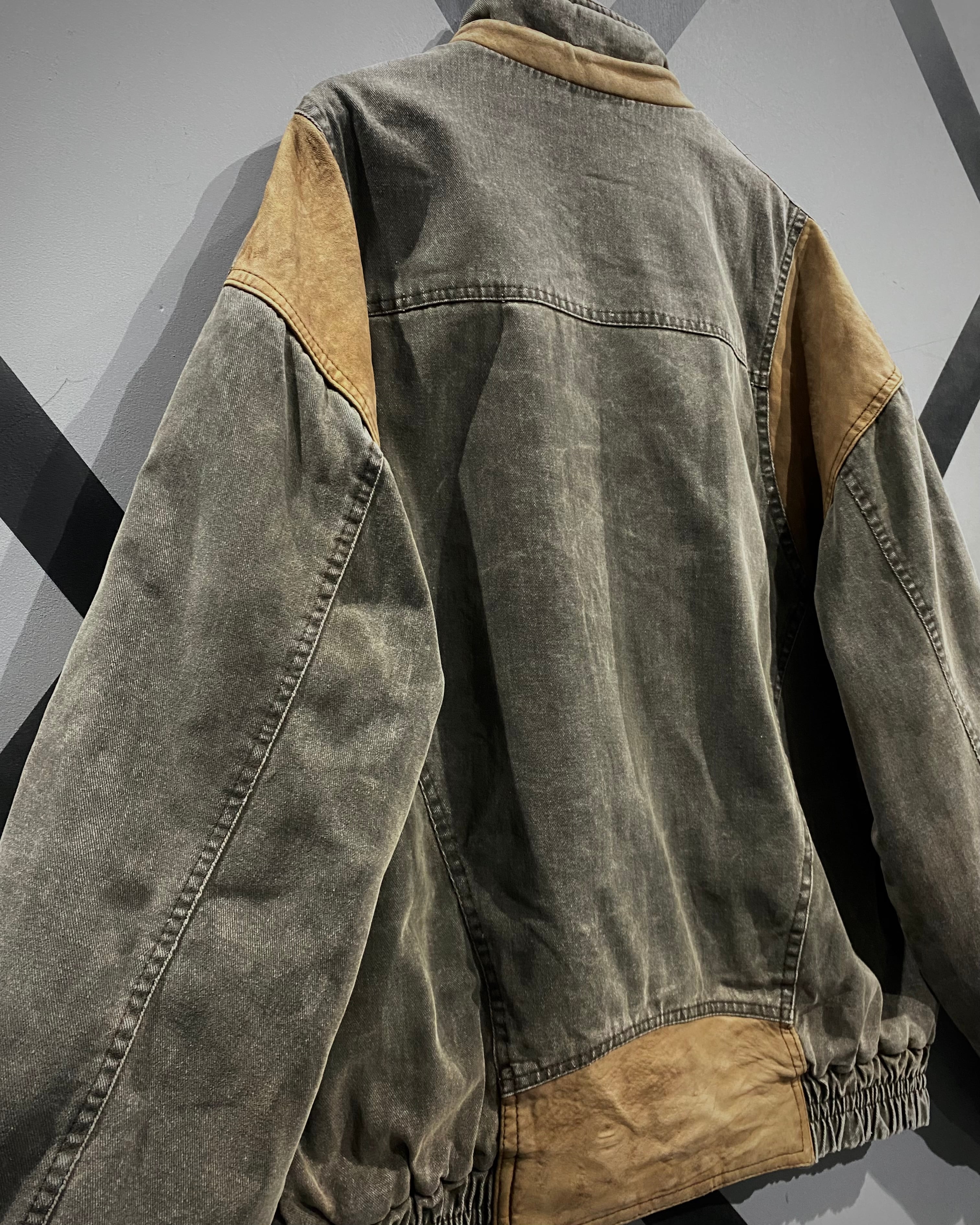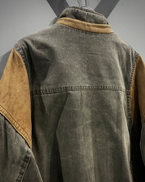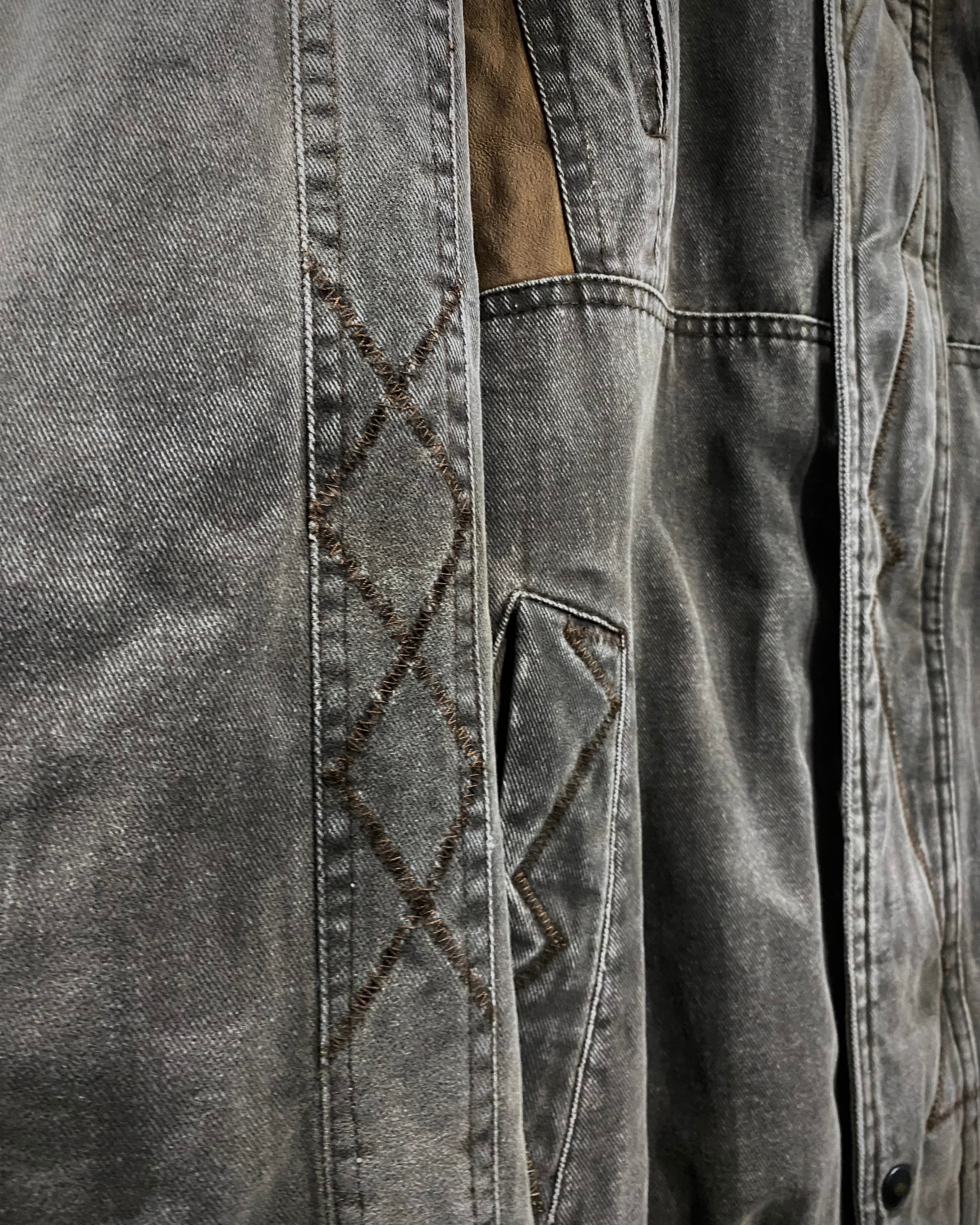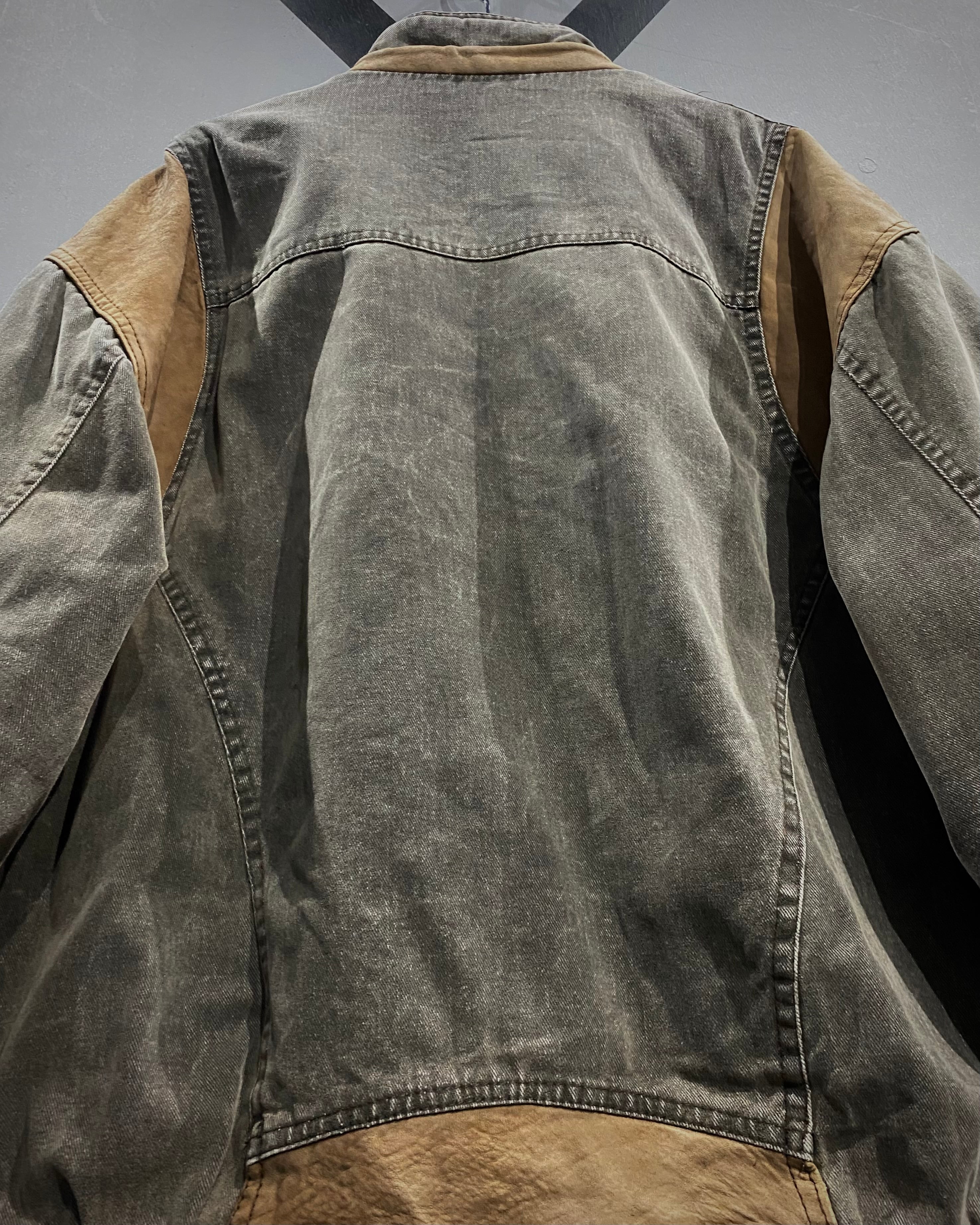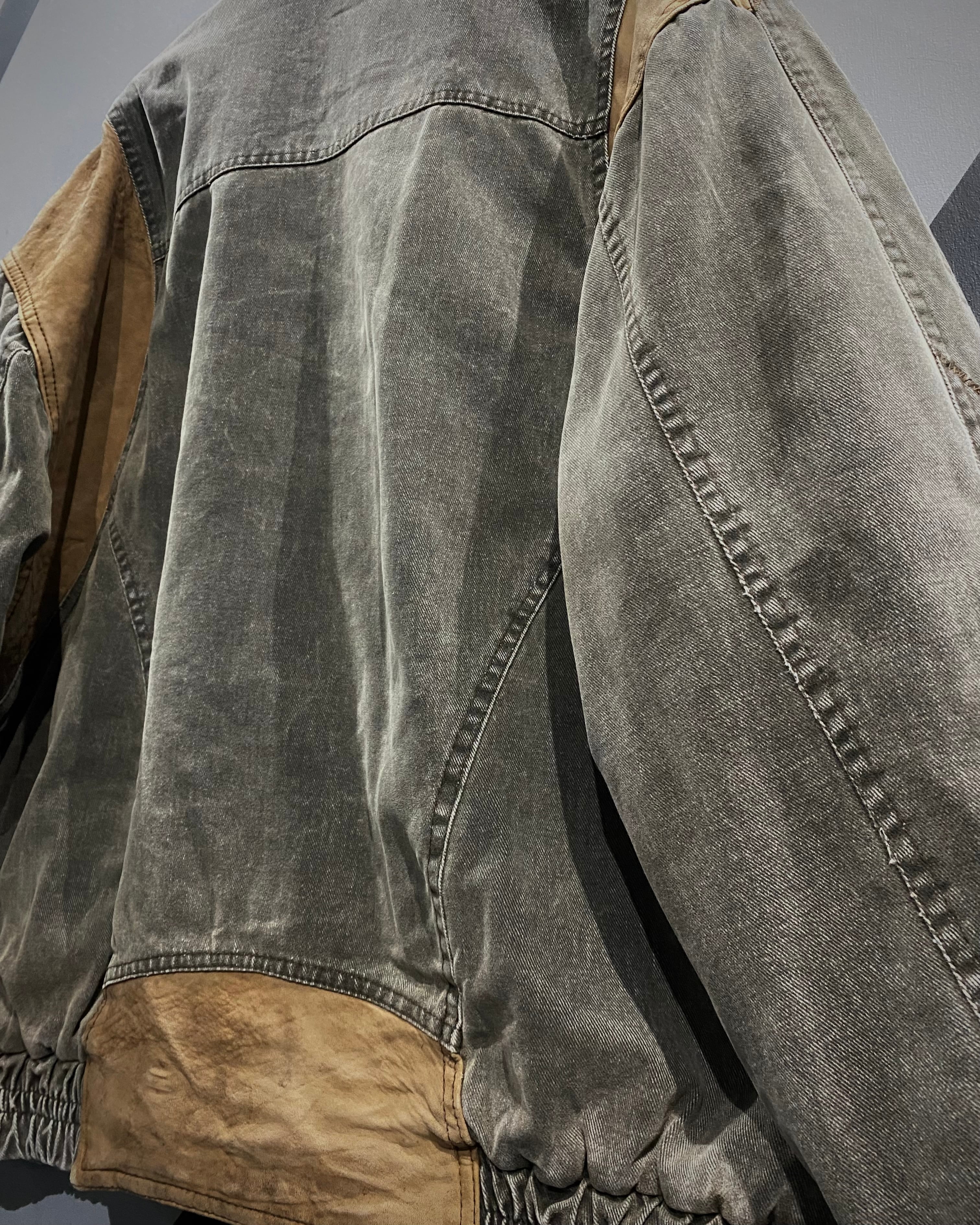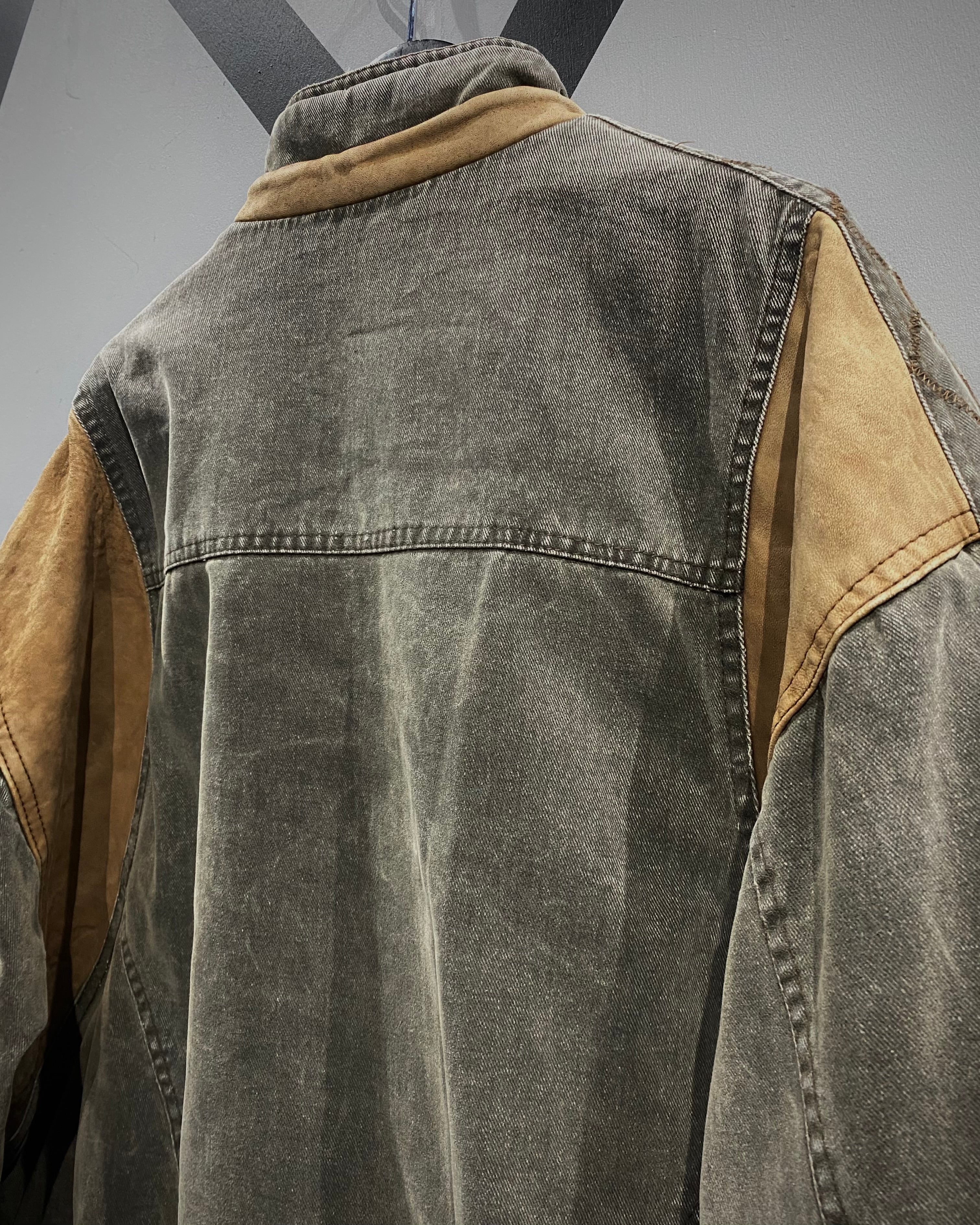 肩、襟、バックパネルに施されたレザーパッチの切り替えが特徴で、無骨さと上品さを併せ持つバランス感が秀逸。