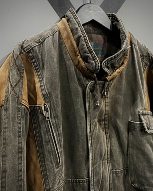 フェード感の良いデニムボディにレザーを切り替えた、異素材のアクセントが抜群なスペイン製のデニムジャケット。