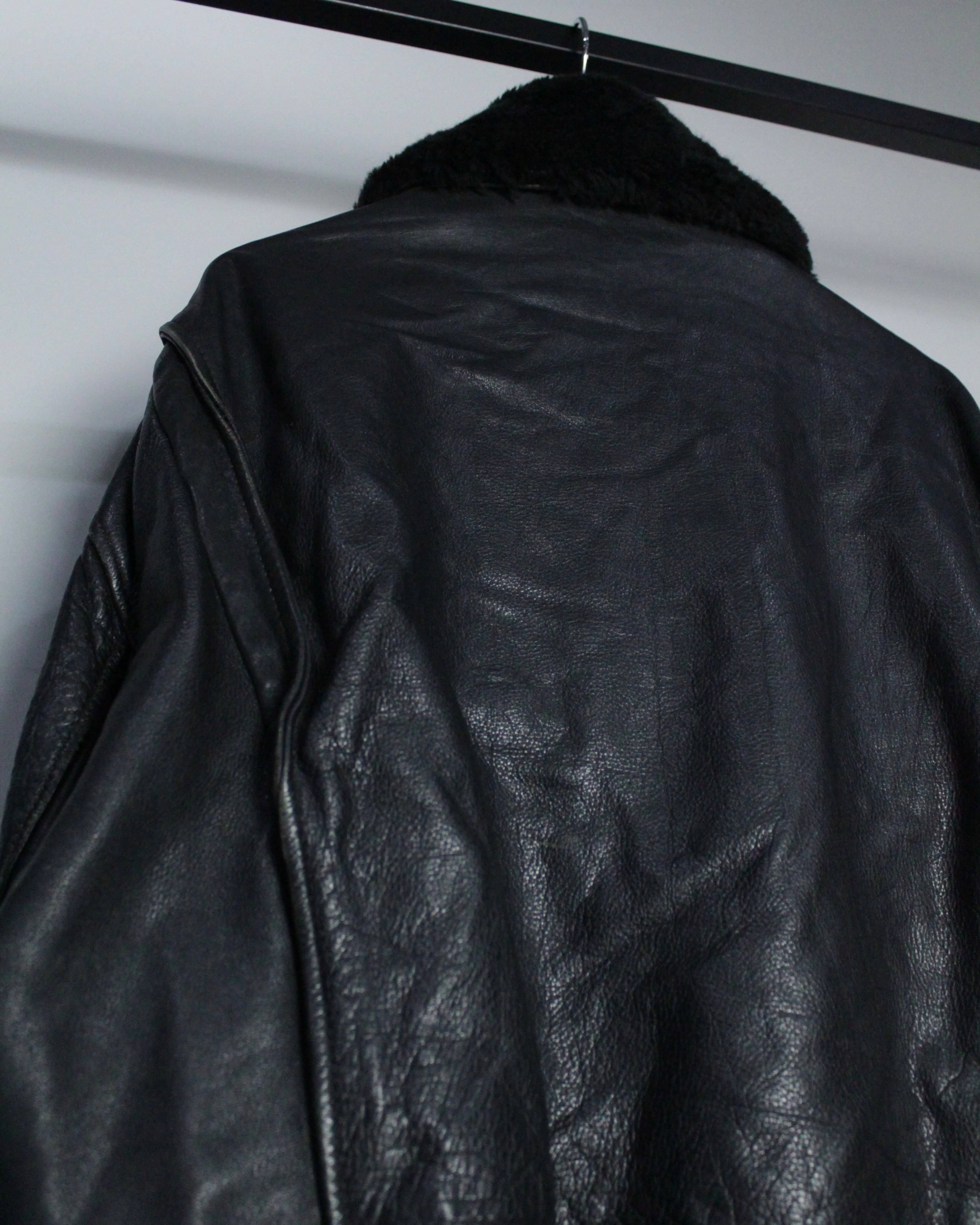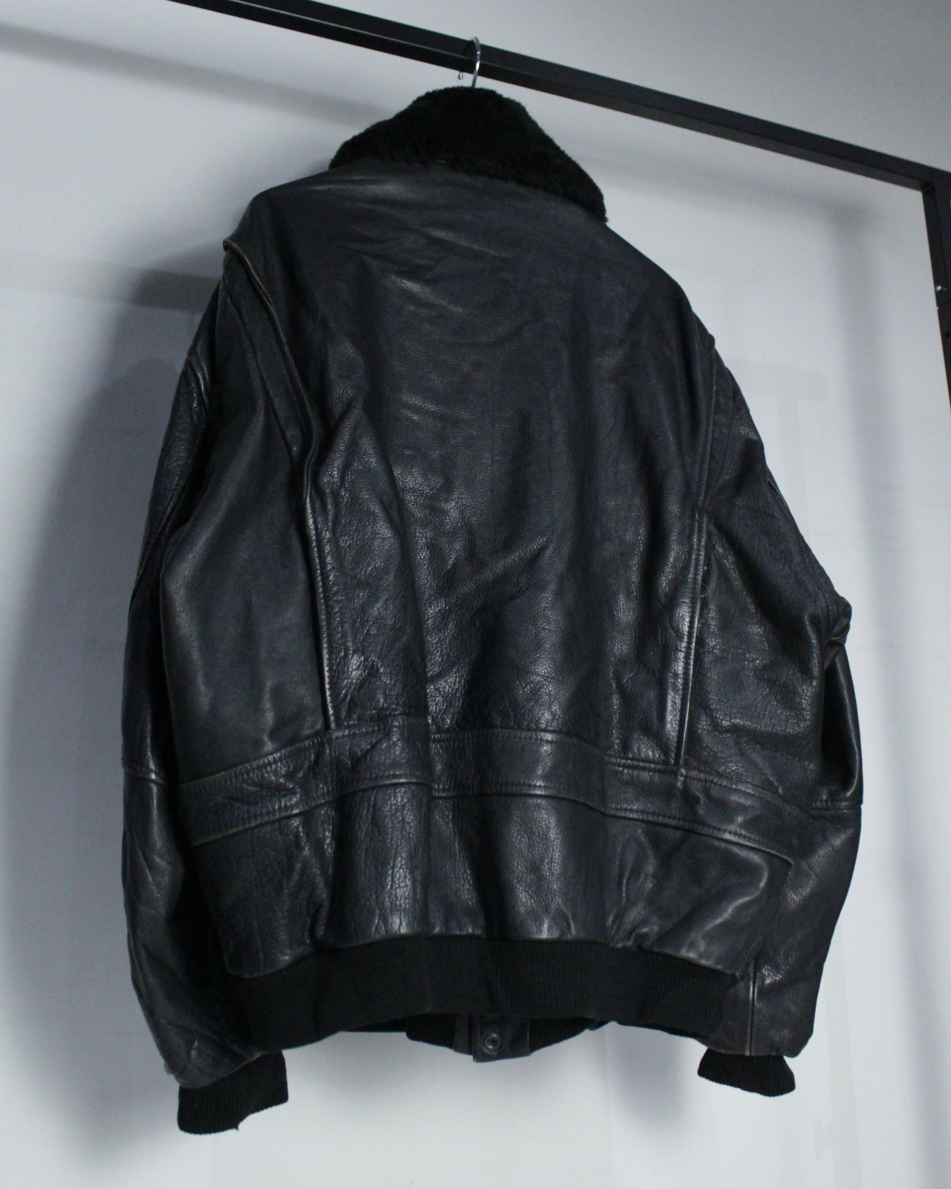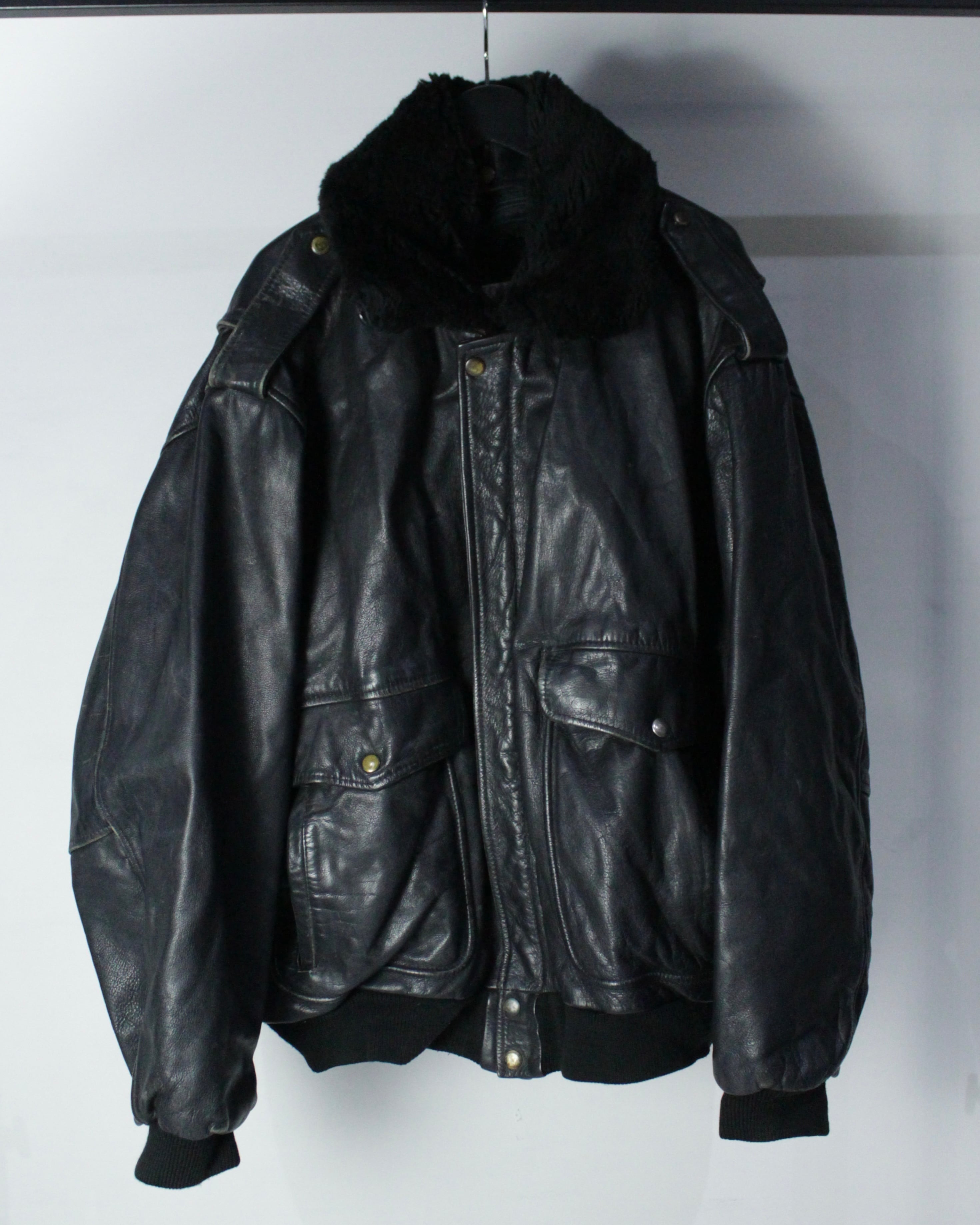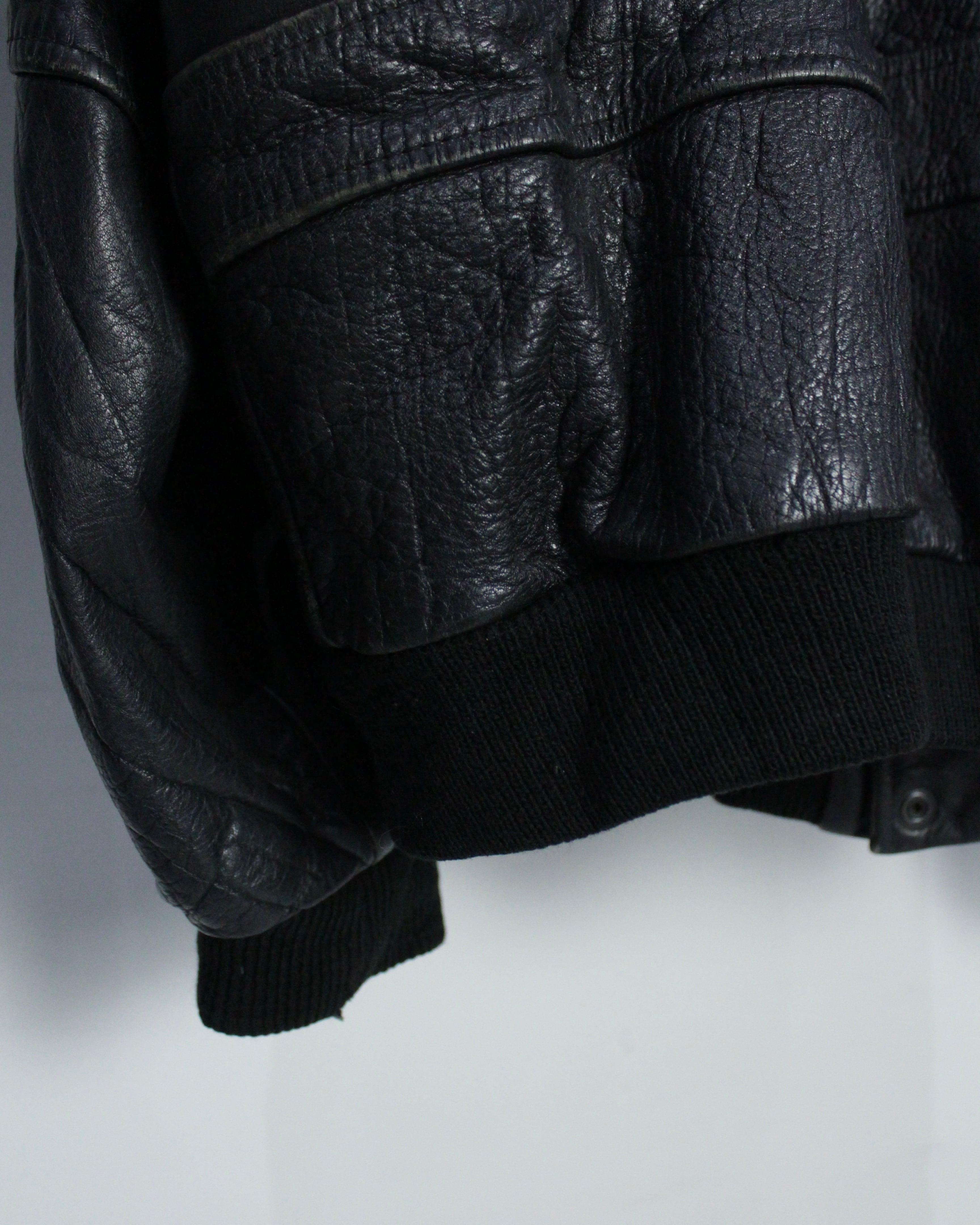 重厚なレザーの質感とミリタリー由来の無骨なシルエットが際立つ、G-1タイプのレザーボンバージャケット。