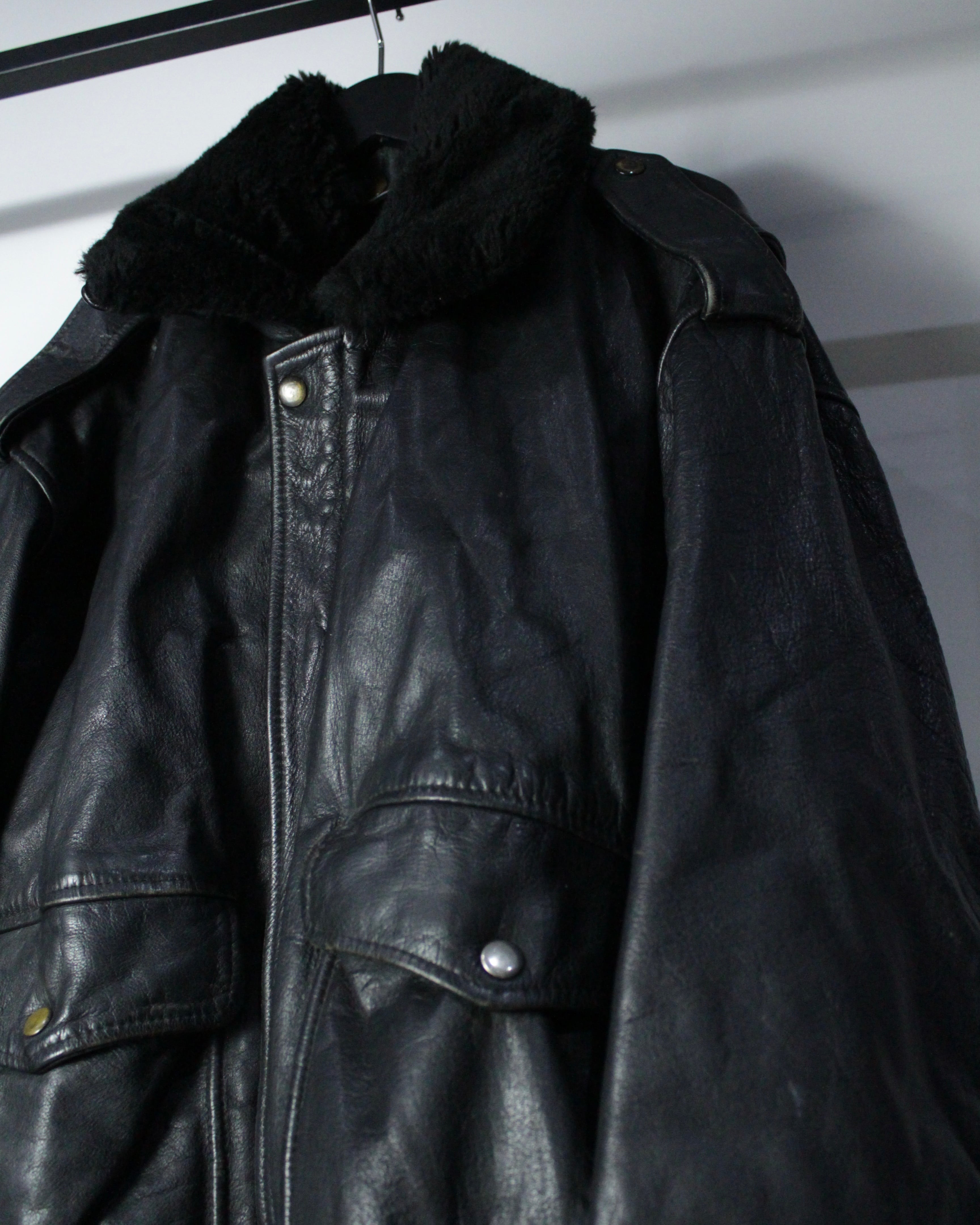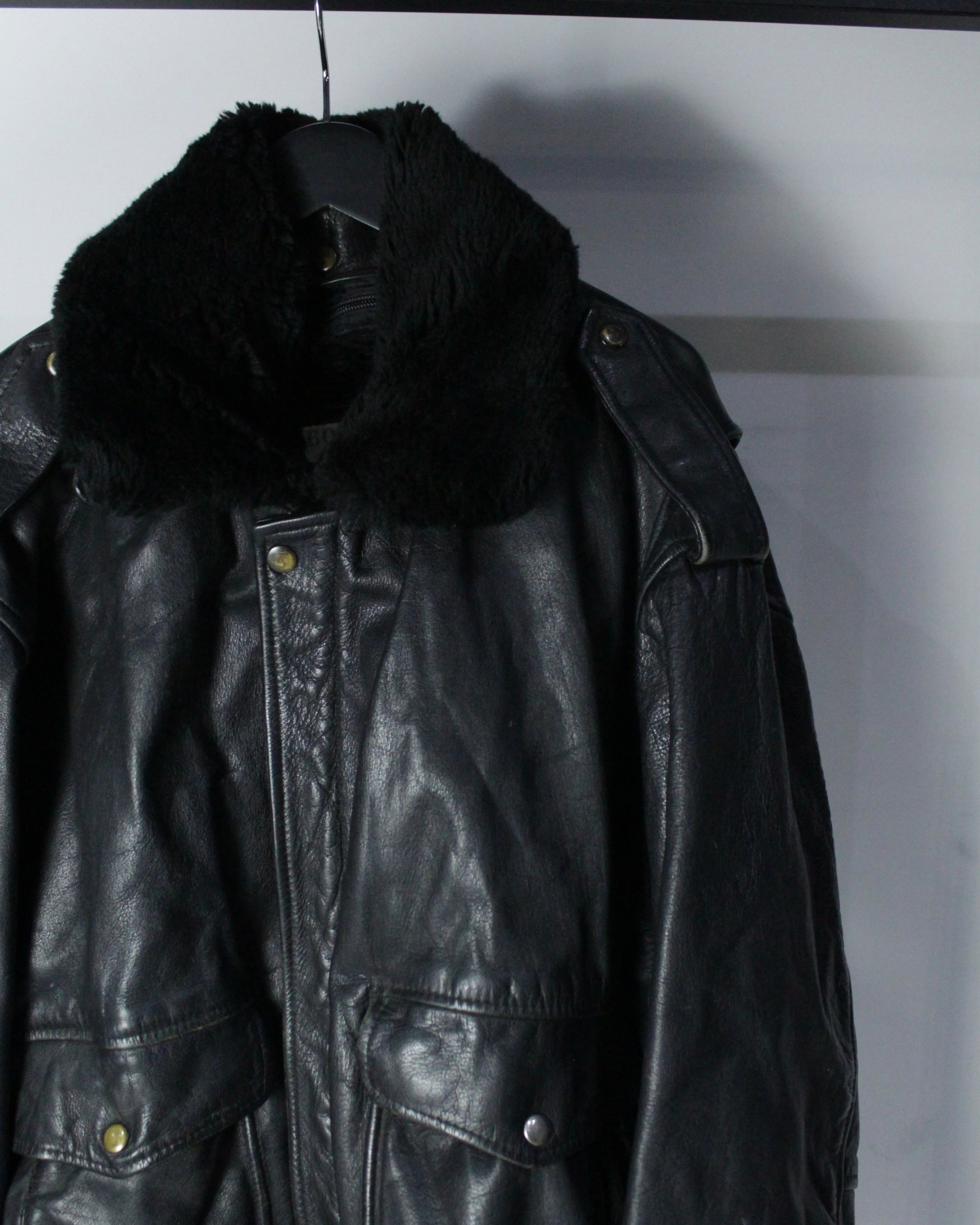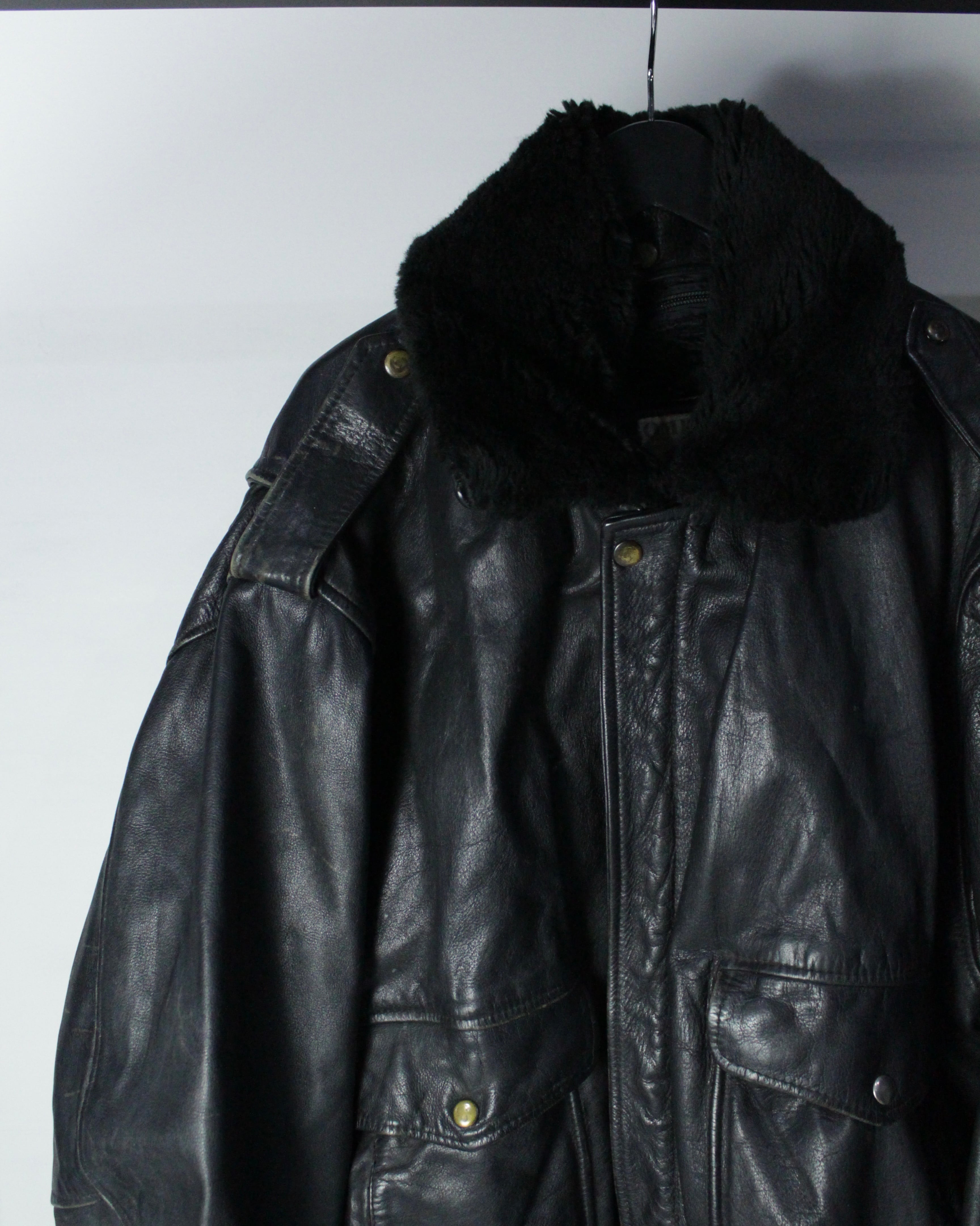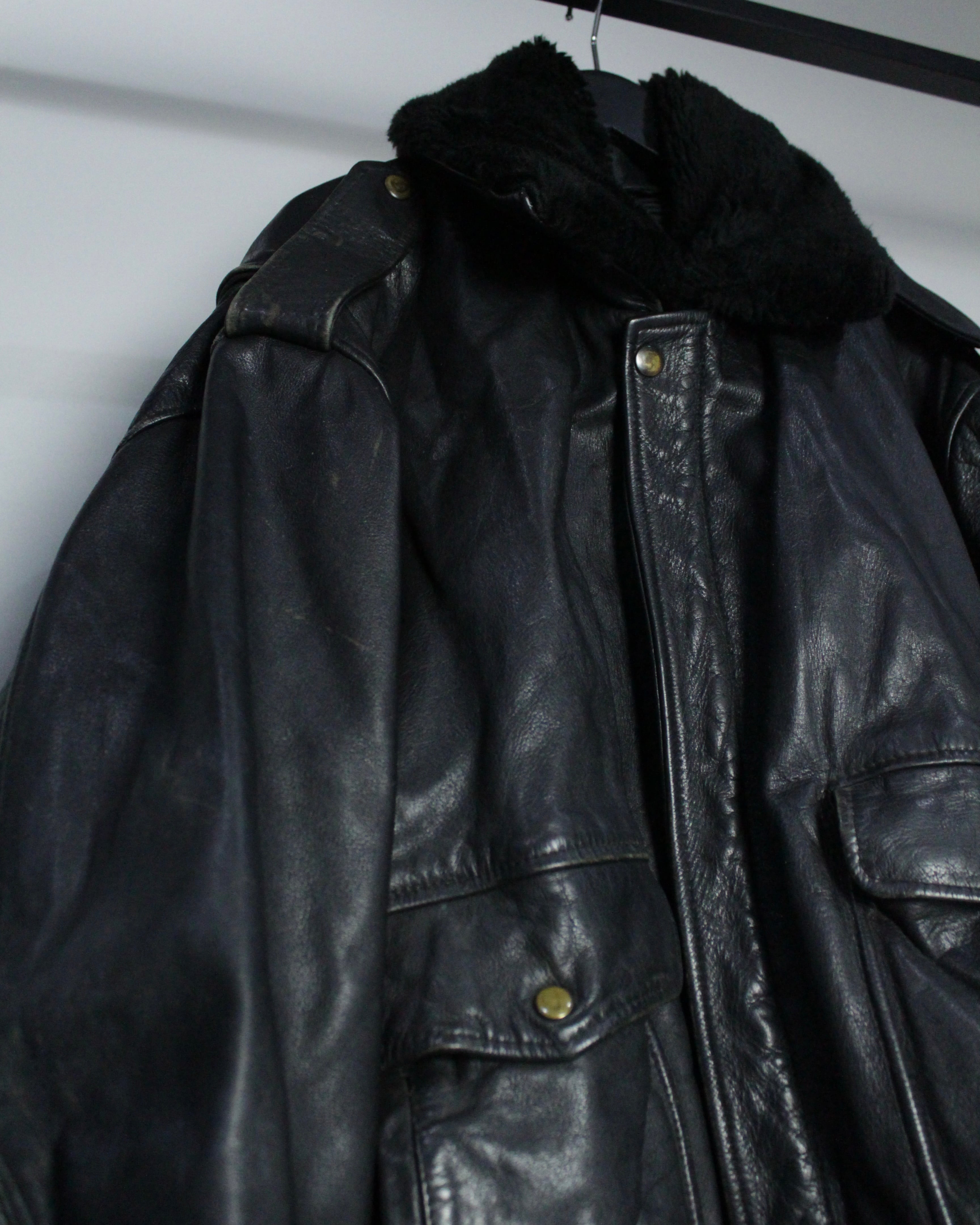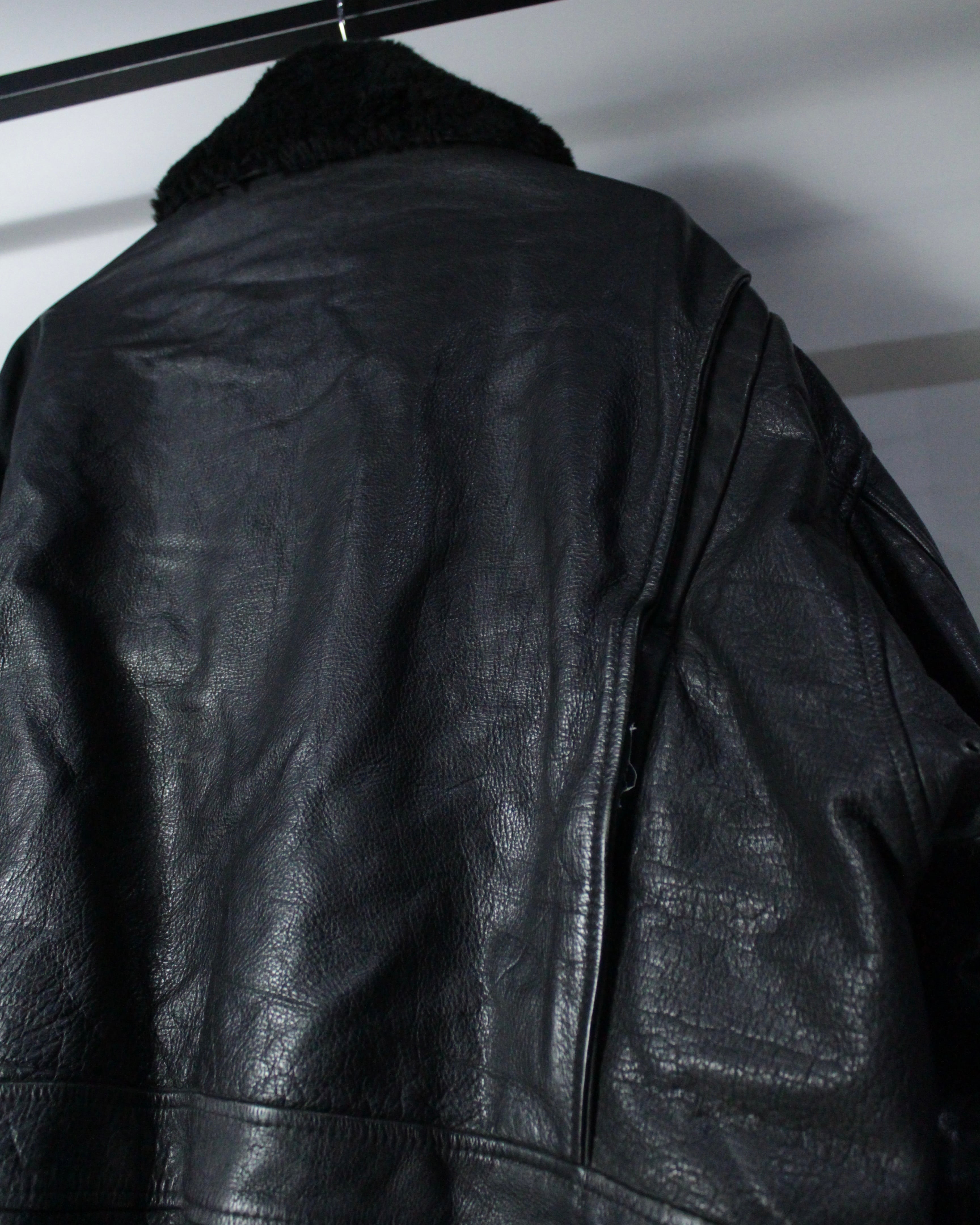 重厚なレザーの質感とミリタリー由来の無骨なシルエットが際立つ、G-1タイプのレザーボンバージャケット。