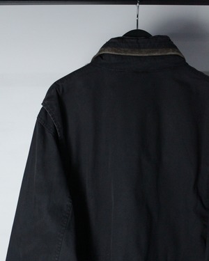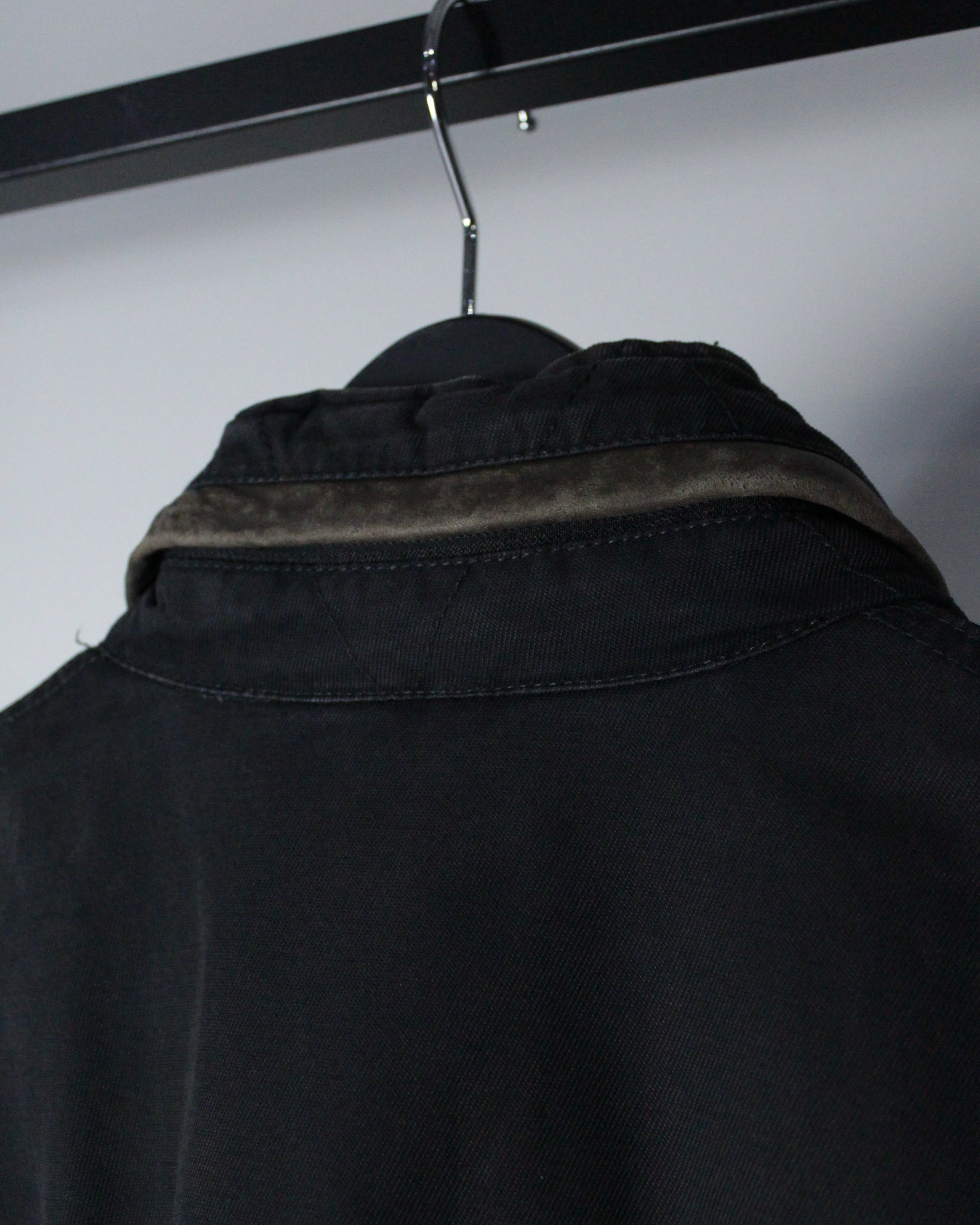 ボディフロントには大ぶりのフラップポケット、ウエストにはドローコード、首元にはチンストラップを施しスタンドカラーに仕様変更可能。肩にはアクションプリーツが施されており、機能的なギミックの数々に心打たれます。