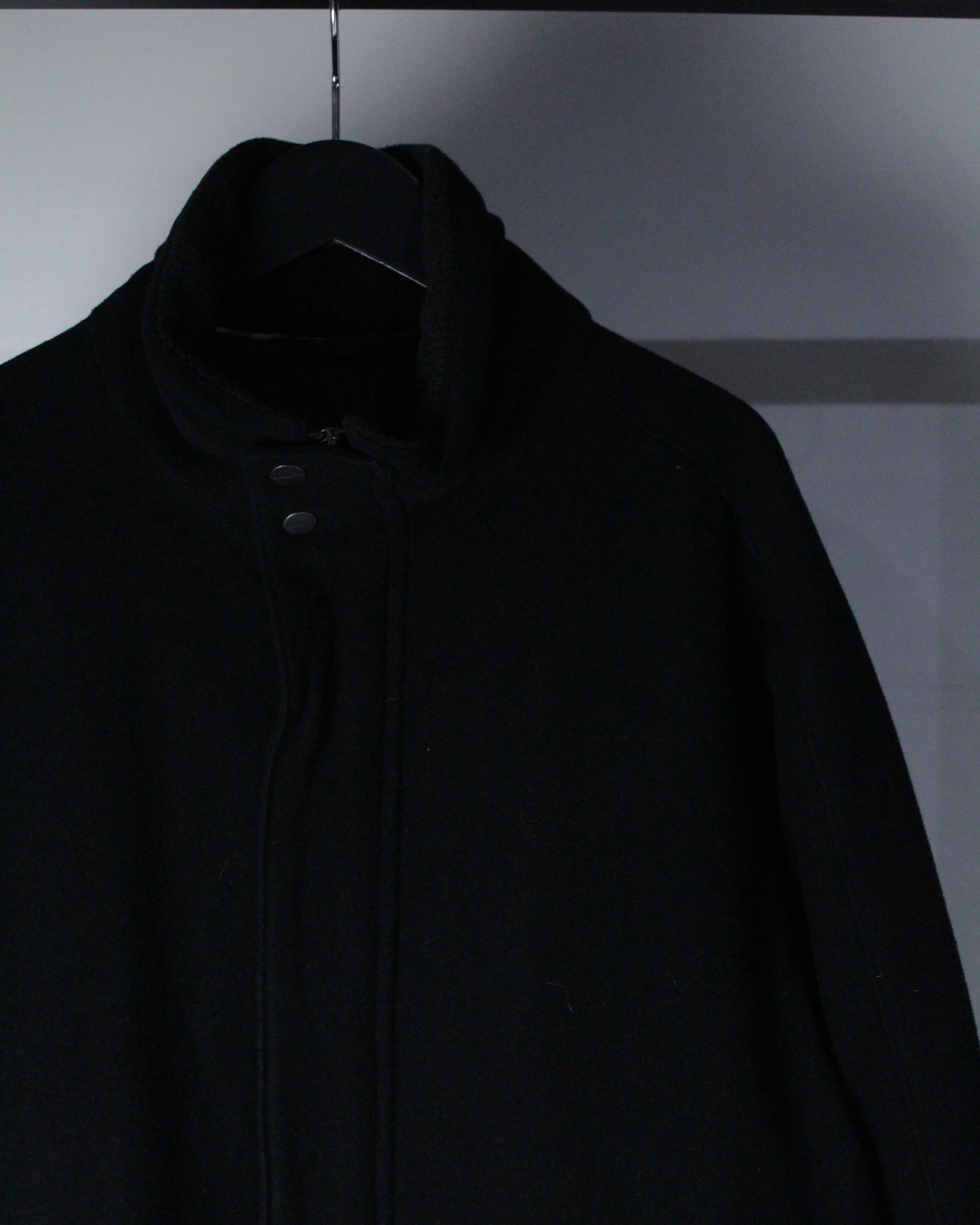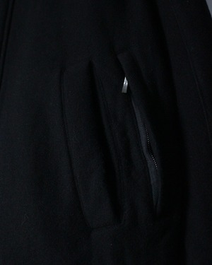 襟元にはリブ素材を切り替えた二重構造のスタンドカラーを採用。首元をしっかり包み込みながらも、開閉によって表情を変えることが可能。ジップに比翼スナップのダブルクロージャーにより、防風性も高く、洗練された佇まいの中に機能性を併せ持った仕上がりに。