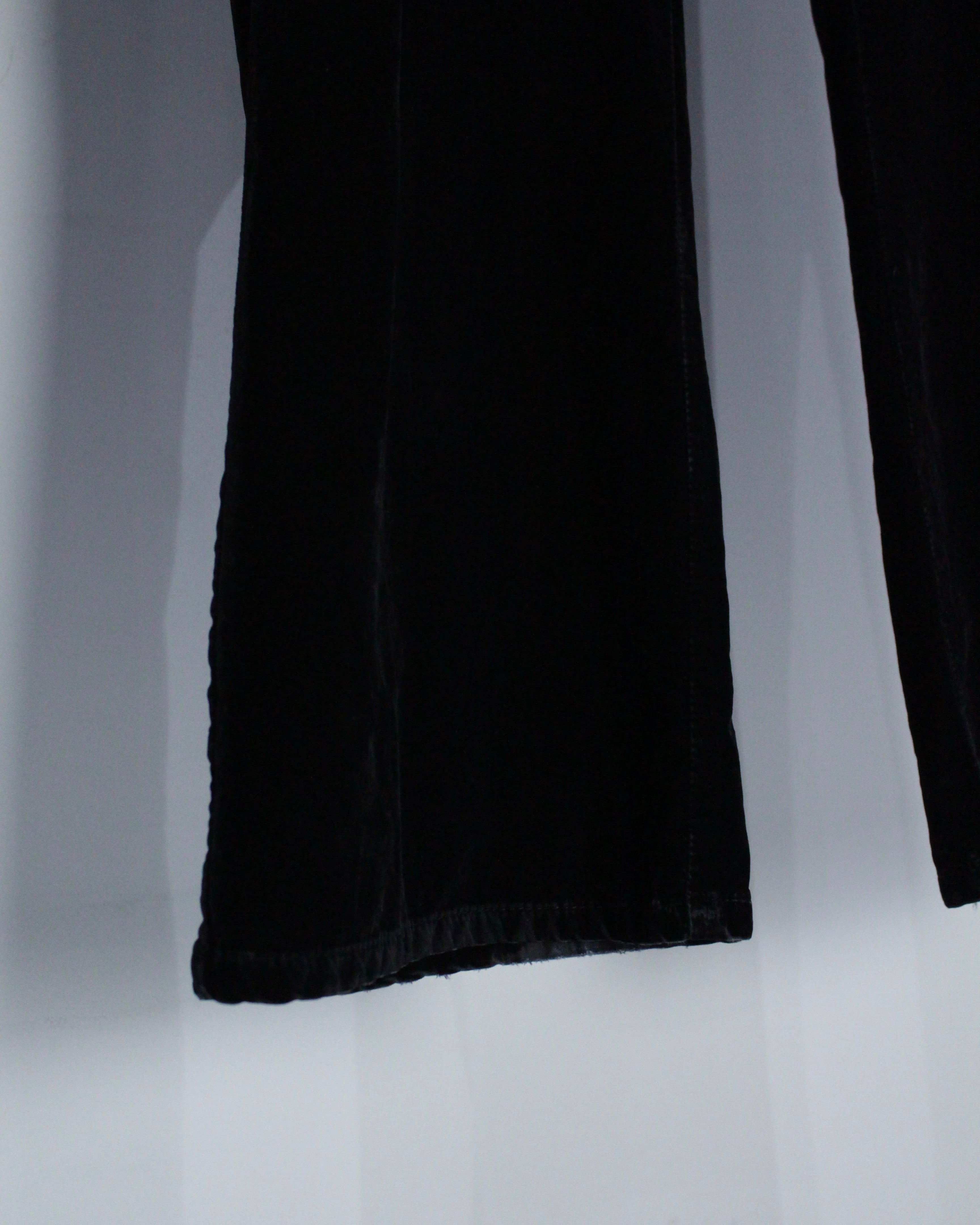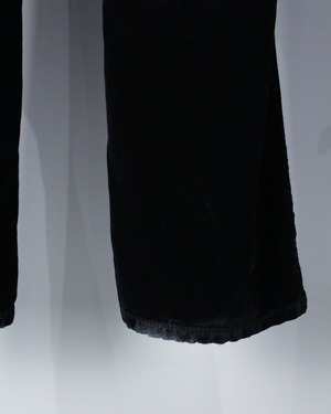 シルエットは程よいゆとりを持たせたストレートライン。脚のラインを拾いすぎず、ベロア特有のドレープが際立つ設計でスタイル全体にエレガンスを与えつつ、存在感を放ちます。