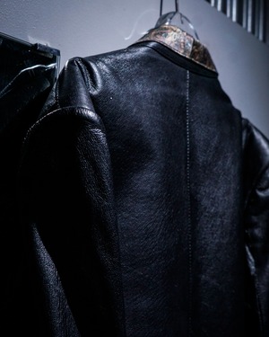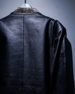 レザーの重厚感とサテンの艶が調和、かつ服好きの心がくすぐられるギミックを併せ持ったスペシャルなテーラードジャケットです。