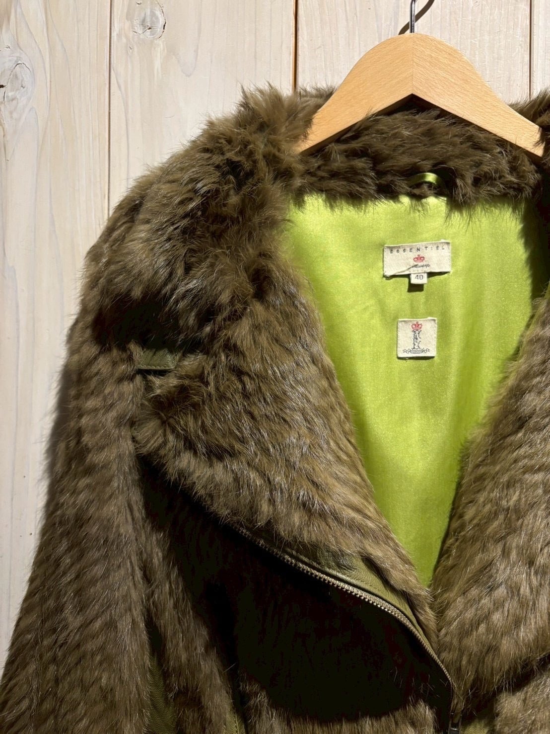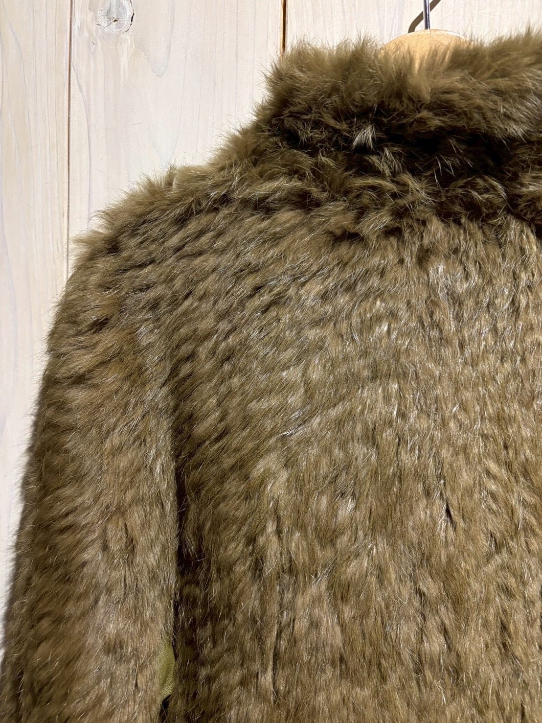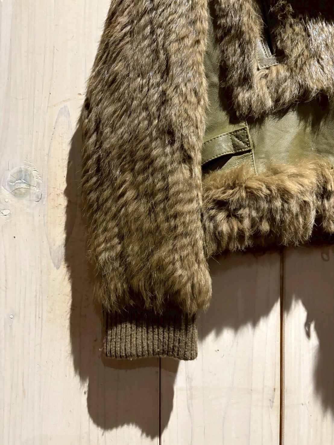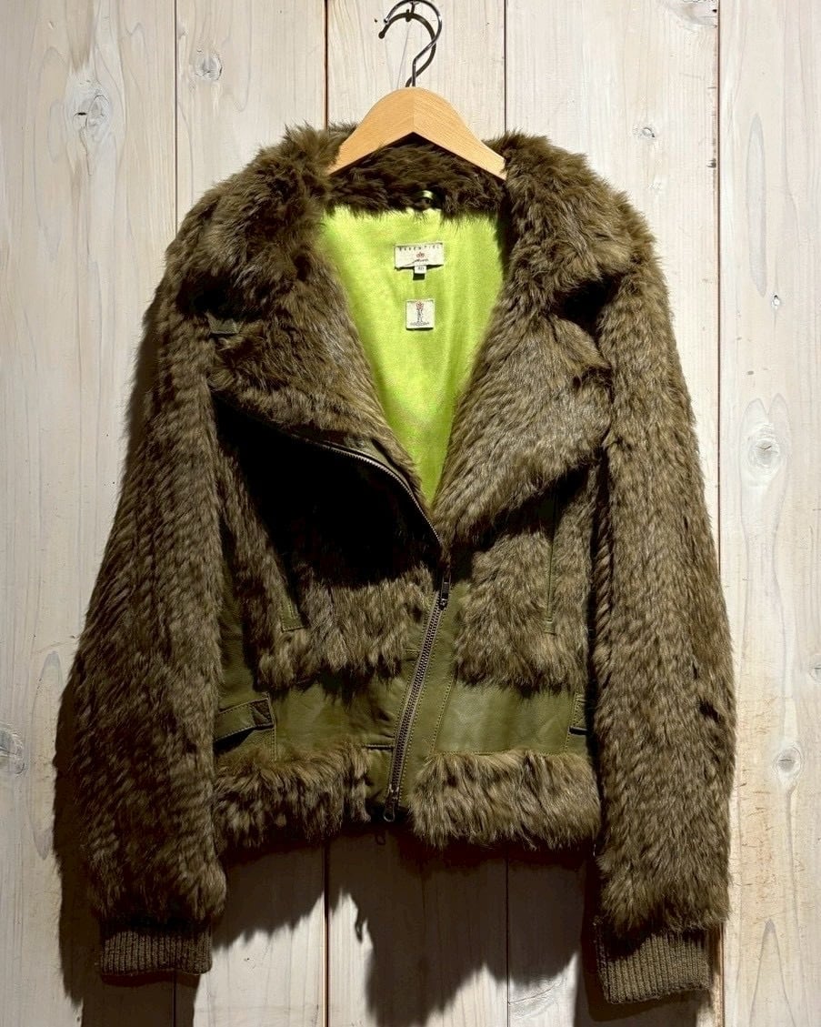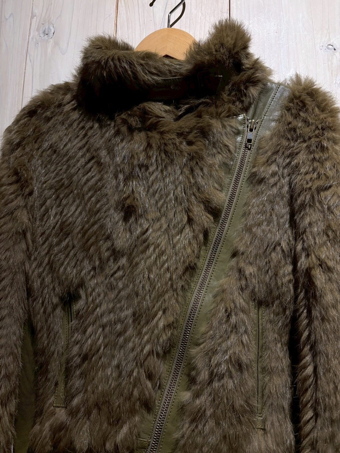 ボディ全面には贅沢にリアルラビットファーを使用。滑らかで光沢のある毛並みが生み出す陰影と、深みあるオリーブトーンが絶妙に調和し、一目で上質だと分かる存在感を放ちます。