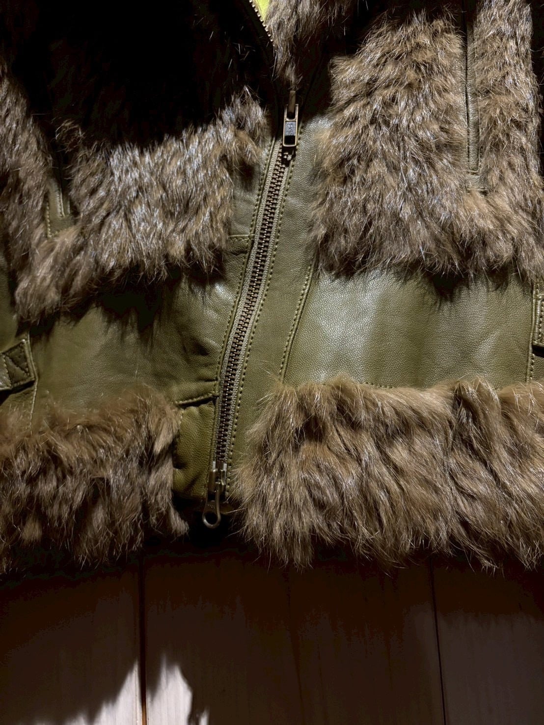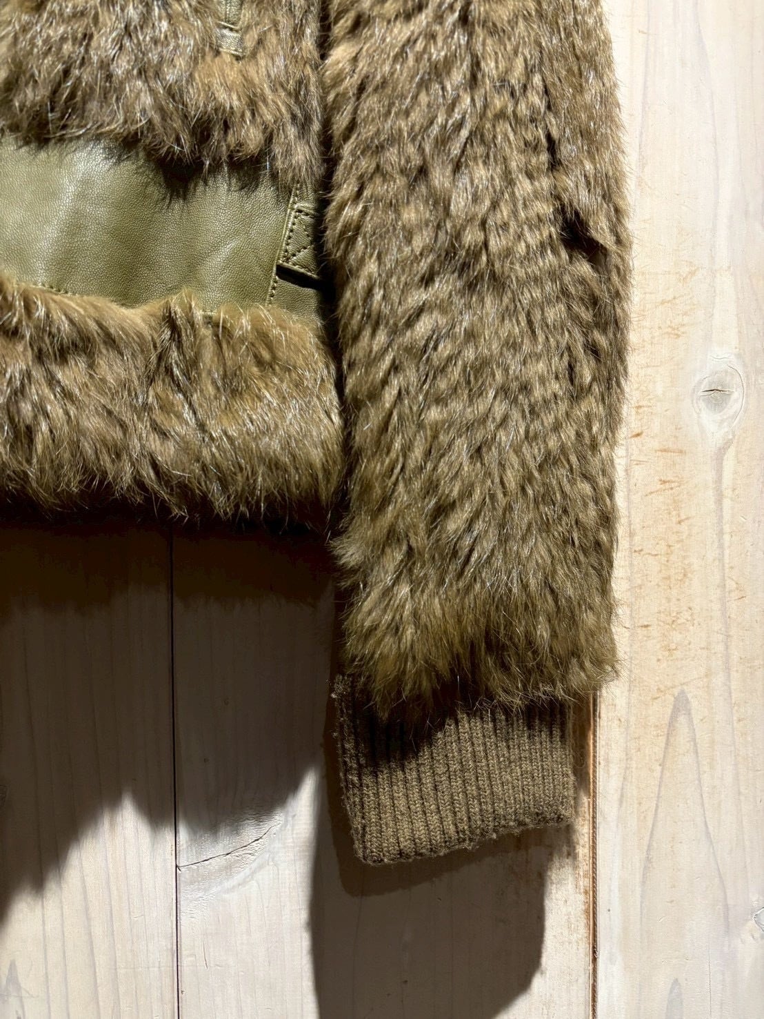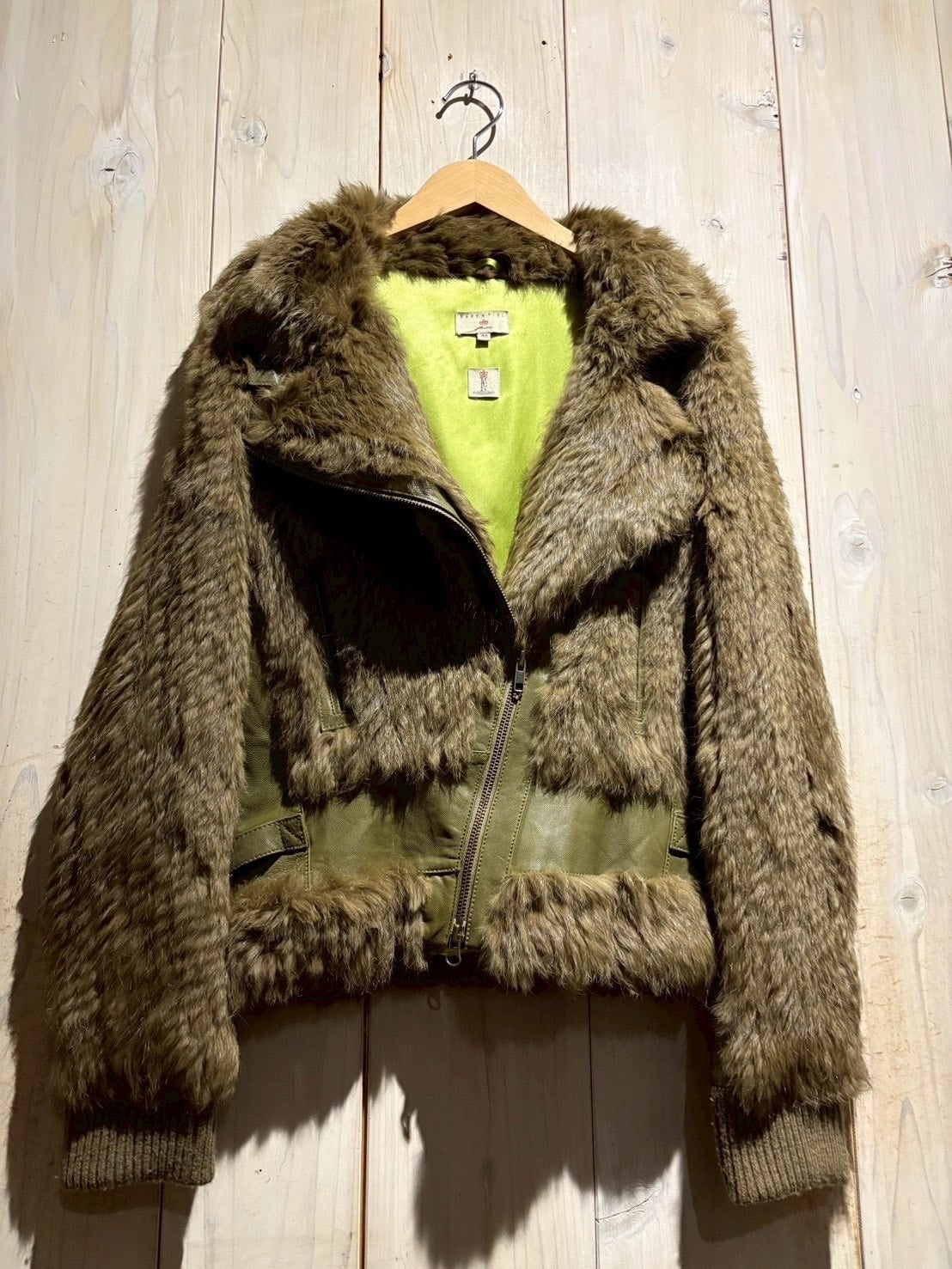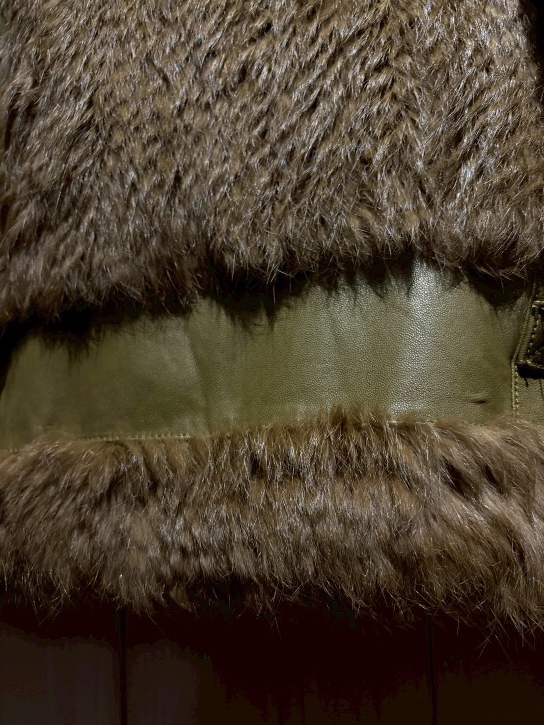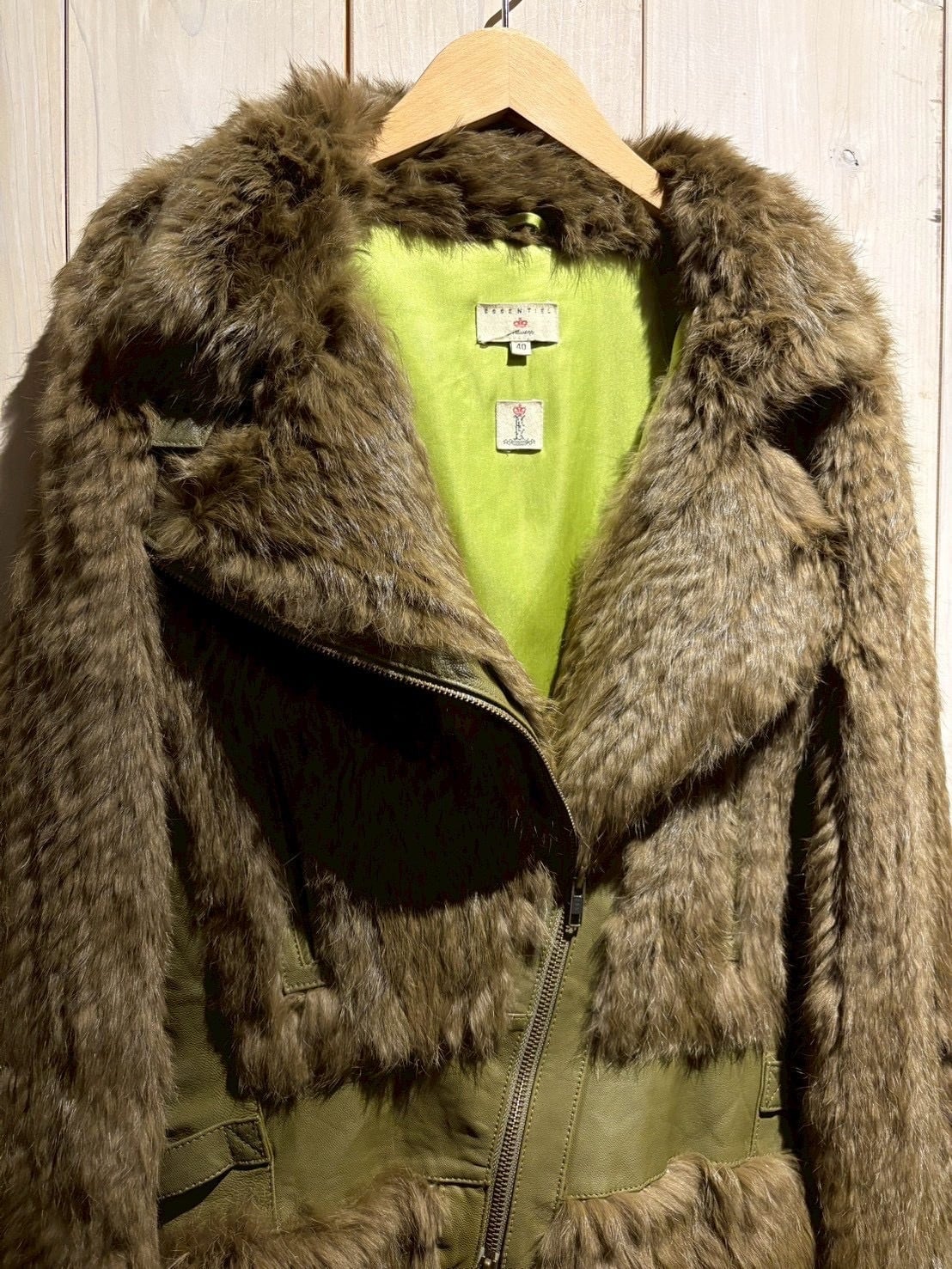ボディ全面には贅沢にリアルラビットファーを使用。滑らかで光沢のある毛並みが生み出す陰影と、深みあるオリーブトーンが絶妙に調和し、一目で上質だと分かる存在感を放ちます。