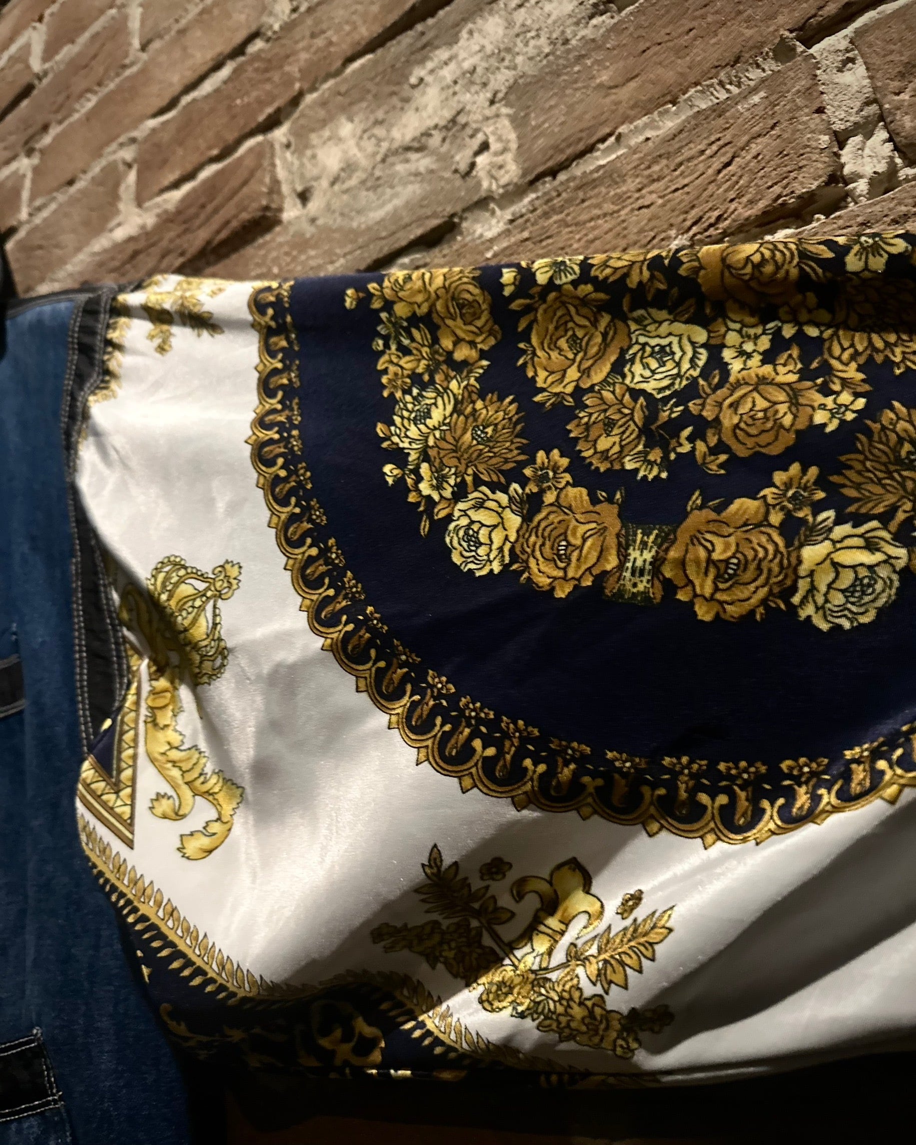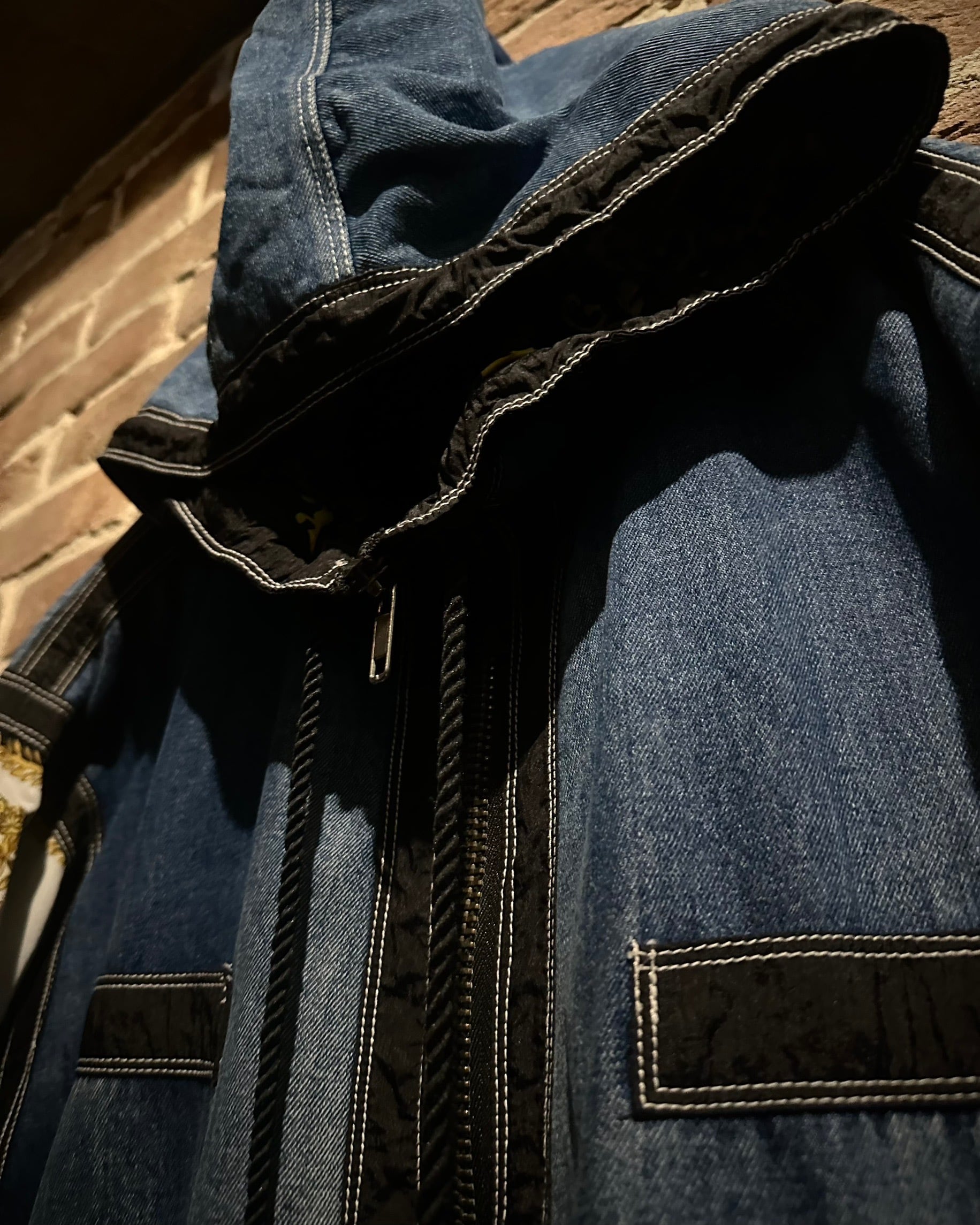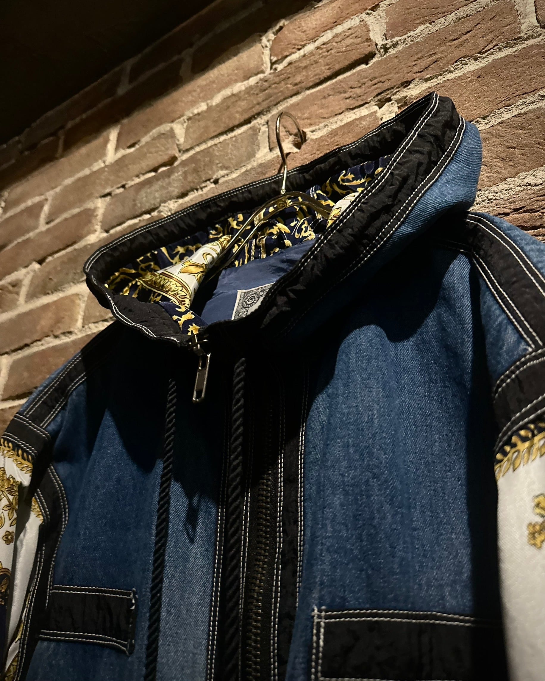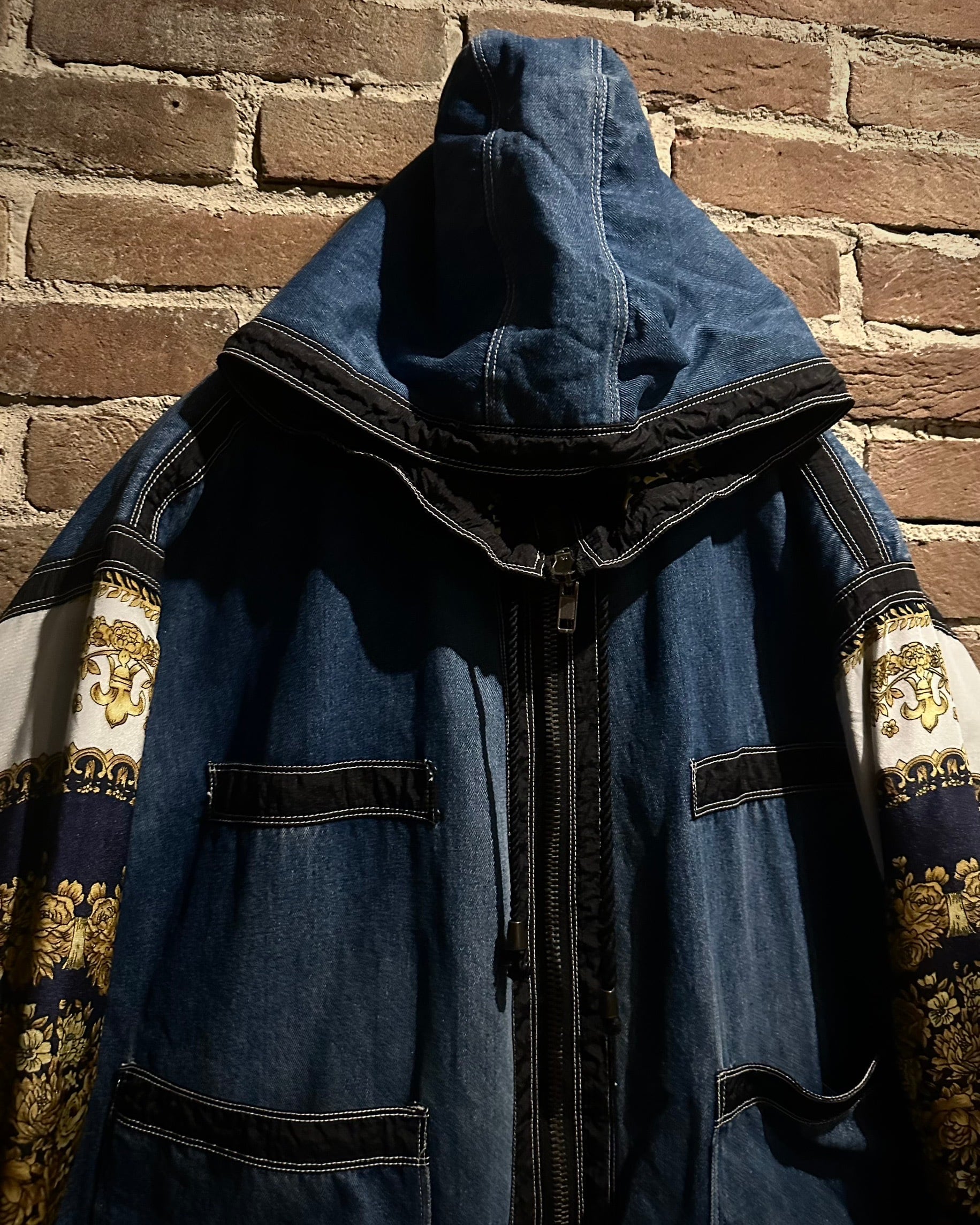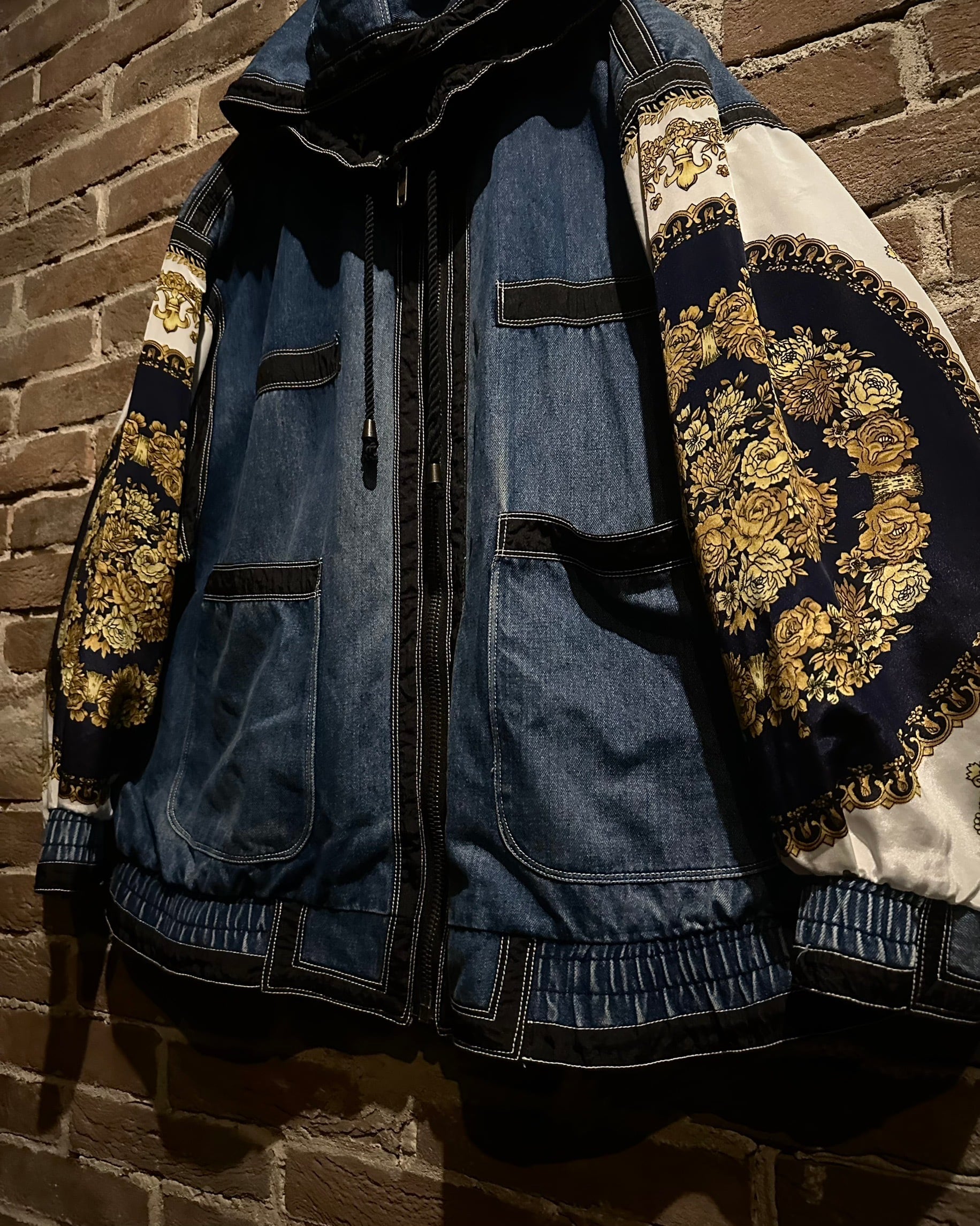 ボディにはタフなインディゴデニム、アームにはスカーフのようなバロック調デザインを採用。カジュアルさとラグジュアリーなエッセンスが絶妙に調和しています。