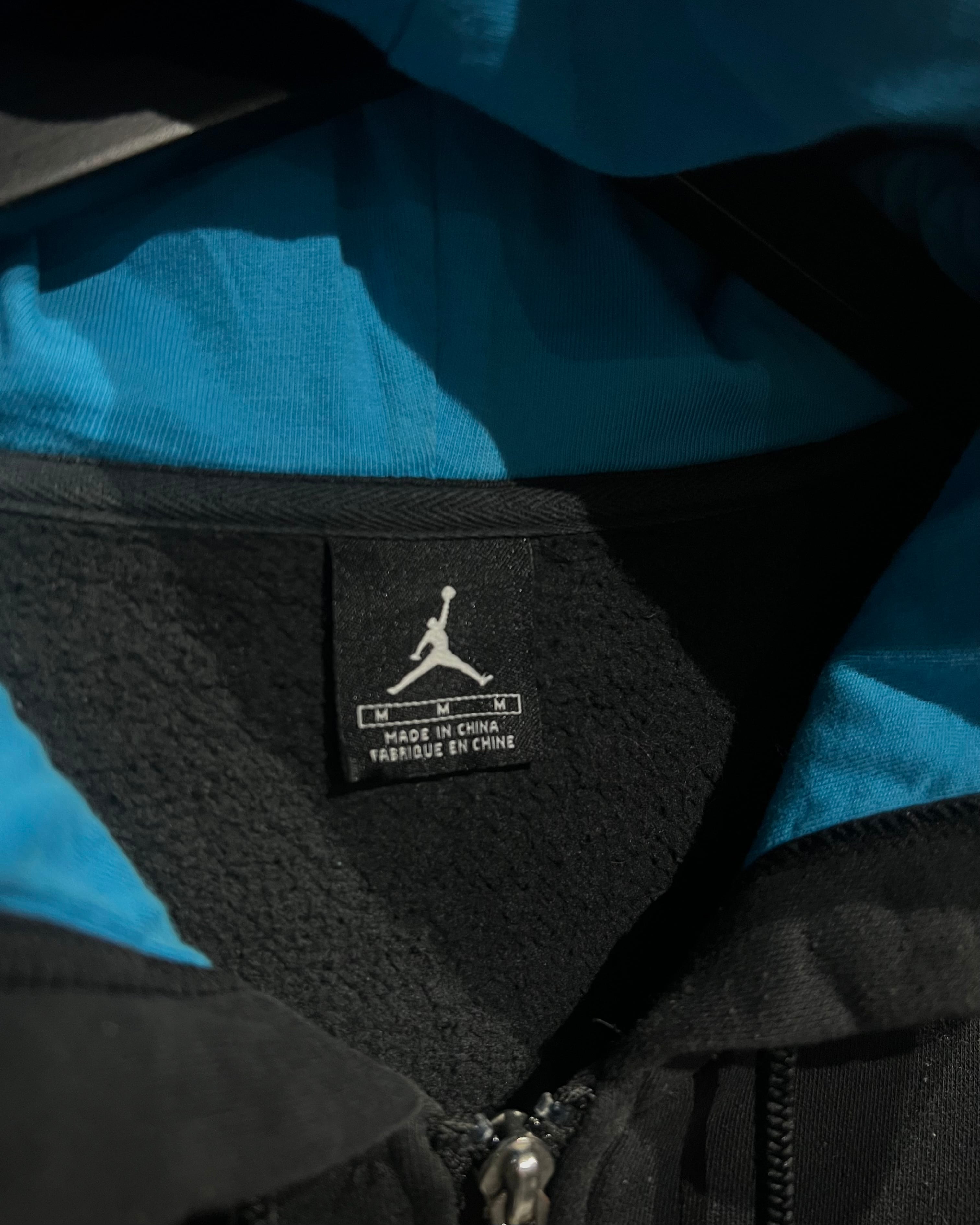 マイケル・ジョーダンが3度の優勝とMVPタイトルを手に入れた1993年に発売されたエア ジョーダン 8の “Aqua” をモチーフとしたジップアップフーディ。