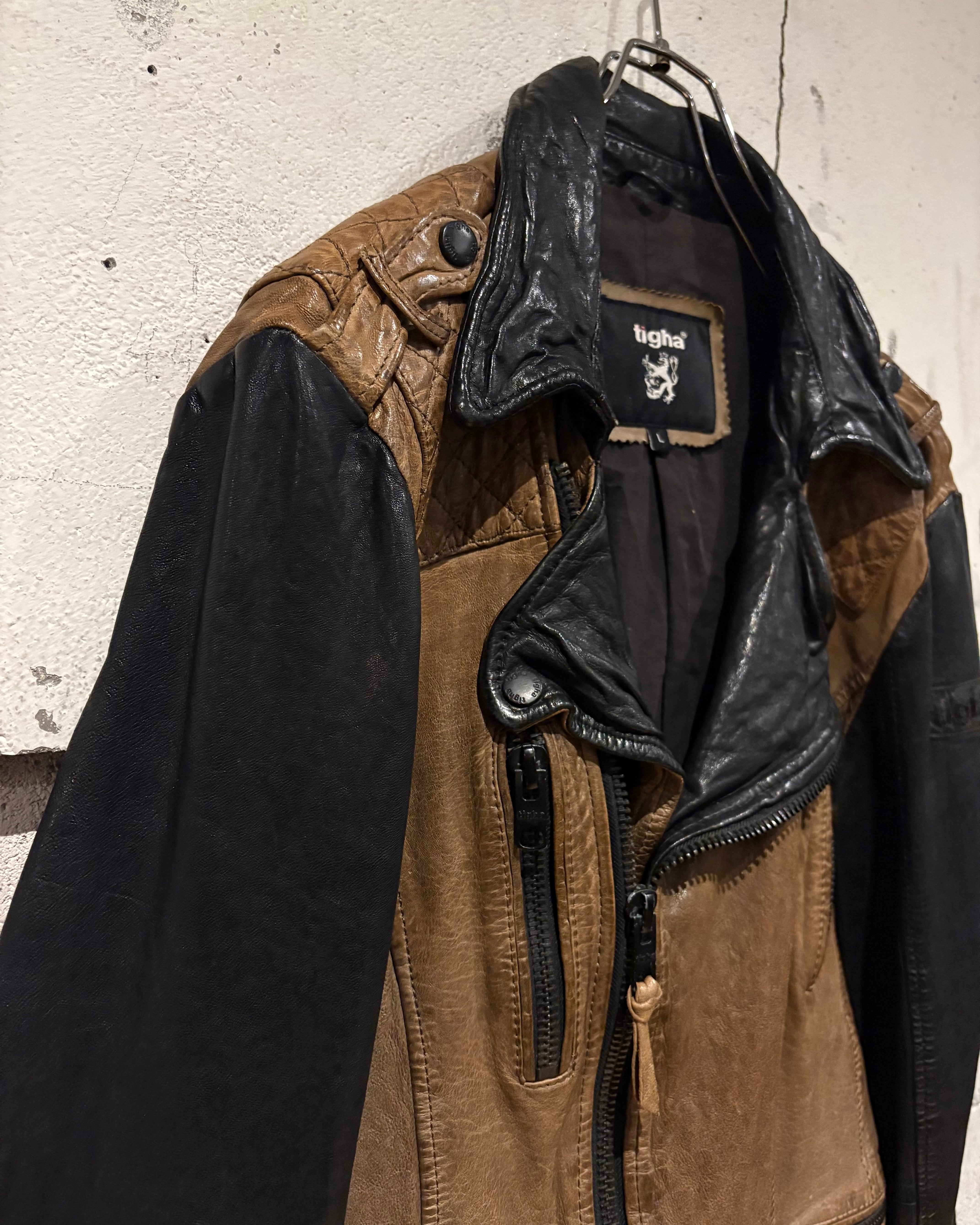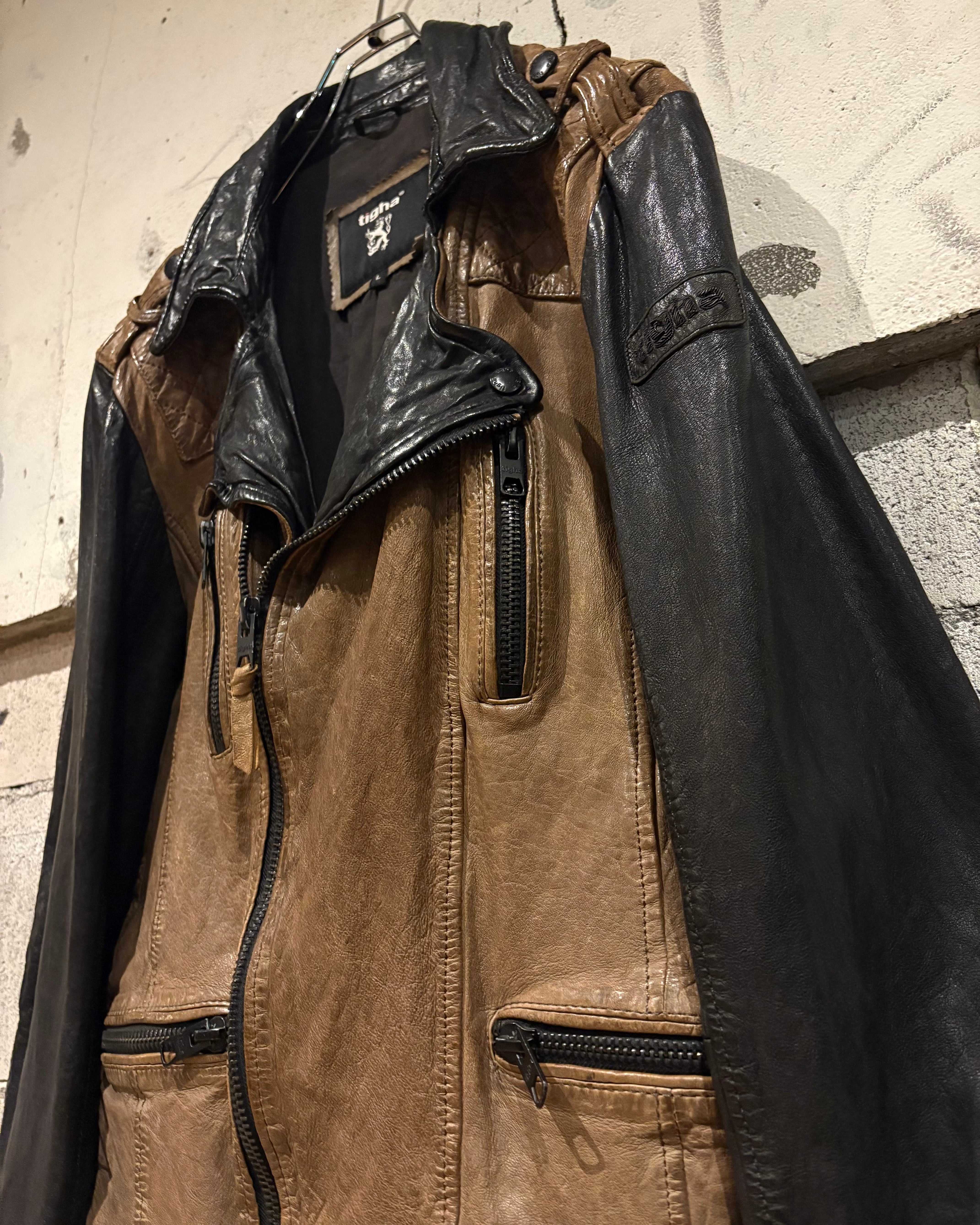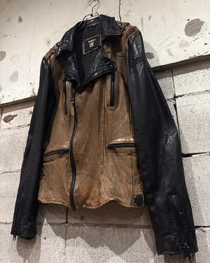 カラーの切り替えが無骨ながら非常にファッショナブルな、スペシャルなライダースジャケットです。