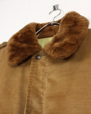 襟元にはボリュームあるフェイクファーカラーを備え、防寒性とクラシカルな佇まいを両立。