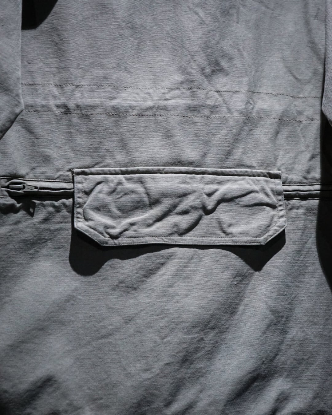 サンドベージュの色味にフェードがかかったような落ち着いたトーンが印象的で、素材にはややハリのあるコットンツイルを採用。無骨ながらも品のある風合いを演出します。