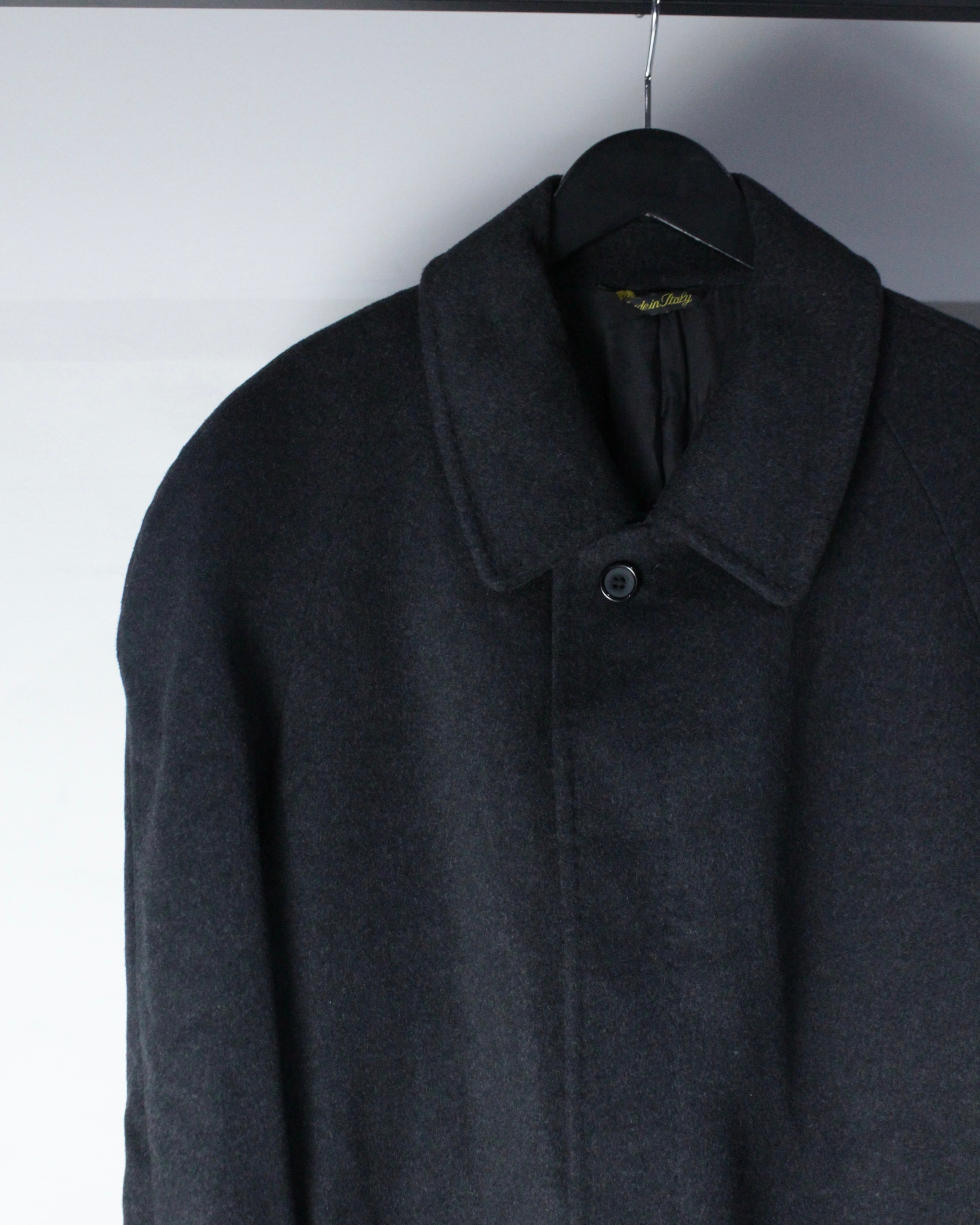 シンプルながら上質なイタリーメイドのカシミヤ混ステンカラーコート。