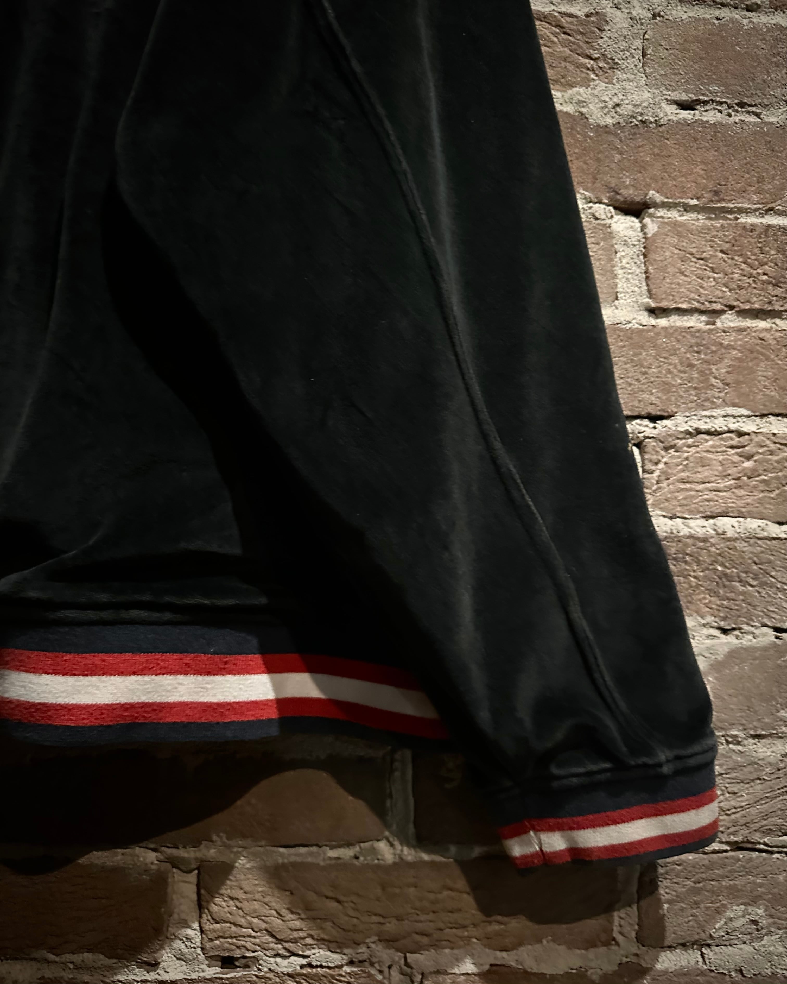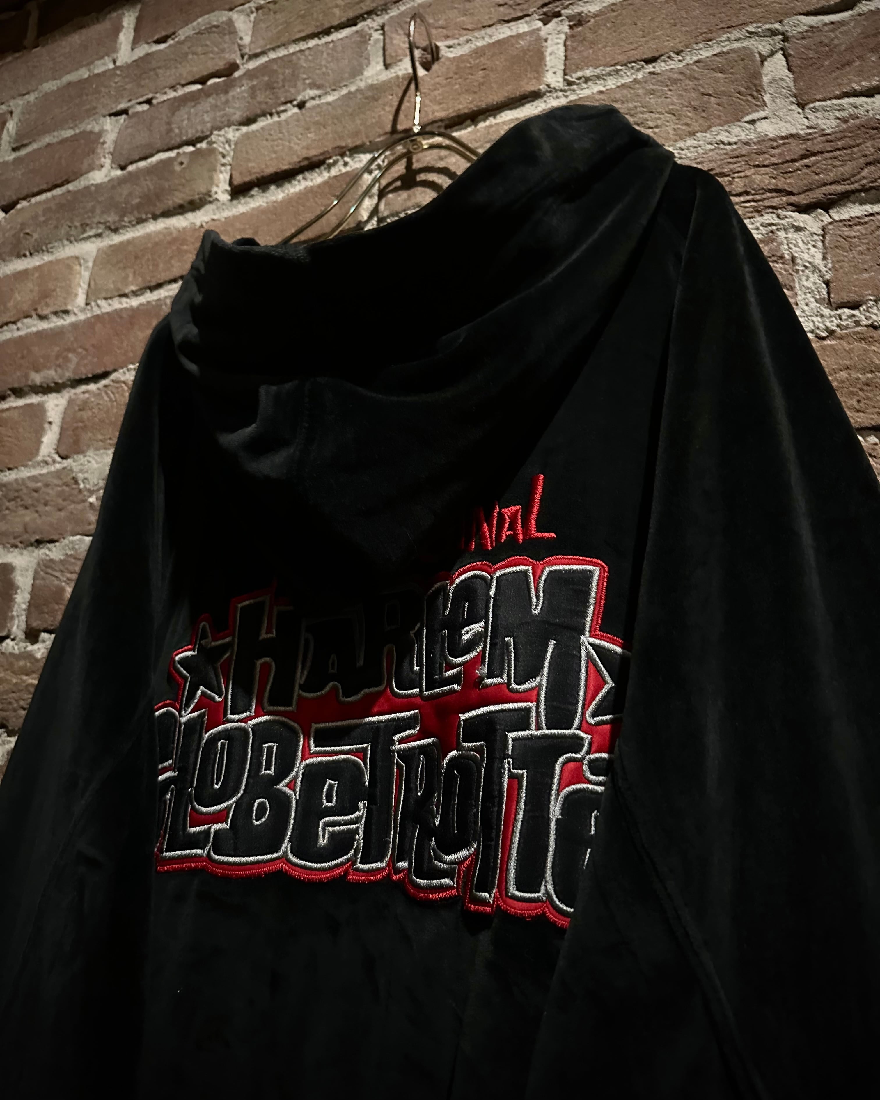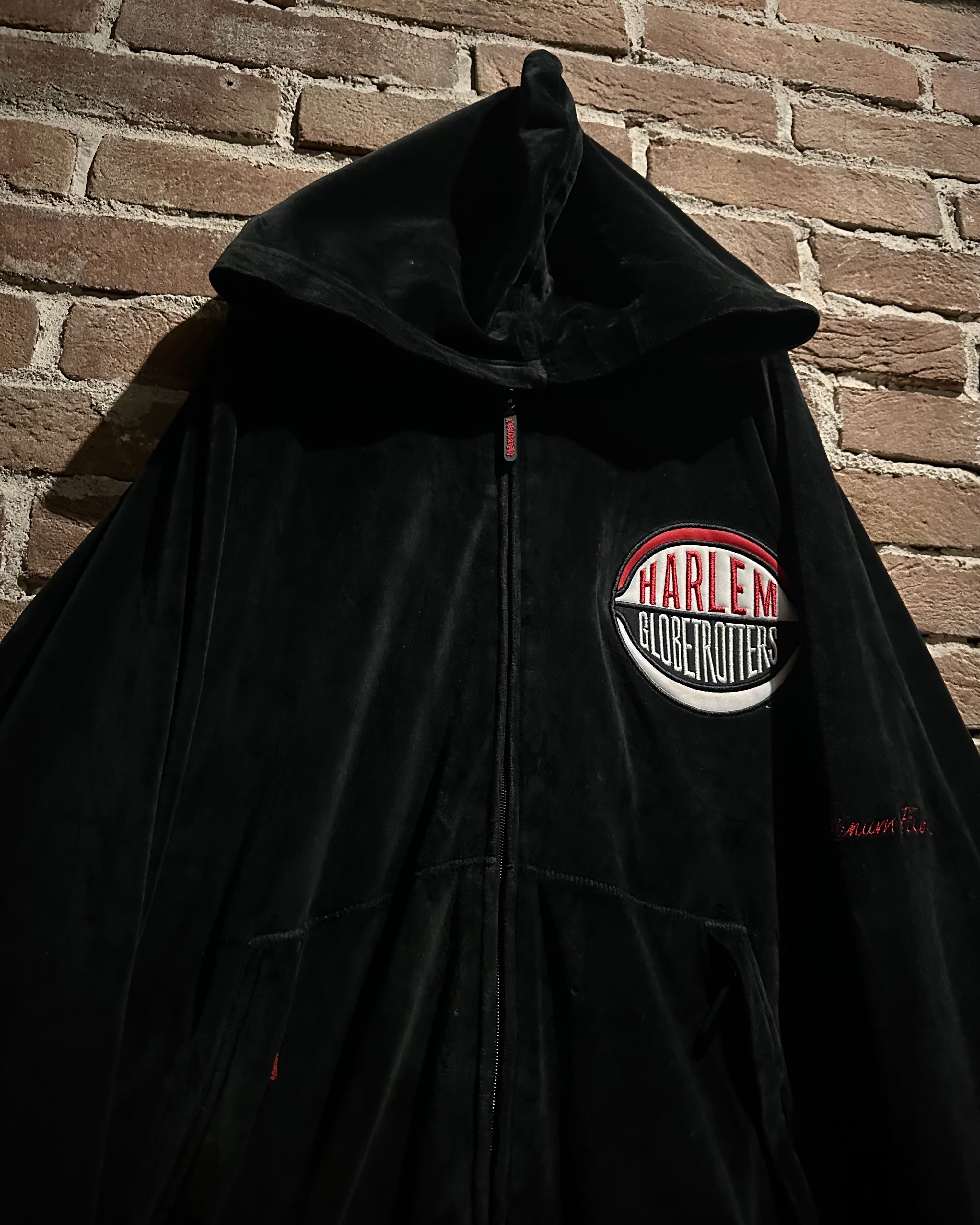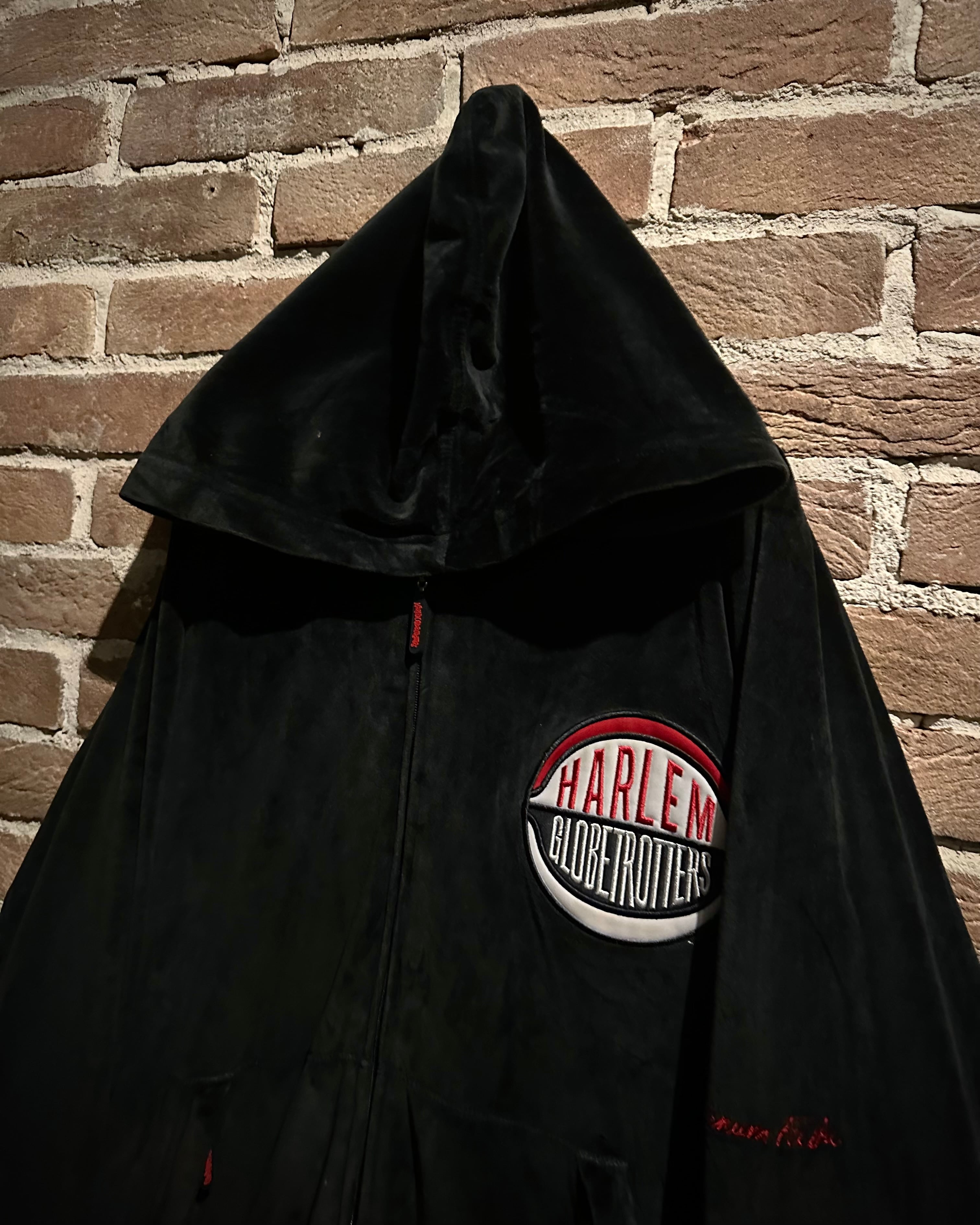 フロントには“HARLEM GLOBETROTTERS”の刺繍ロゴ、背面にはインパクト抜群のロゴグラフィックを大胆に配置。袖には“Platinum Fubu”の刺繍が入り、ブランドの威信をしっかりと主張します。