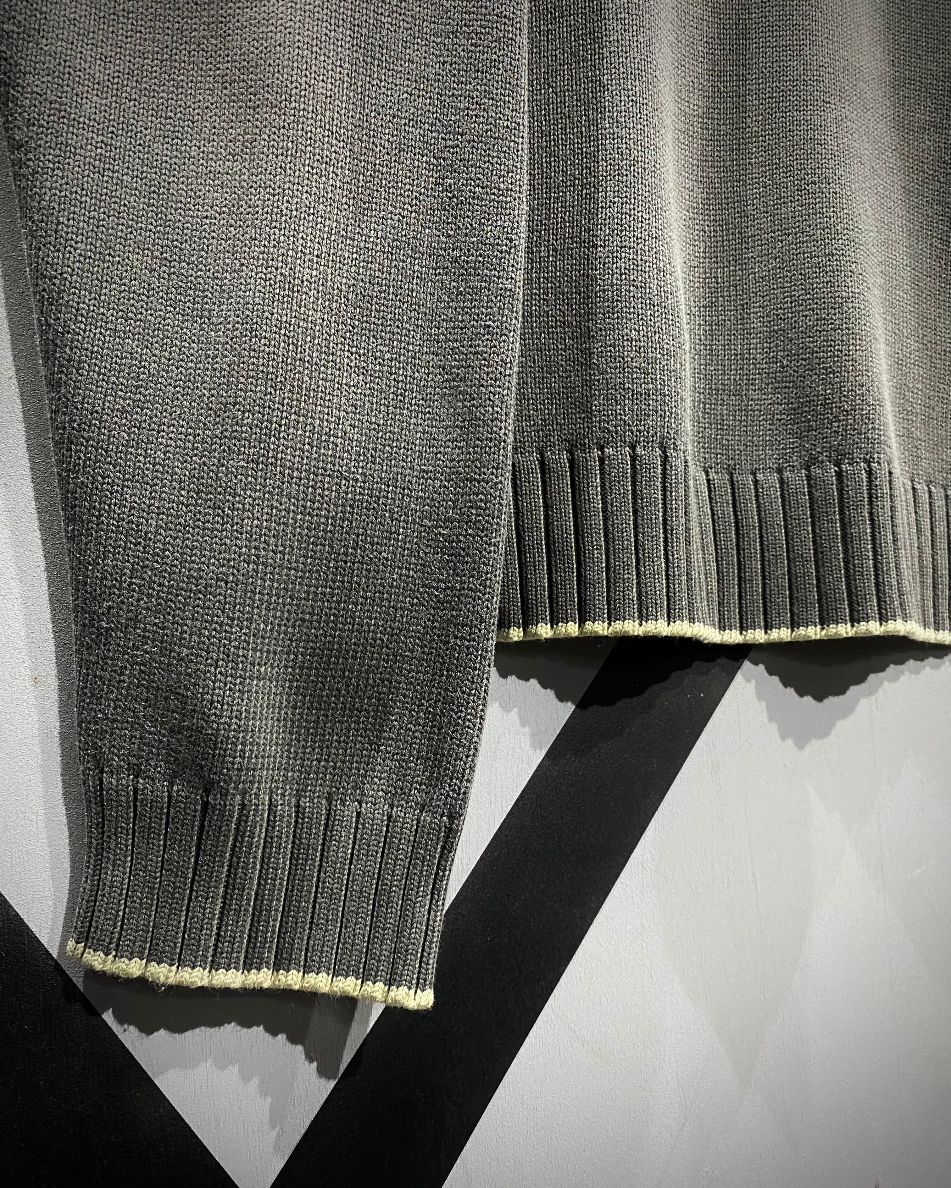 ボディにはアクリル×コットン混紡の柔らかな糸を使用し、ニット特有の温かみと軽やかな着心地を両立。
