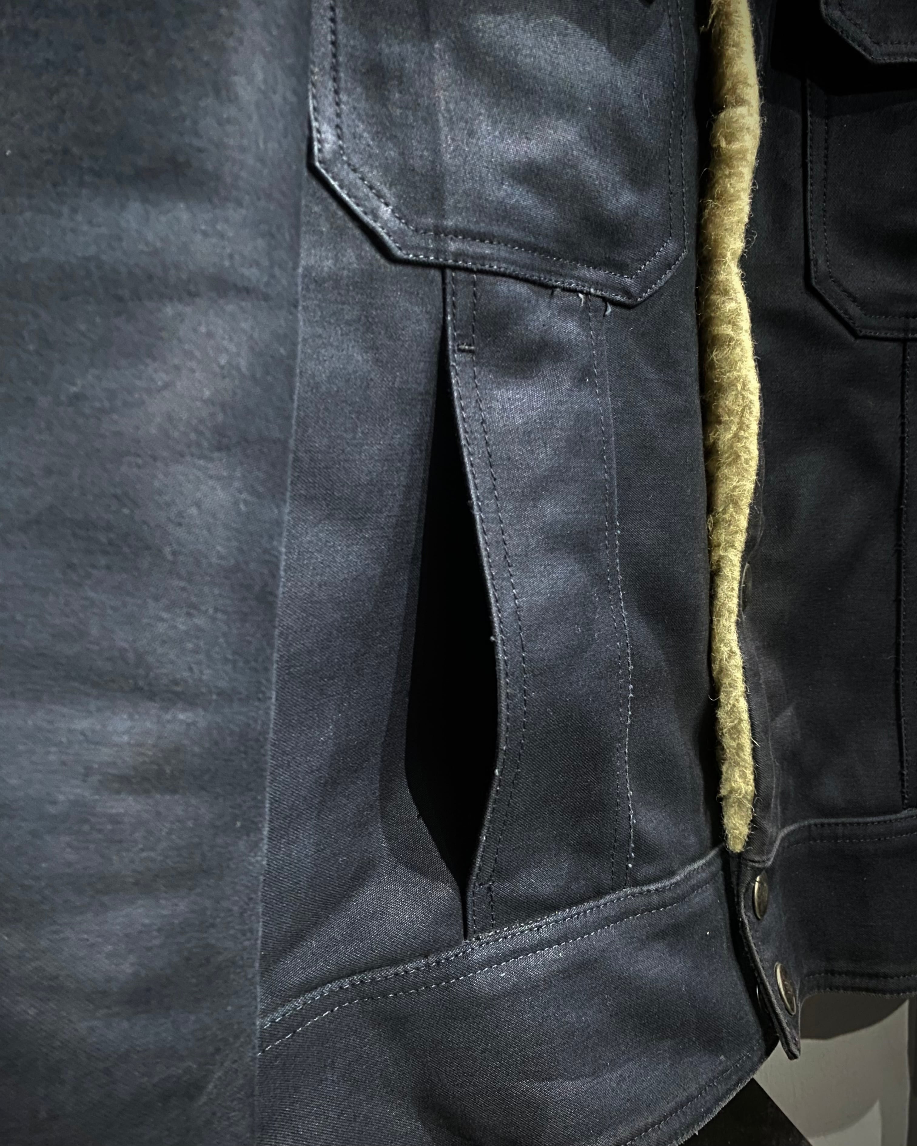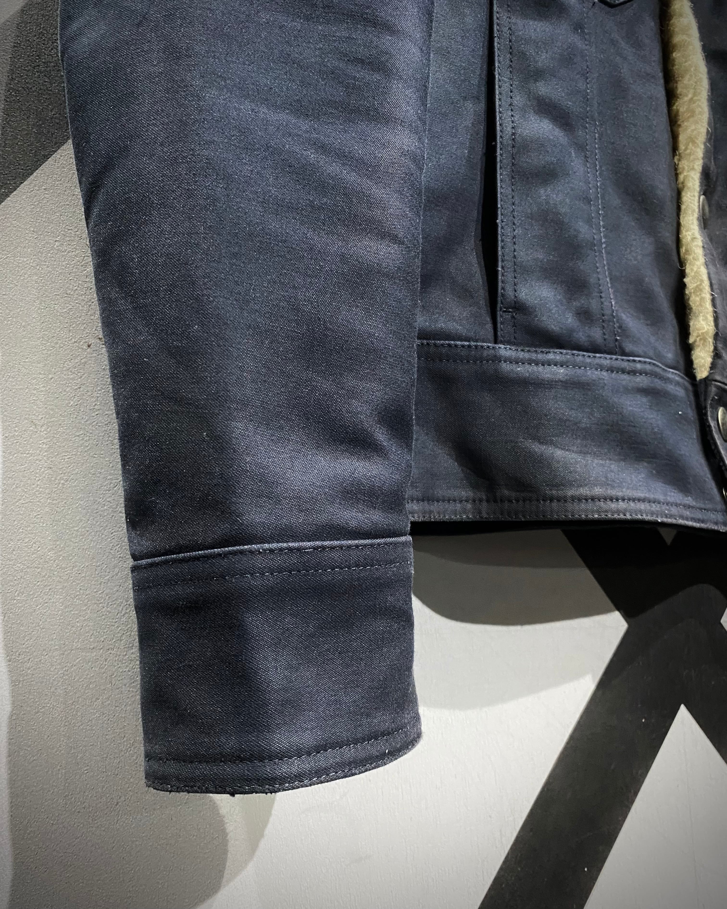 ボディ内側、襟にはボアをびっちりと施し、デザインのアクセントになると共に、保温性も言わずもがな抜群。軽やかな着心地ながらしっかりと冬の寒さから体を守ってくれます。