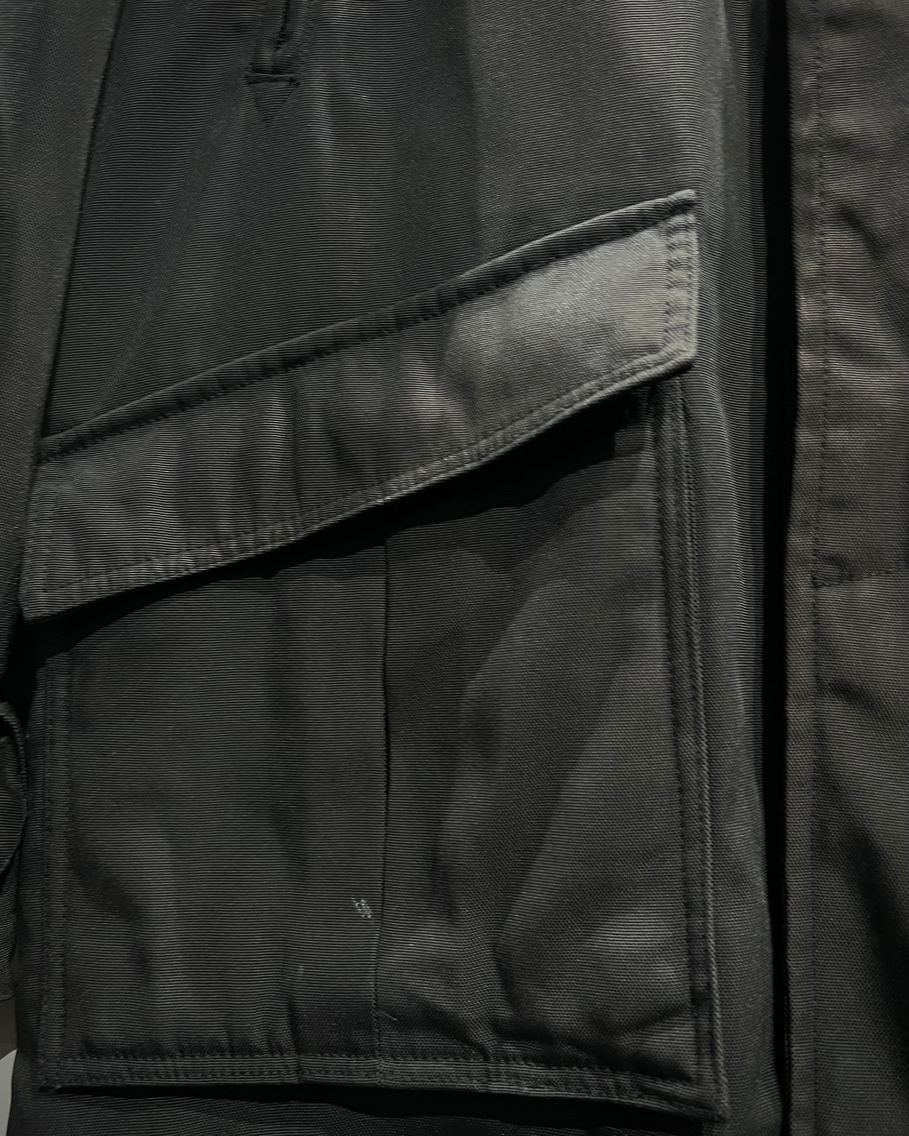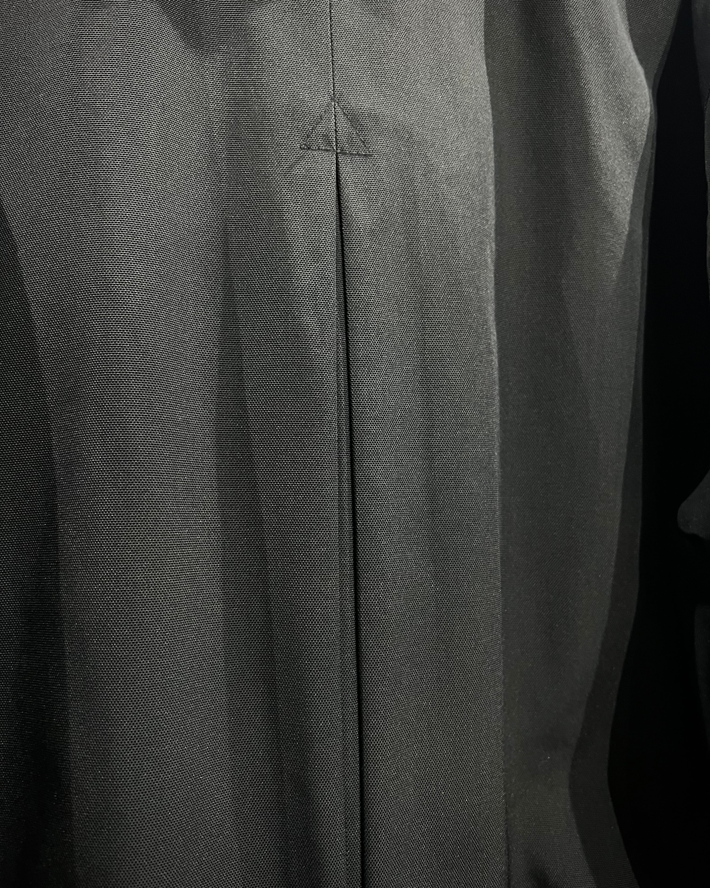 素材には高密度に織られたナイロン×コットン混ファブリックを採用。マットな光沢と滑らかな手触りが特徴な1着です。