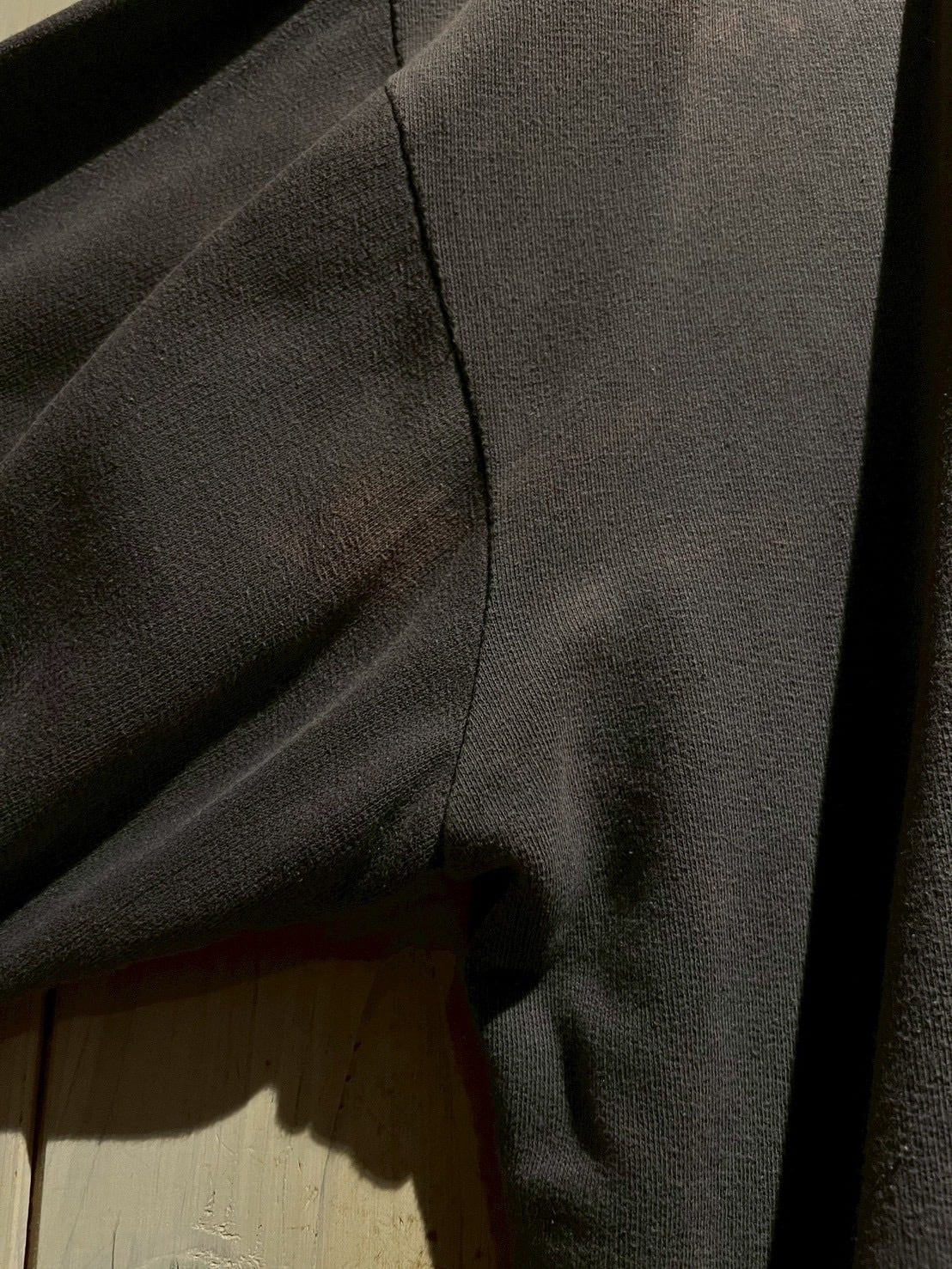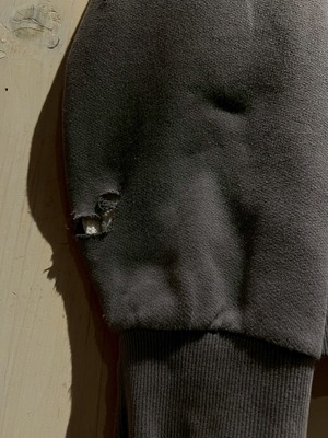 全体を包むチャコールグレーのボディは、長年着込まれたことで生まれた鈍いフェードトーンとアタリ、ピンホールが描く理想的なボロ感が魅力。単なる古着を超え、リアルワークウェアならではのストーリーを纏っています。