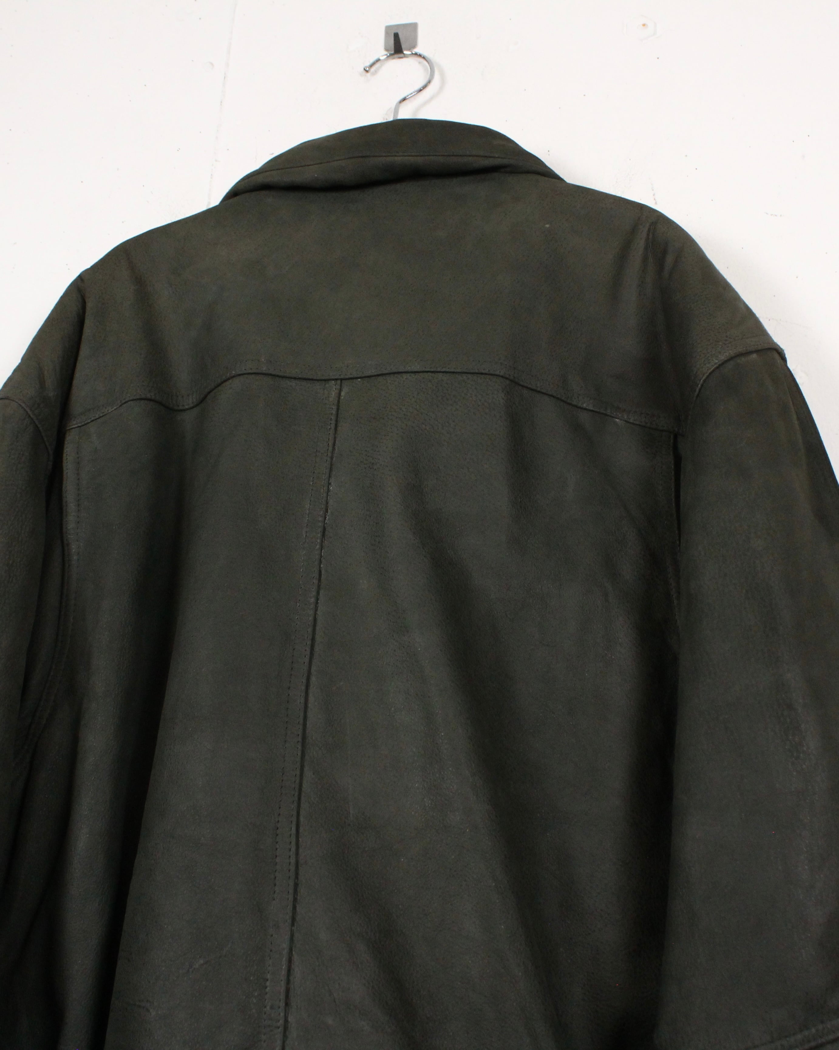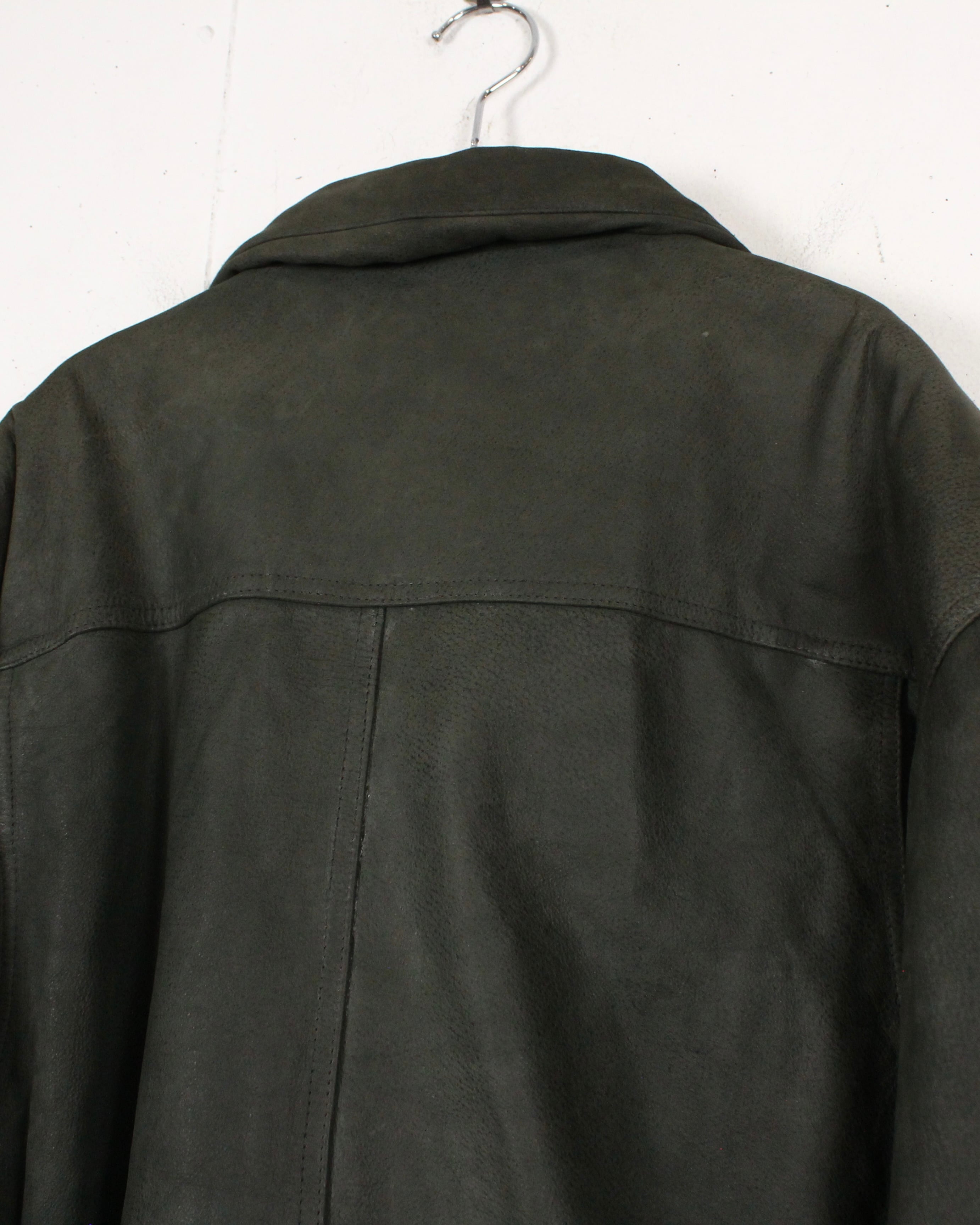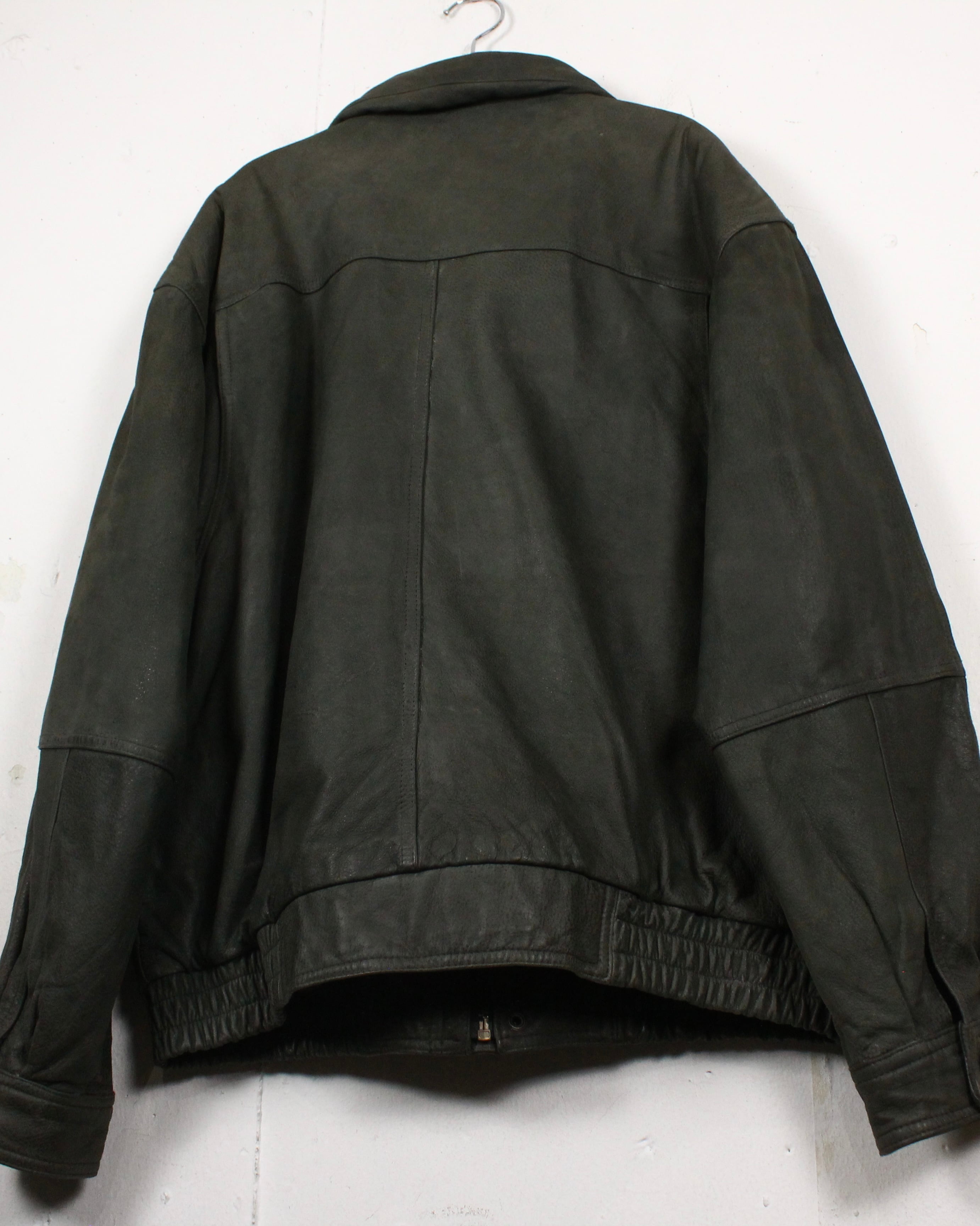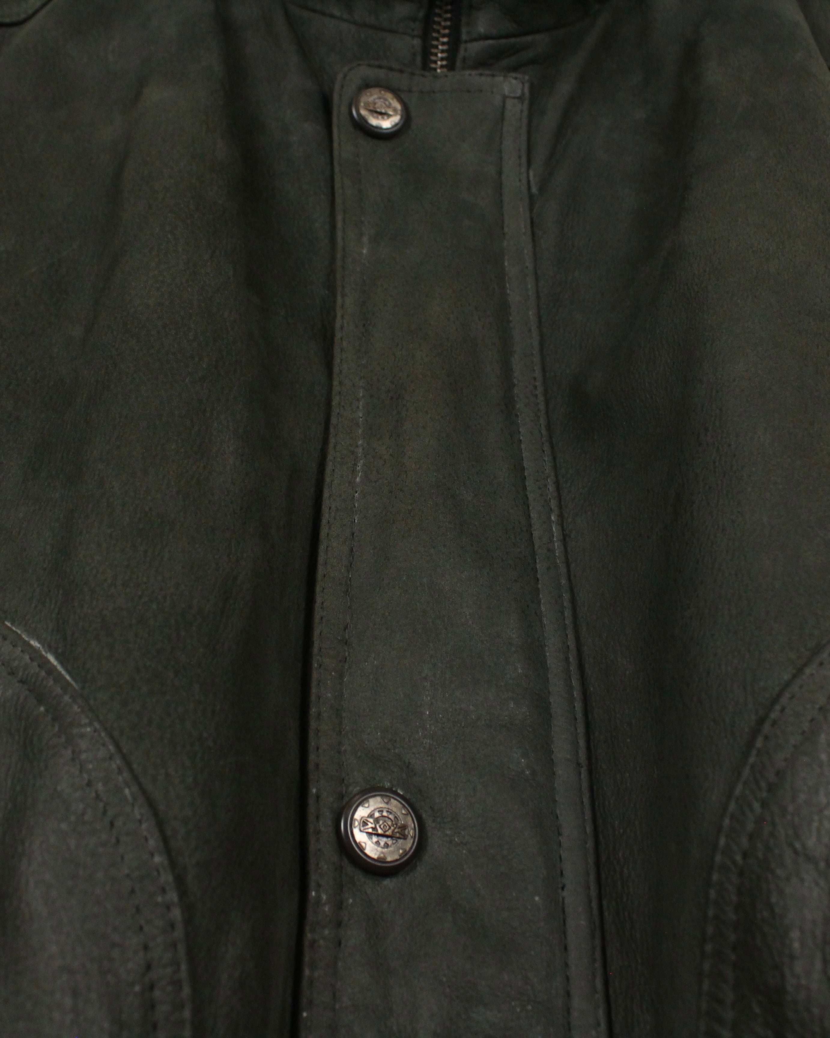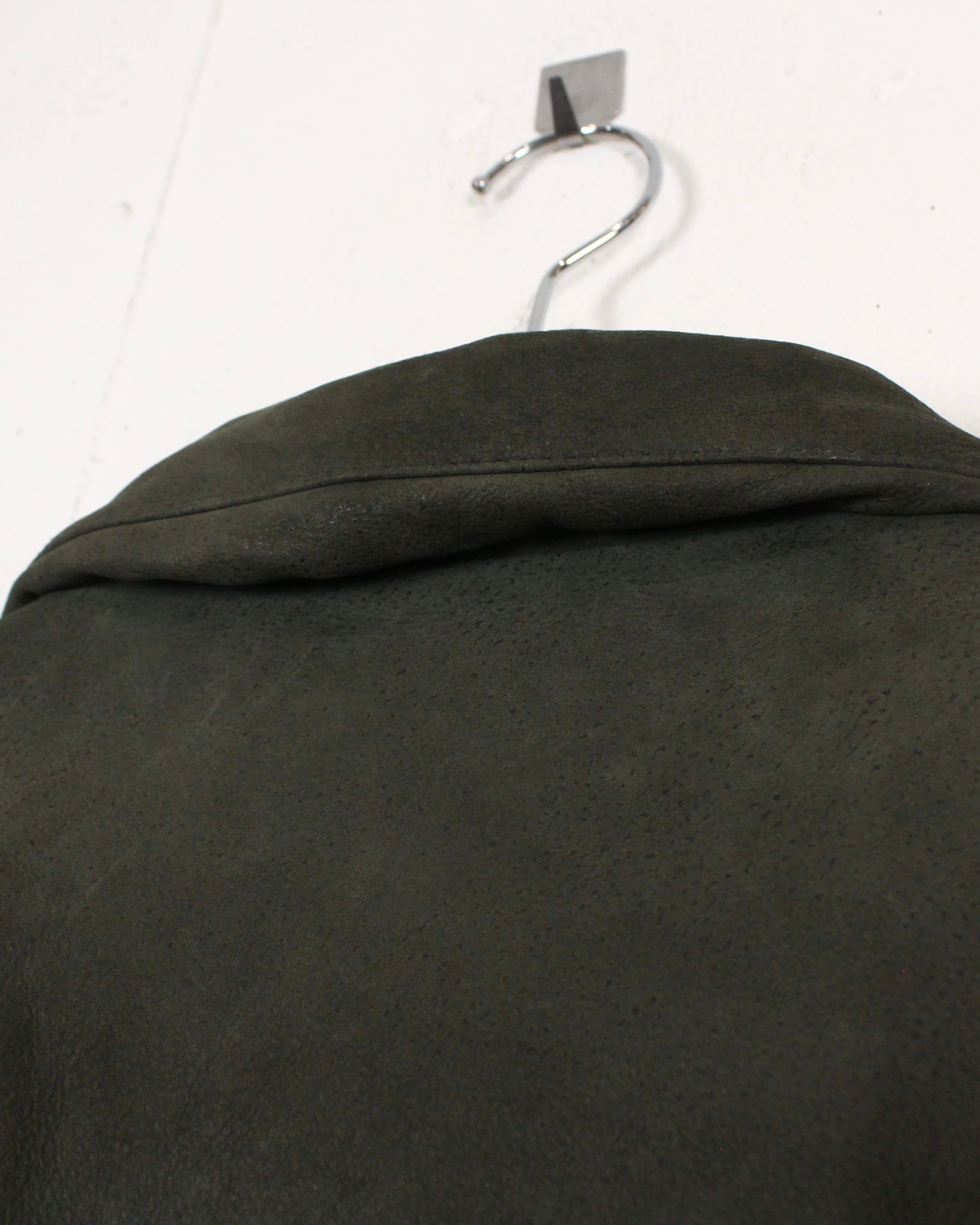 どんなスタイルにもマッチし、羽織るだけでコーディネートを引き締める存在感。深みのあるグリーンが際立つ、稀有なレザージャケットの逸品です。