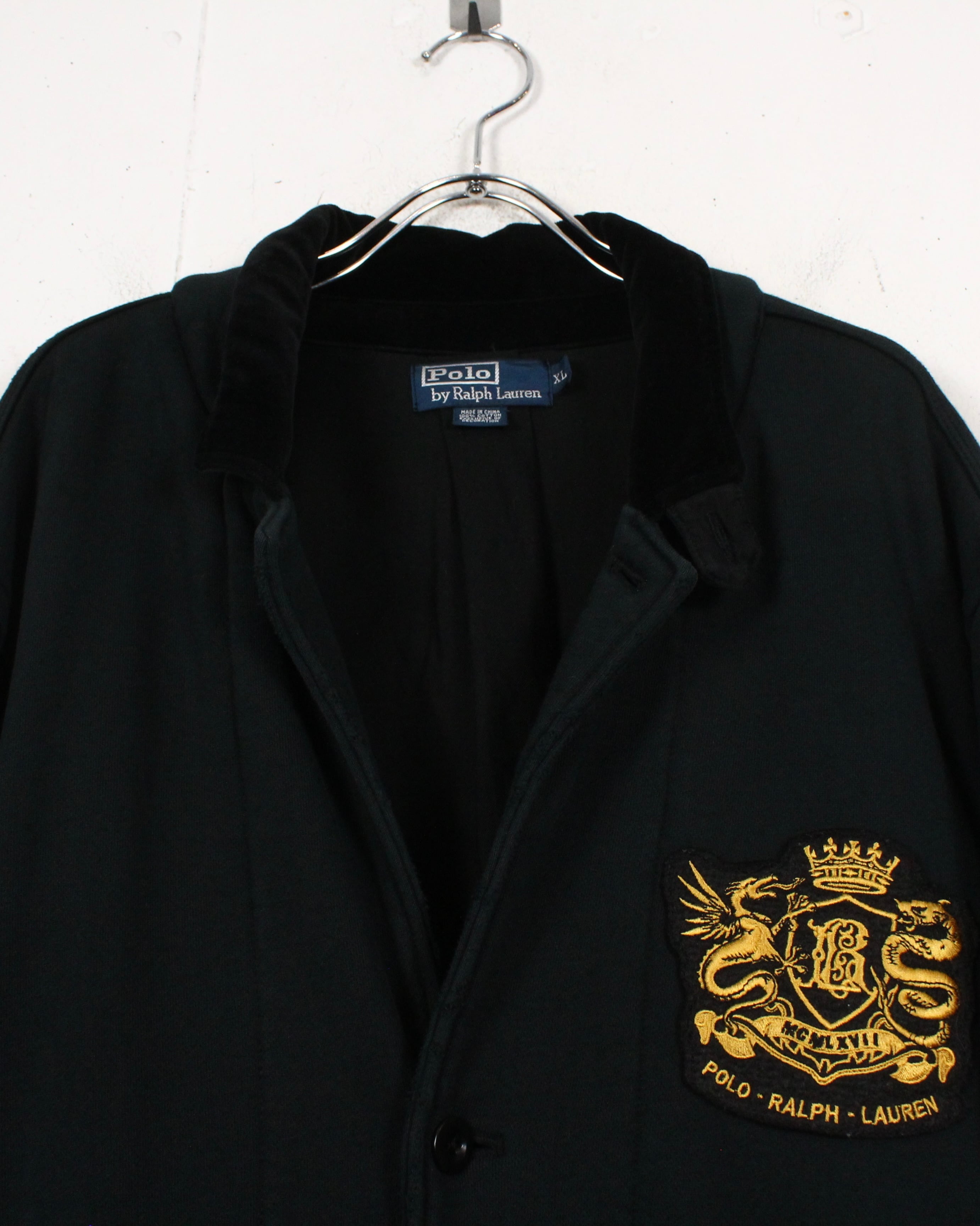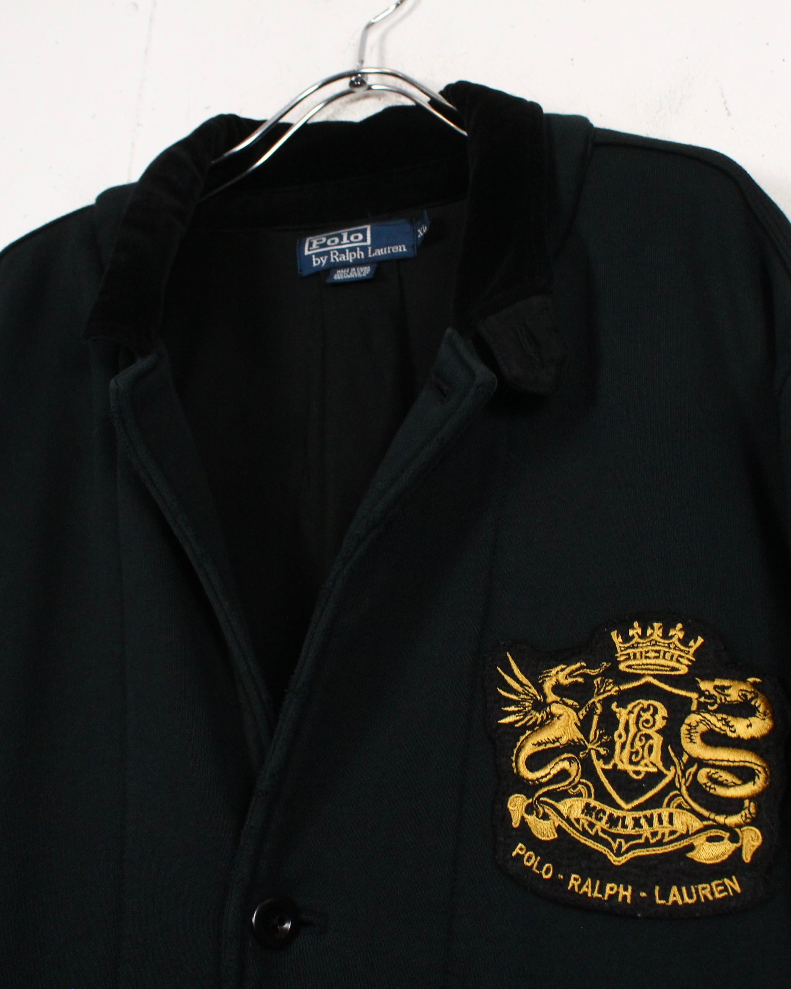 胸元にはドラゴンとクラウンをモチーフにしたゴールドのワッペンを配置。“POLO RALPH LAUREN”の象徴的な紋章デザインが、クラシカルな存在感を放ちます。