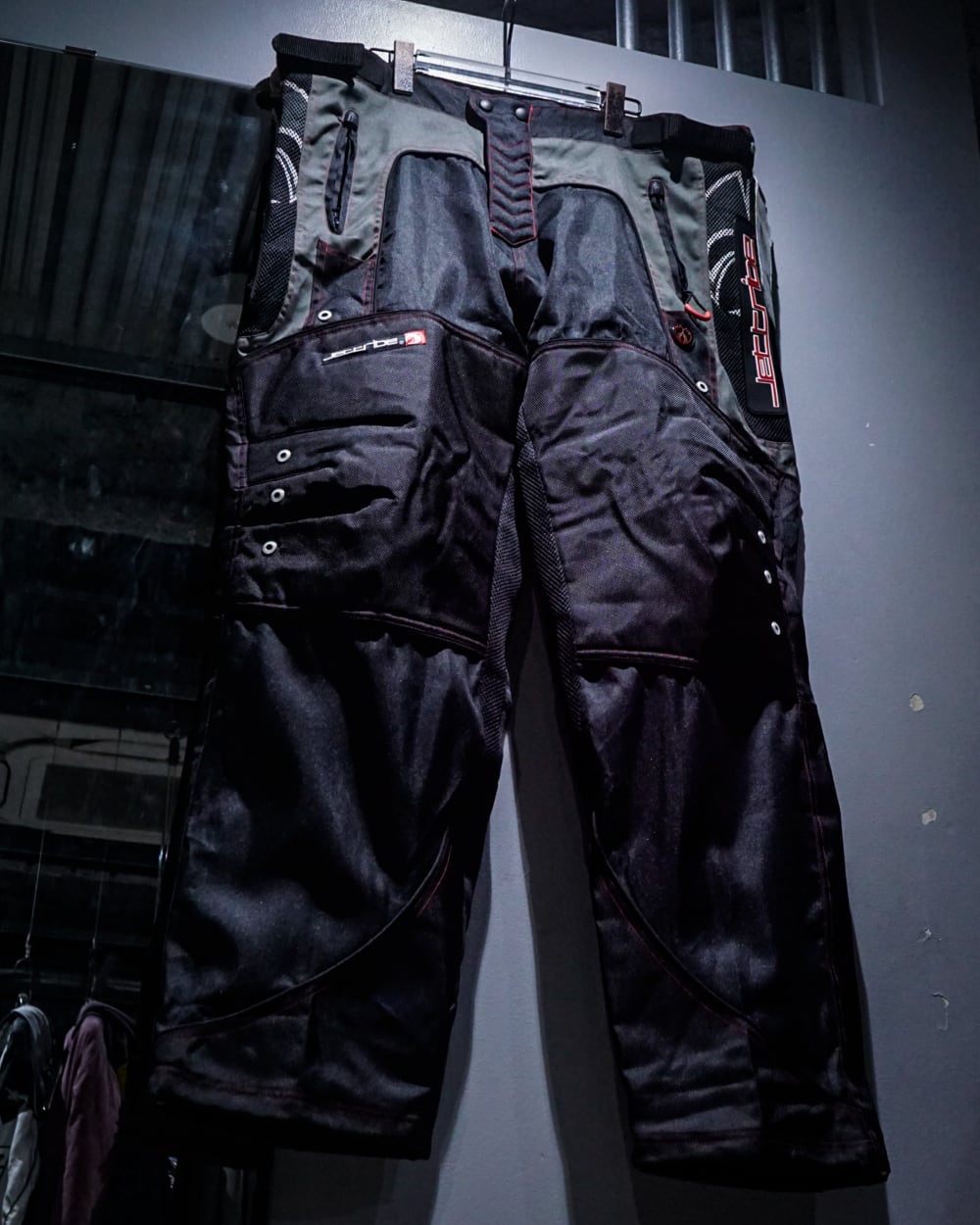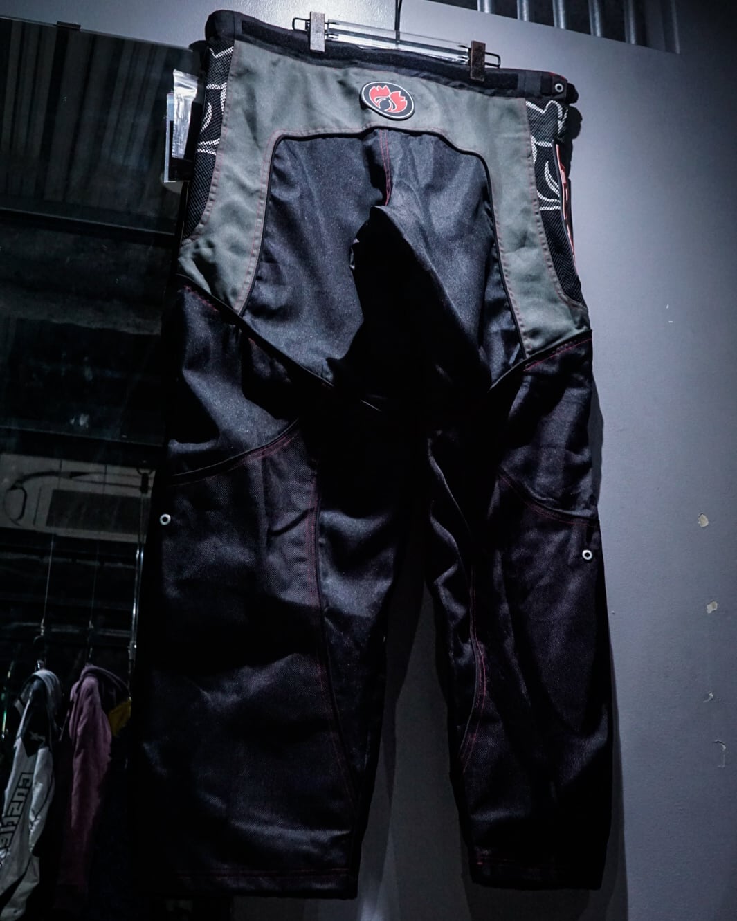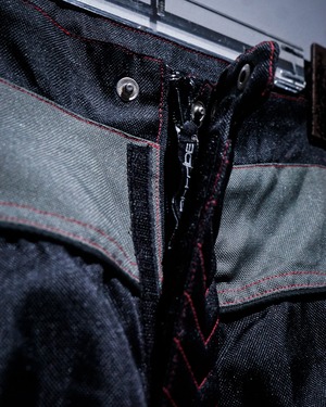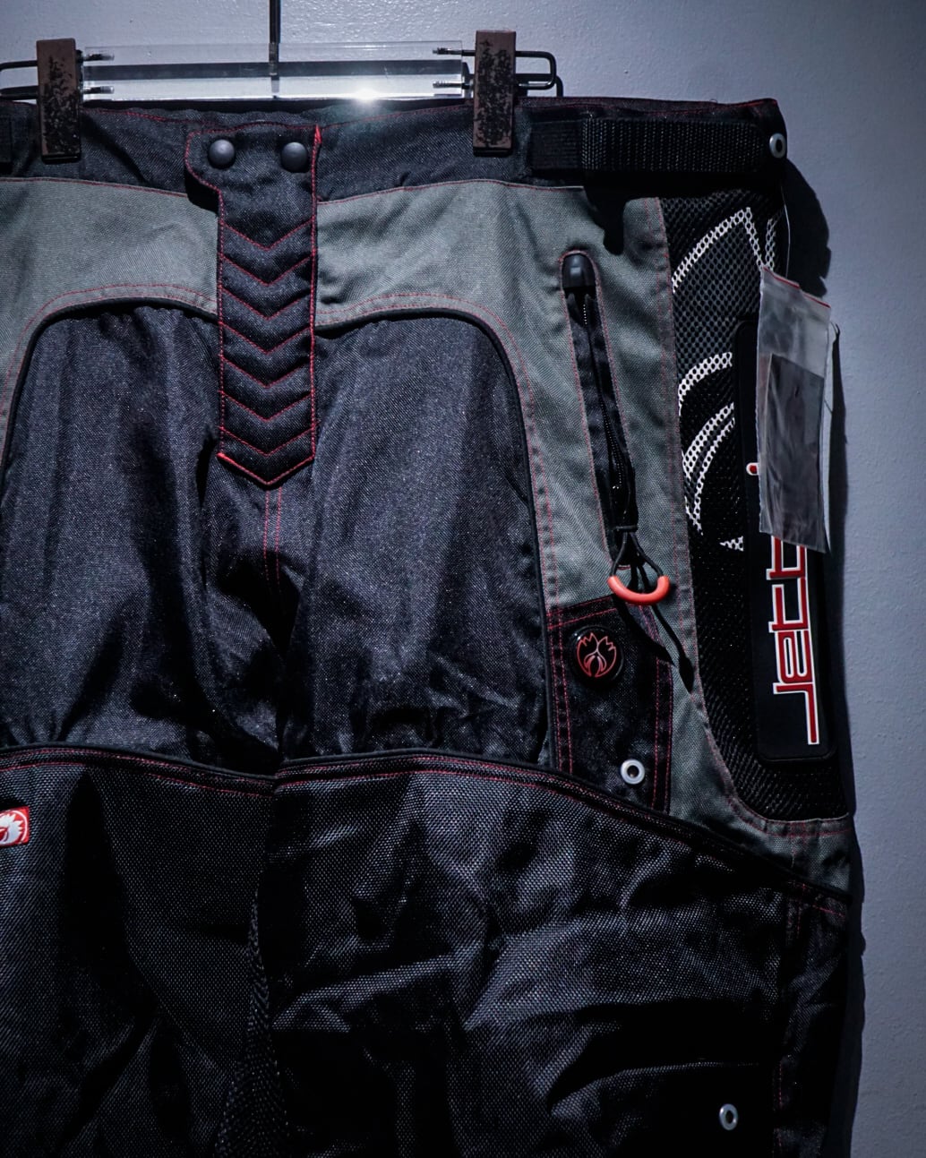 ウエスト、ヒップにかけての立体裁断と切り替え、随所に配されたステッチがブランドらしい精密な作り込みを強調。サイドのJETTRIBEラバーパッチやベンチレーションといったギミックも圧巻の完成度で、重厚感漂う仕上がりに。