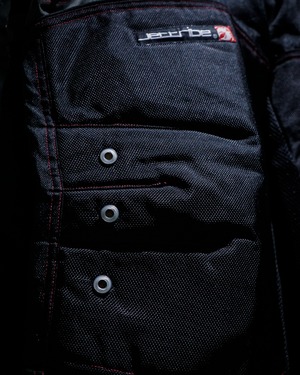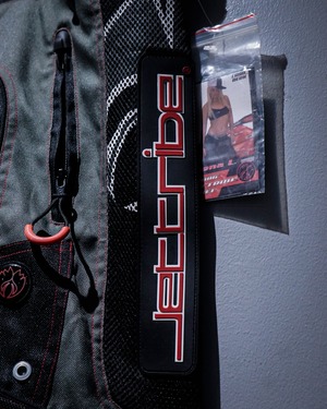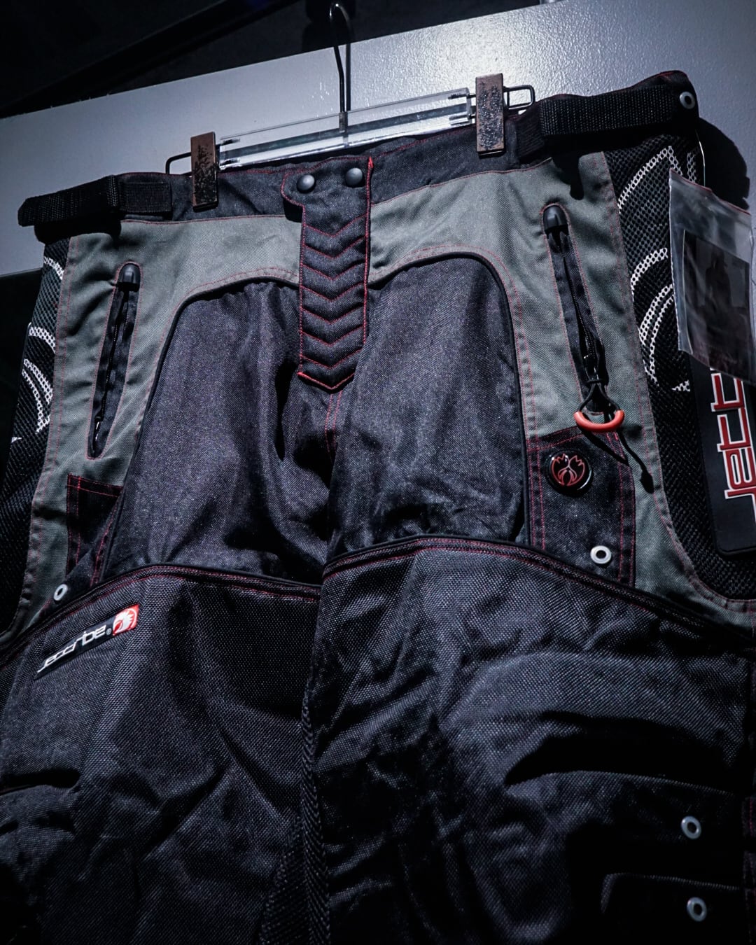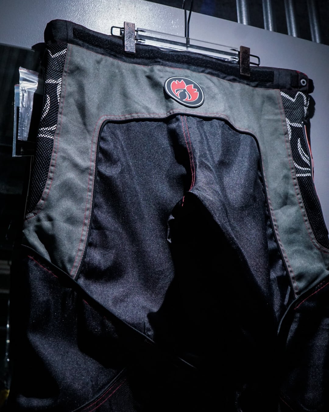 ウエスト、ヒップにかけての立体裁断と切り替え、随所に配されたステッチがブランドらしい精密な作り込みを強調。サイドのJETTRIBEラバーパッチやベンチレーションといったギミックも圧巻の完成度で、重厚感漂う仕上がりに。