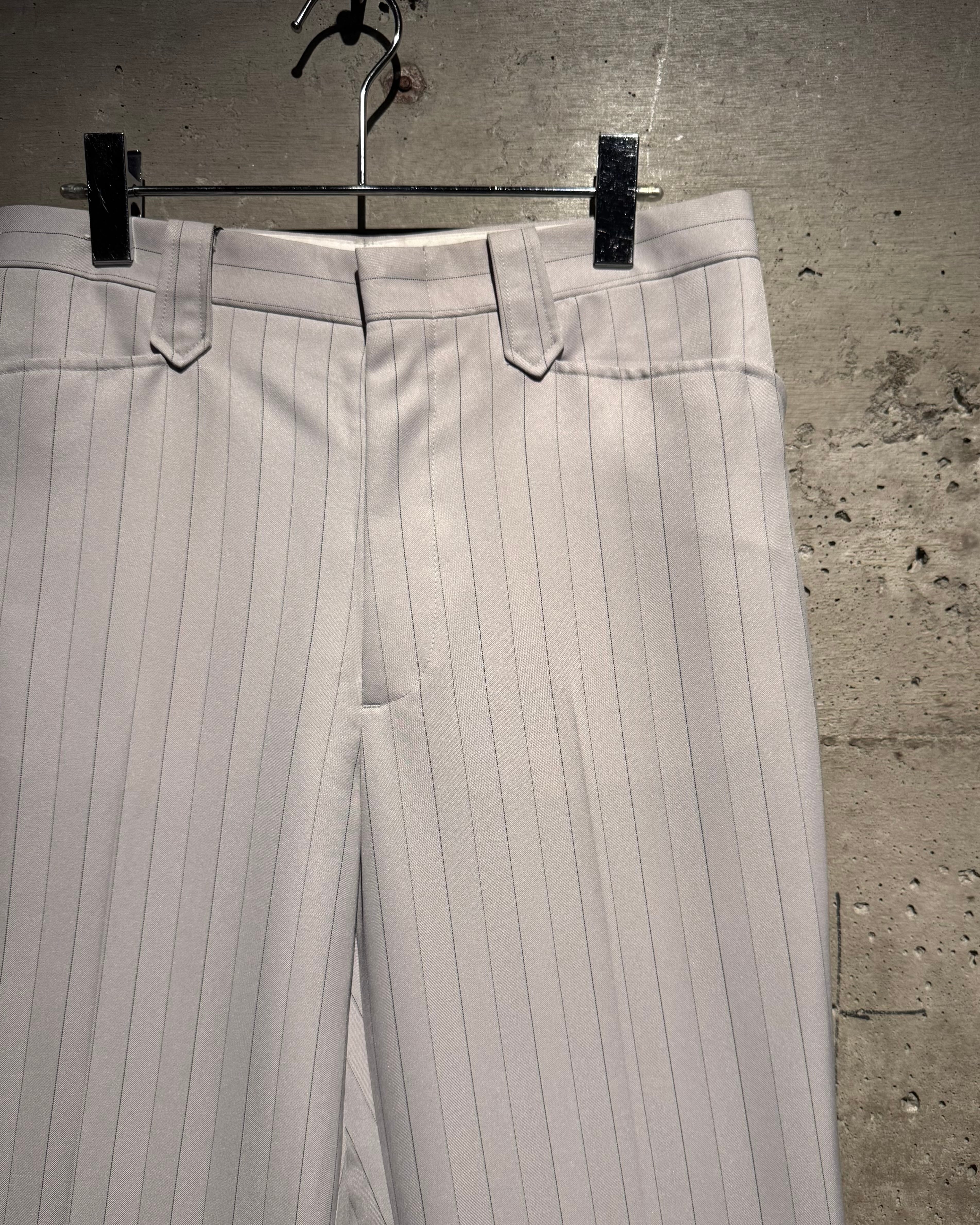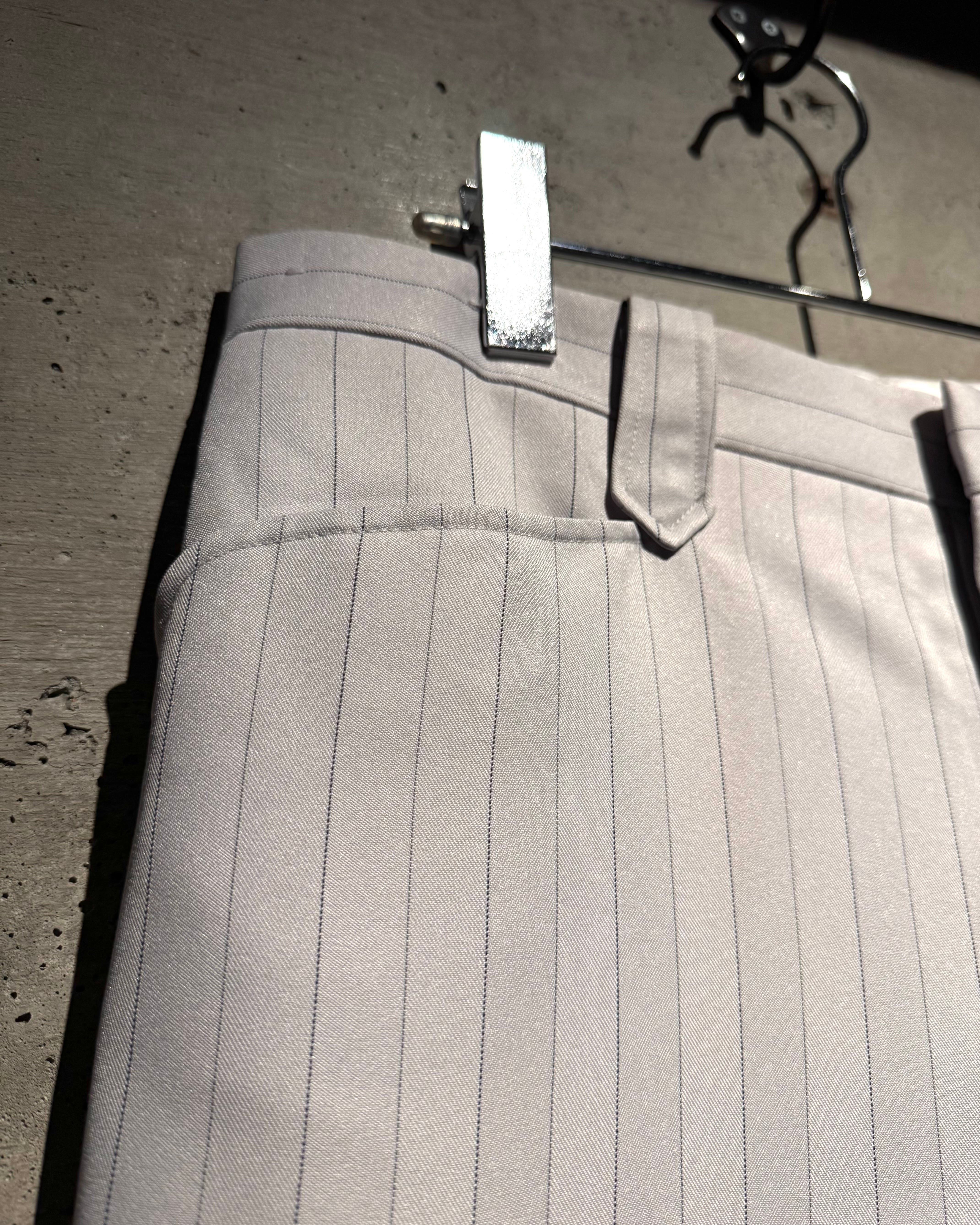 パンツはジャケットと同素材で仕立てられ、アロー型のベルトループが個性を演出。セミフレアのシルエットで足を美しく見せてくれます。