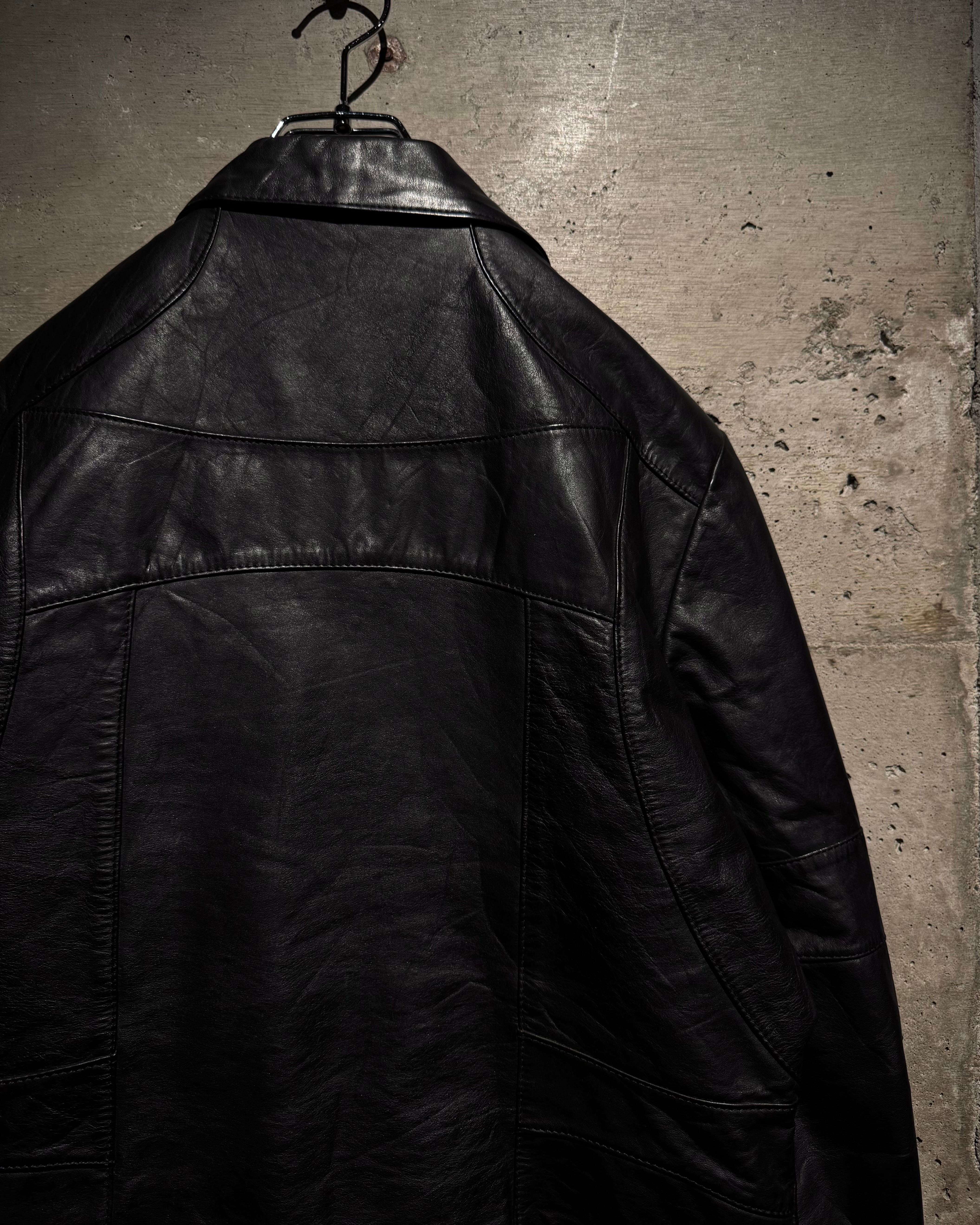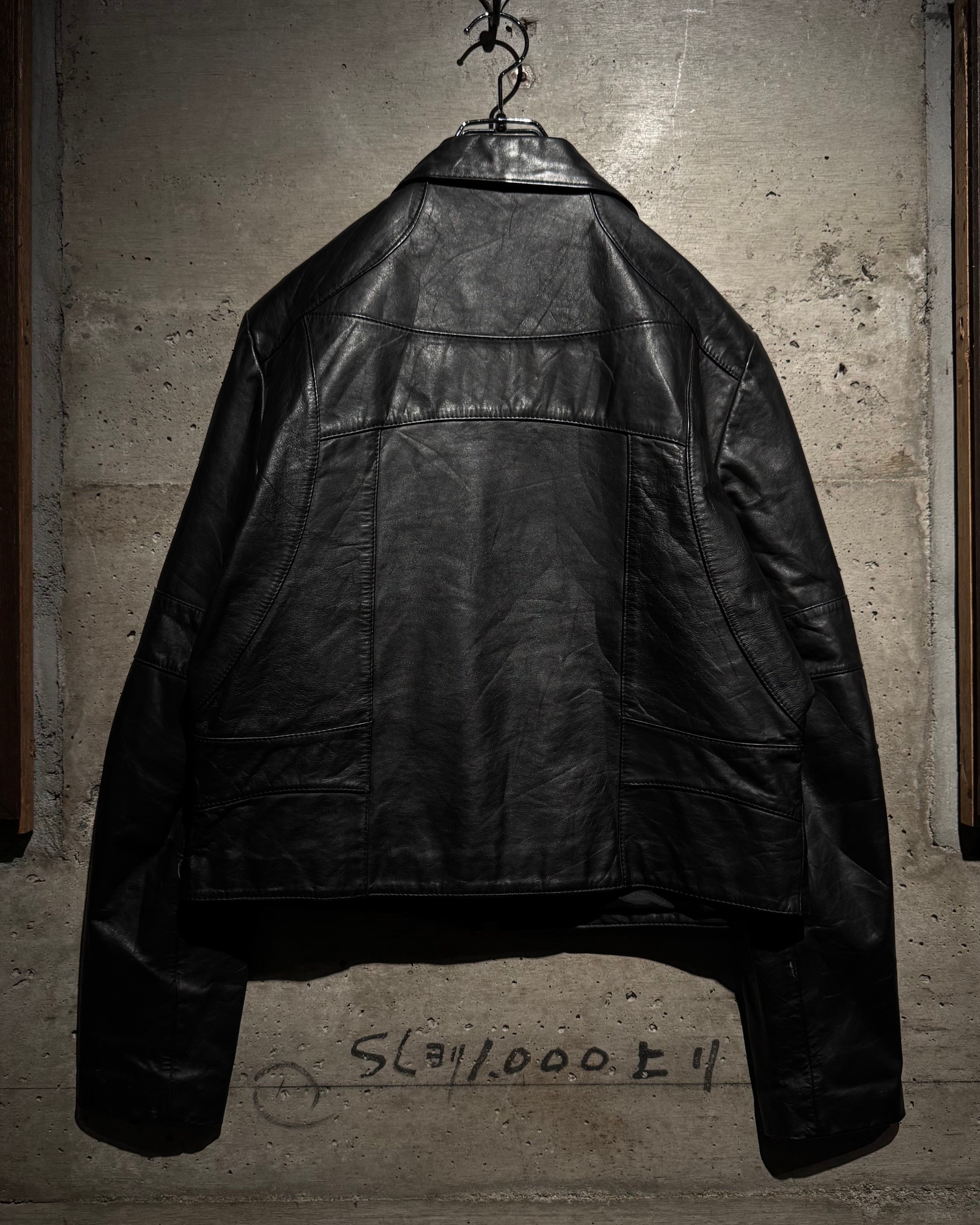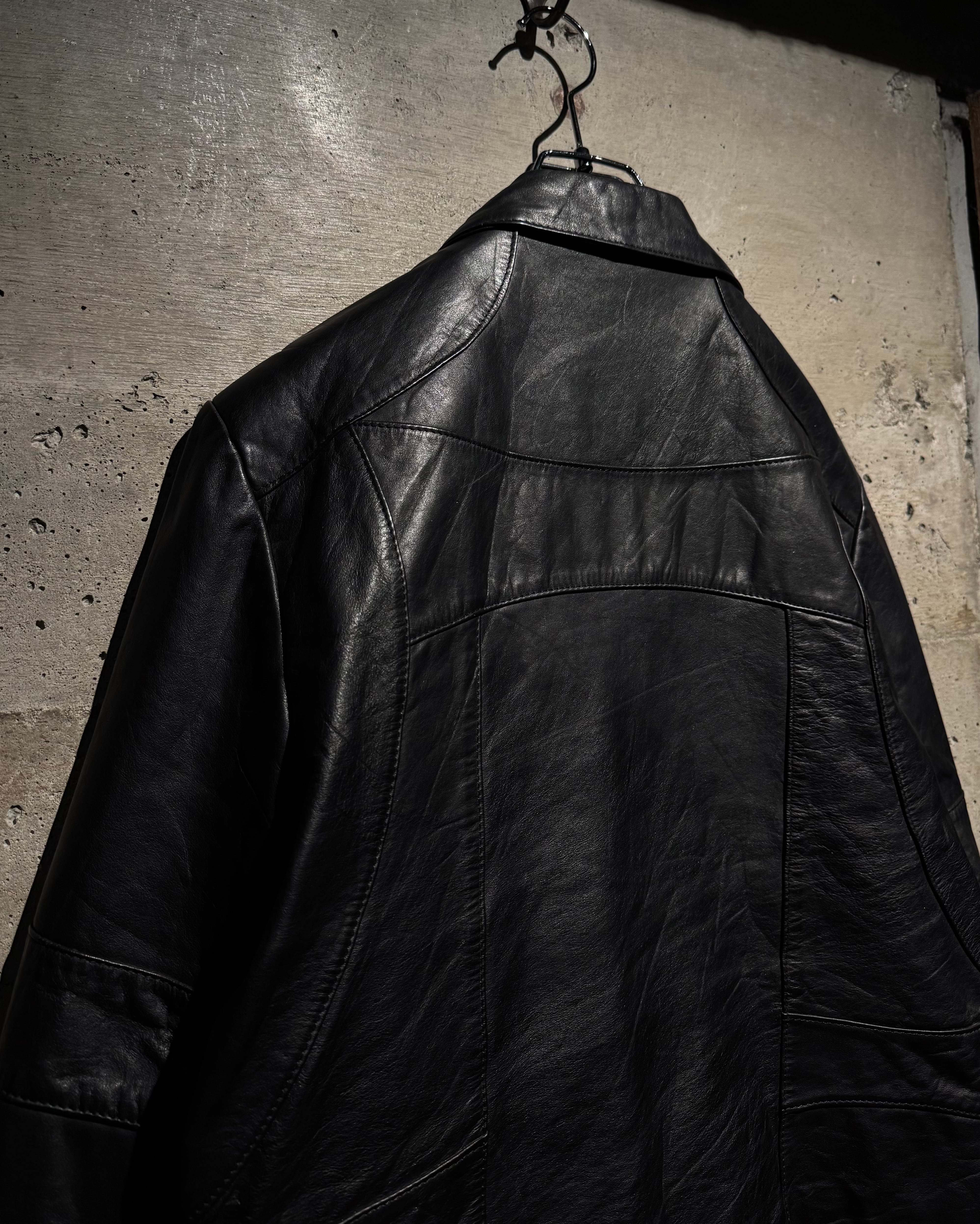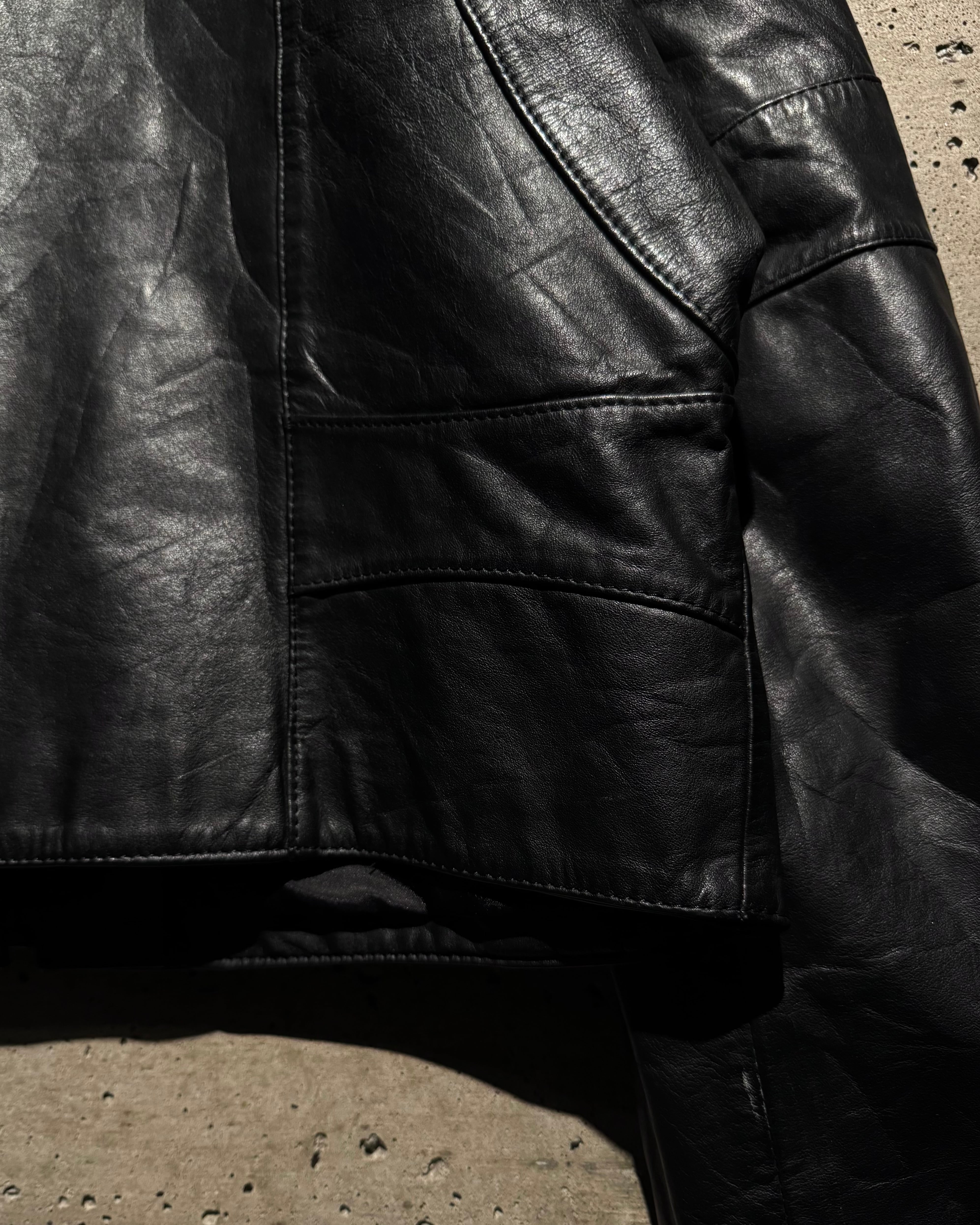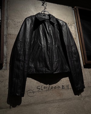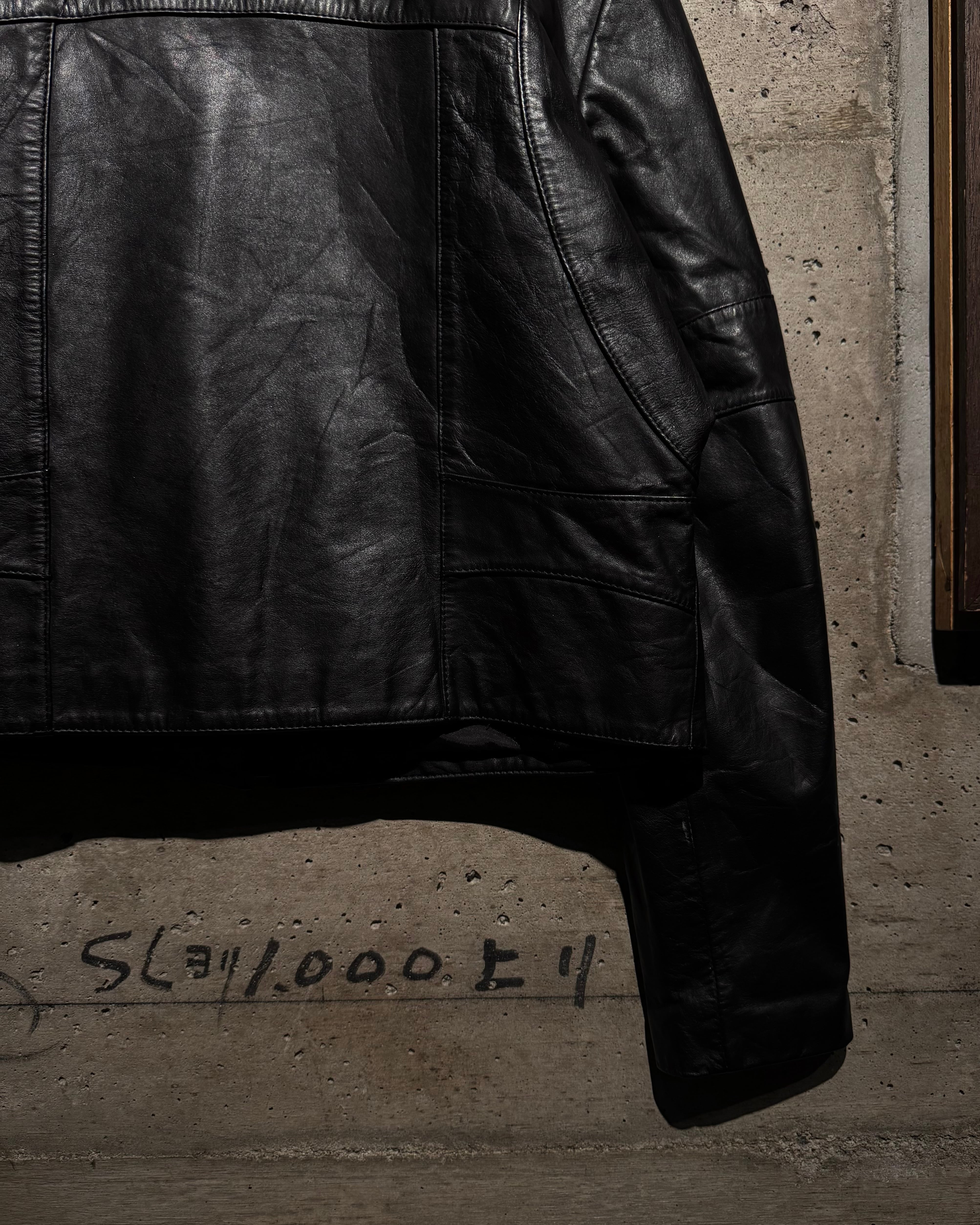 深みのあるブラックレザーを使用し、計算し尽くされた切り替えを施した、モードな香りを漂わせるレザージャケット。