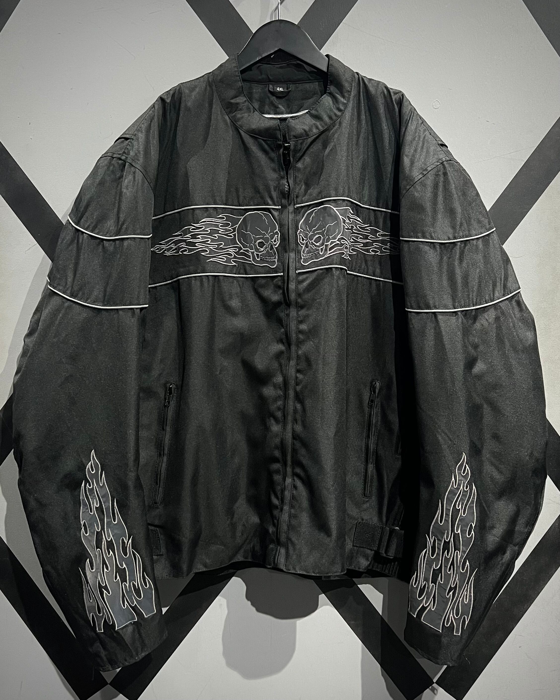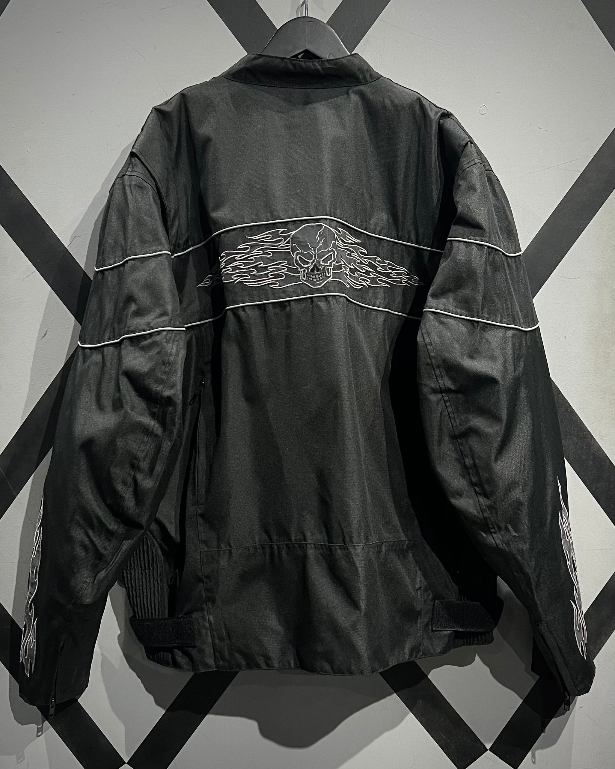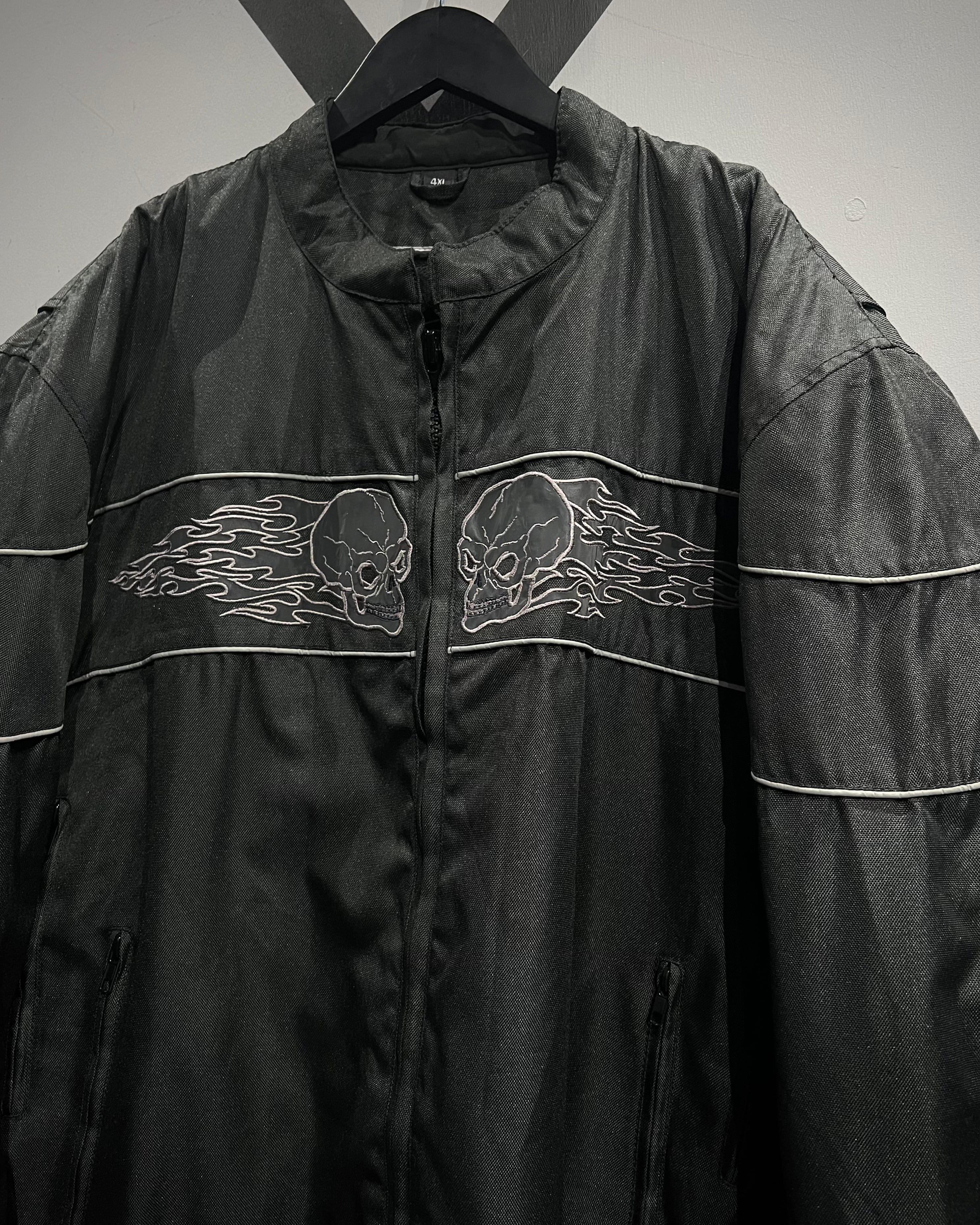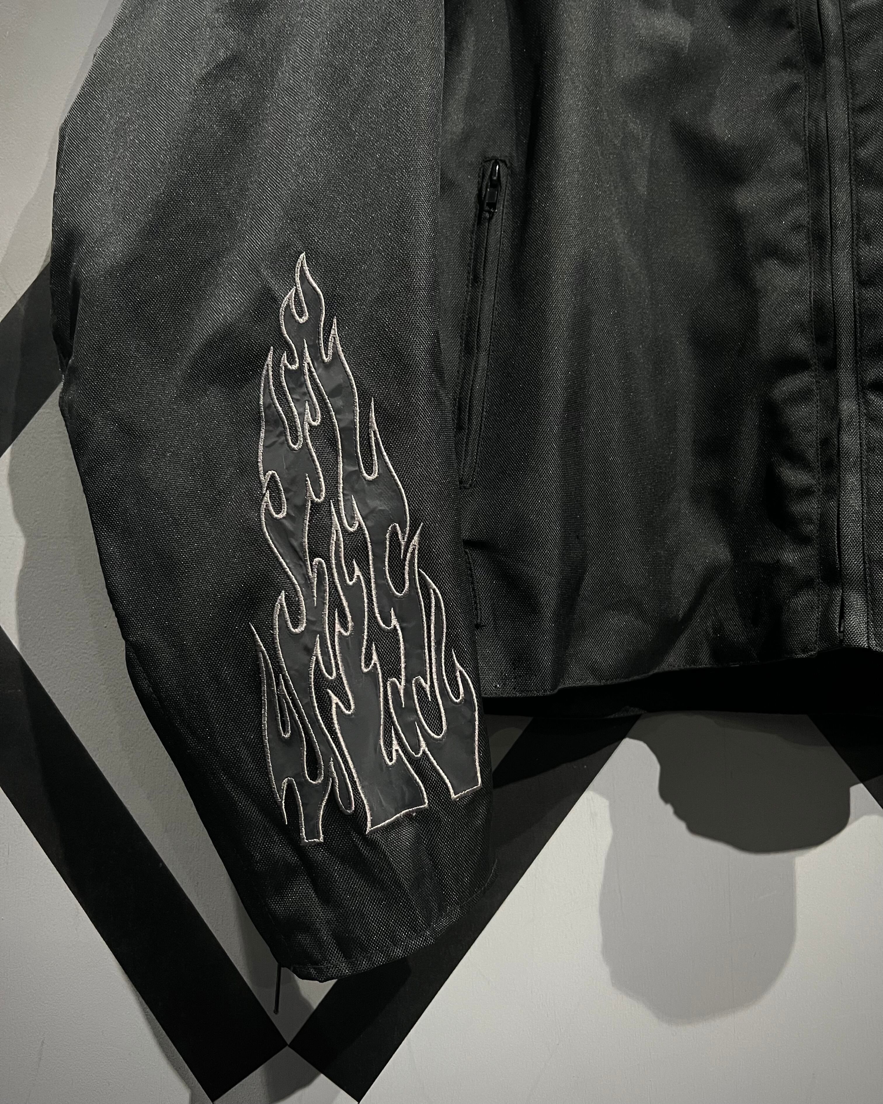 フロントと背面に施されたスカル×フレイムモチーフは、光を反射するリフレクター仕様となっており、夜間でも存在感を放つ圧巻のディテール。