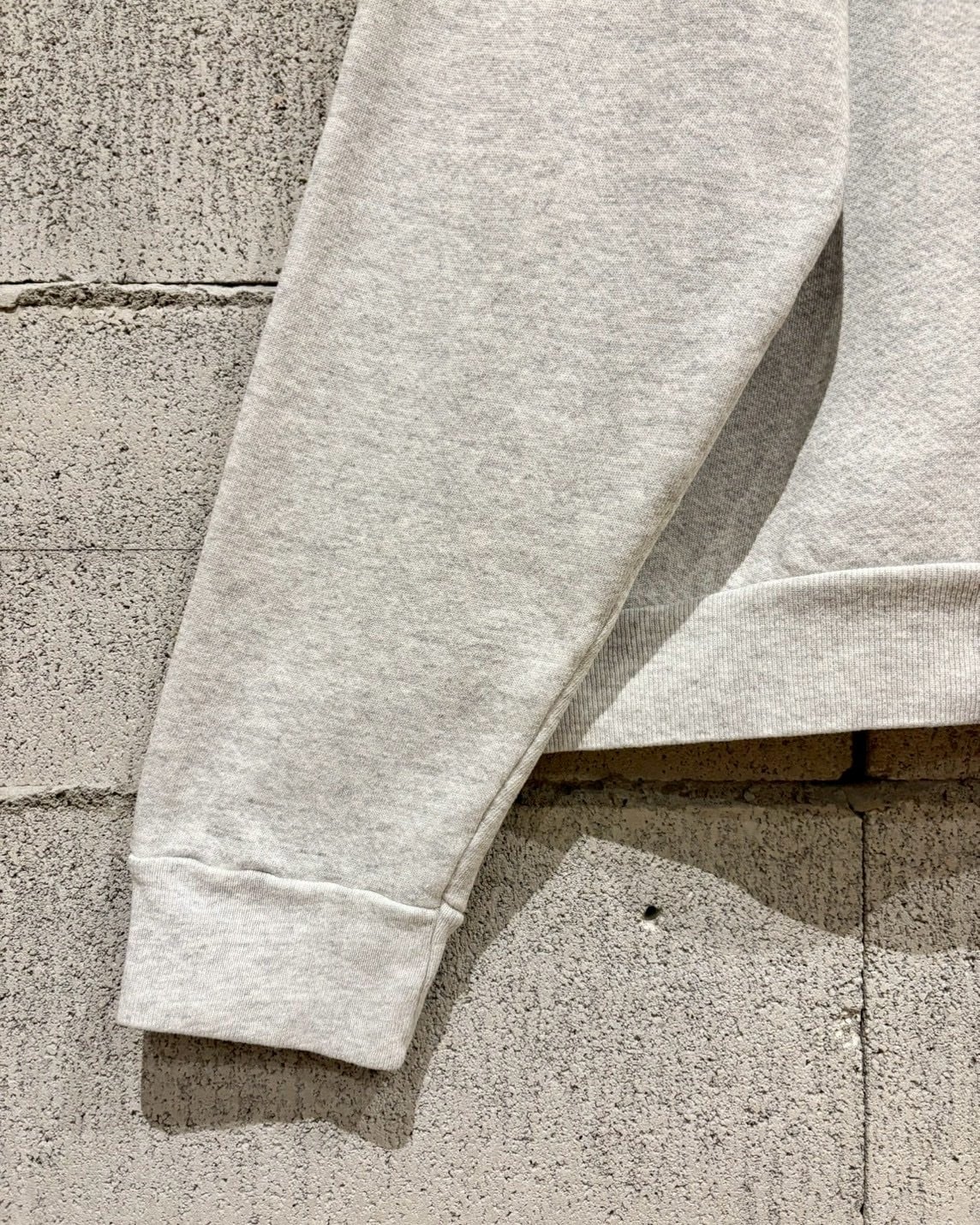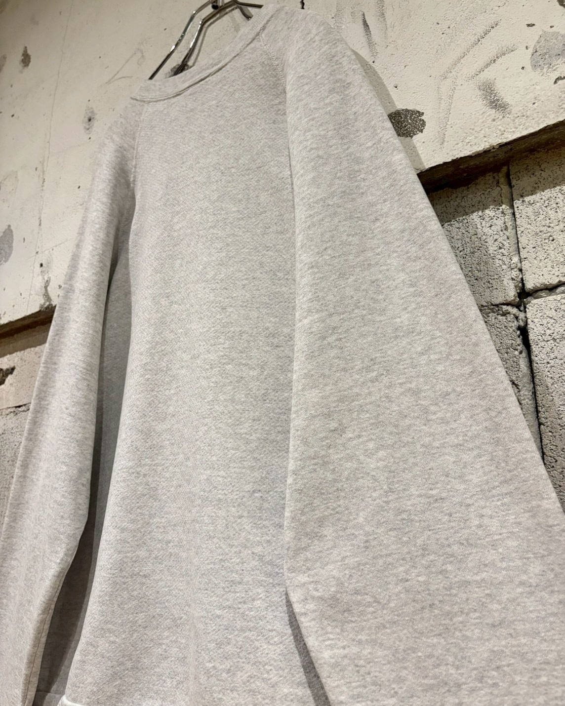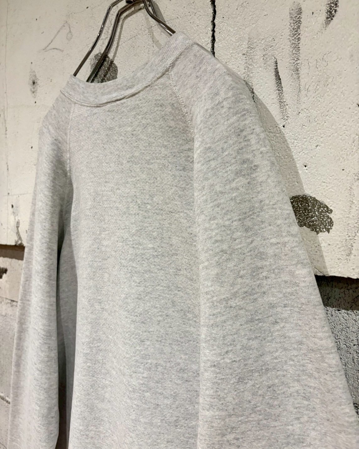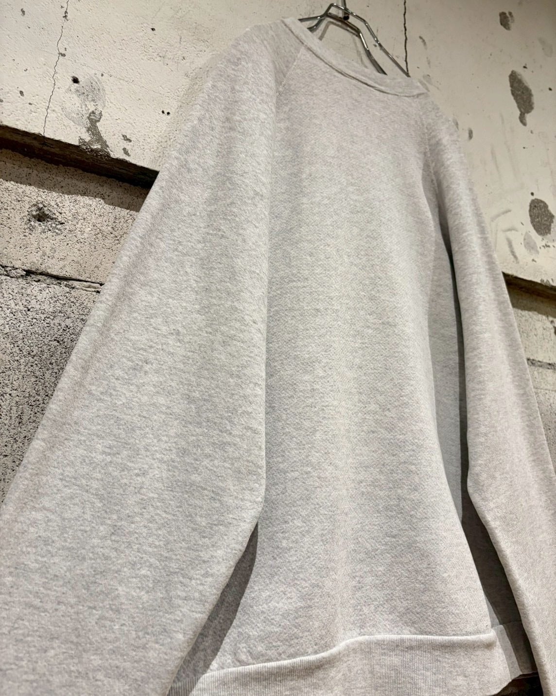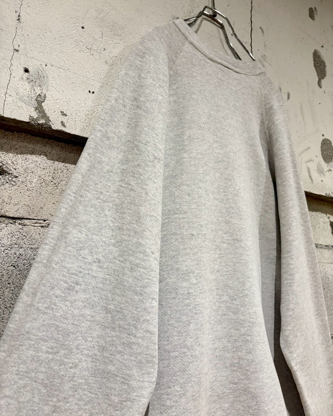 柔らかくしなやかなコットンボディに、ゆとりのあるXL表記のルーズシルエット。ラグランスリーブ特有の肩の落ち感が美しく、襟、袖、裾のリブが全体を程よく引き締めています。