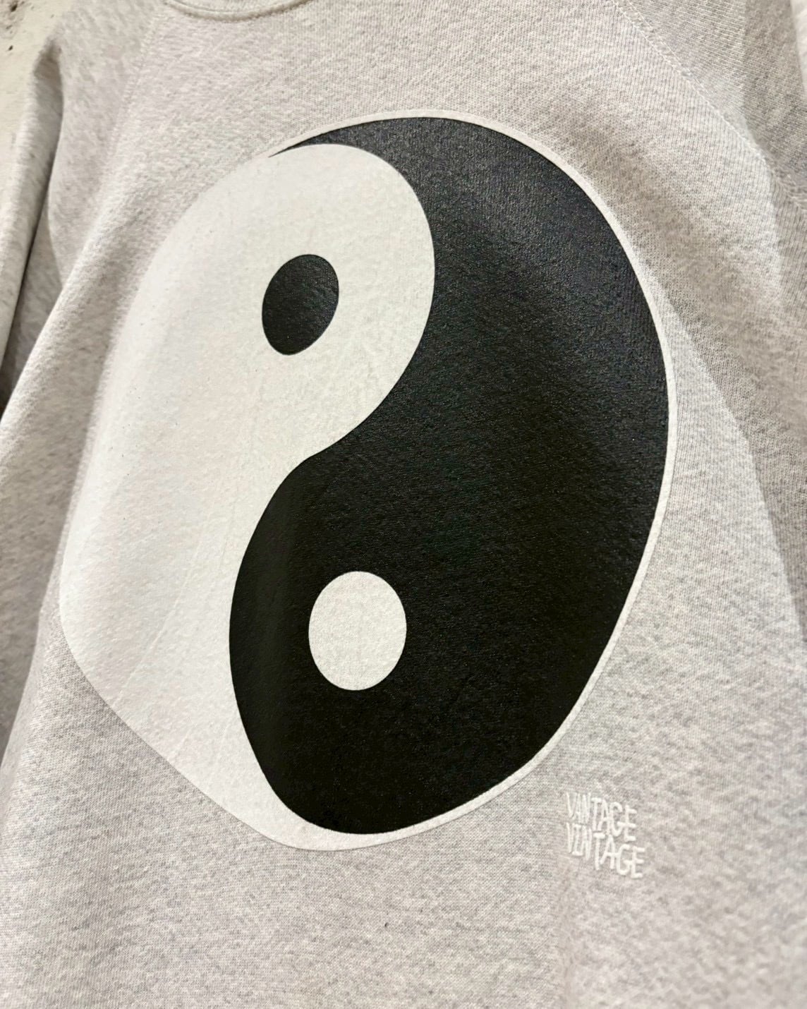 フロントに大きく“陰陽”をラバープリントで載せた、90’s TULTEX製スウェット。