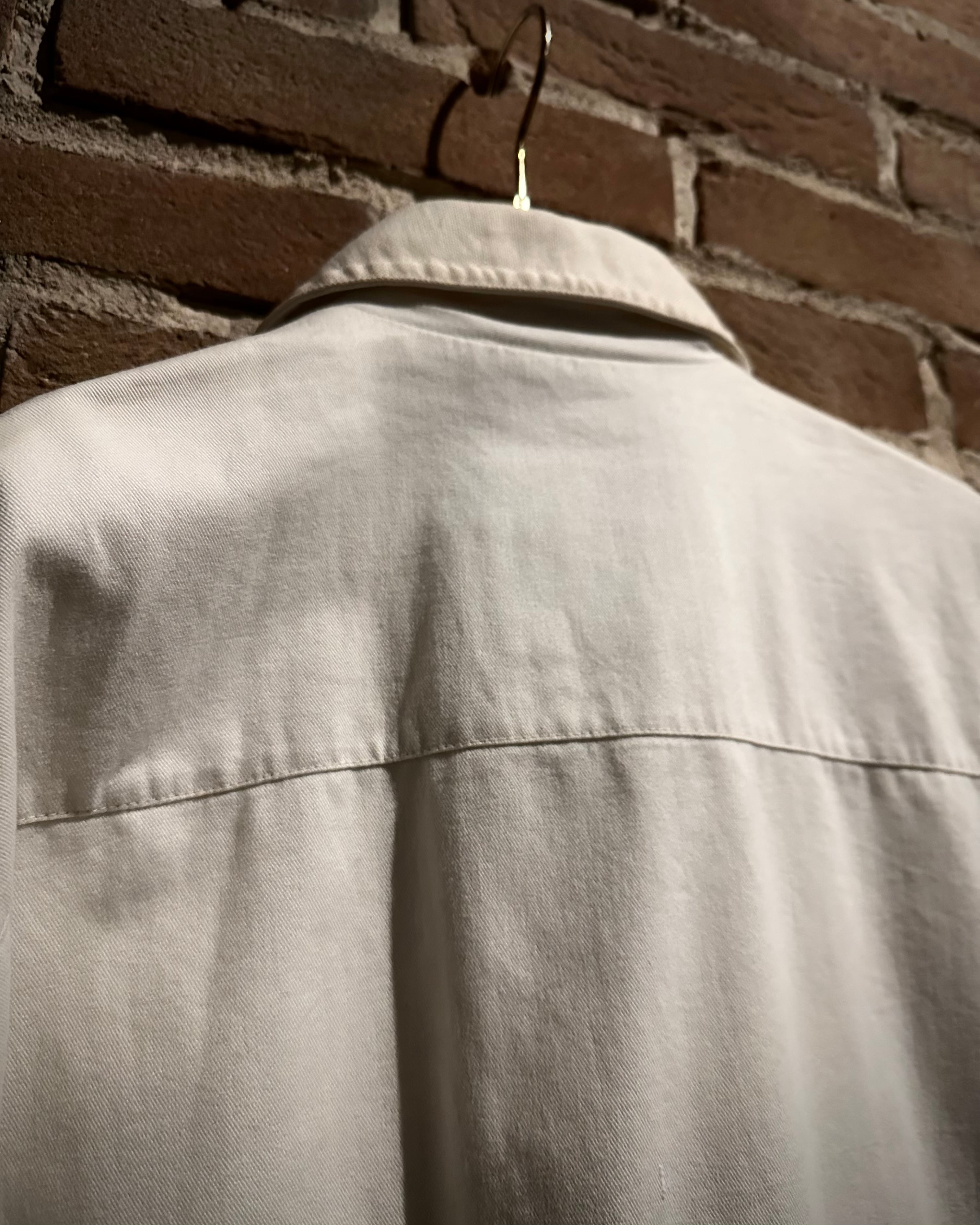 しなやかなコットン生地が描く落ち感と、淡色ながら深みのある質感が非常に上品で、カジュアルながらも上質さをしっかりと感じられます。