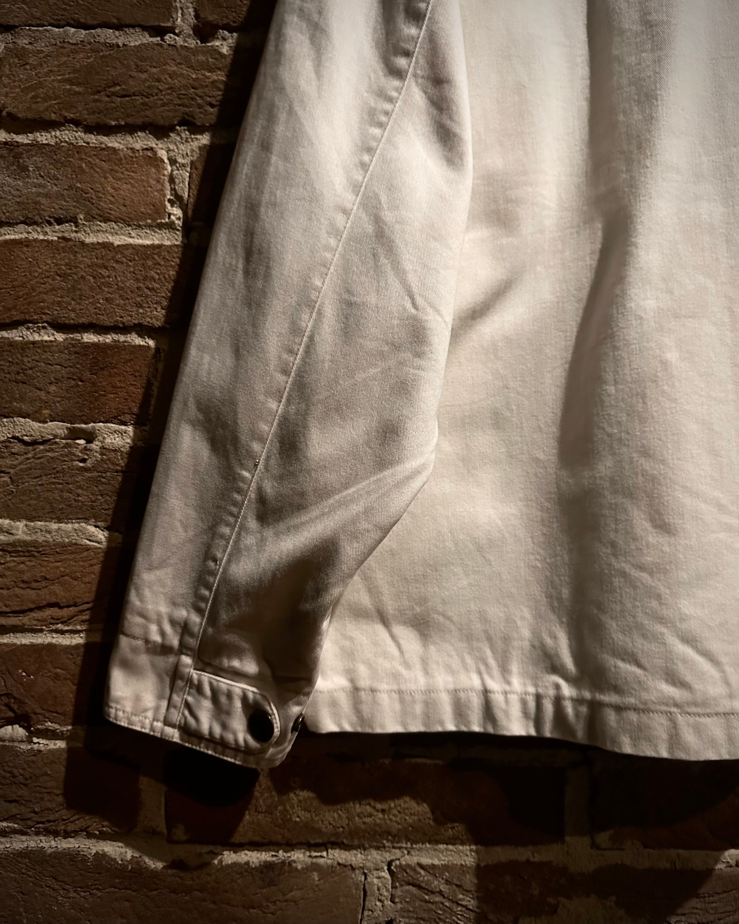 滑らかなオフホワイトのボディで組まれた、上質なハリントンジャケット。