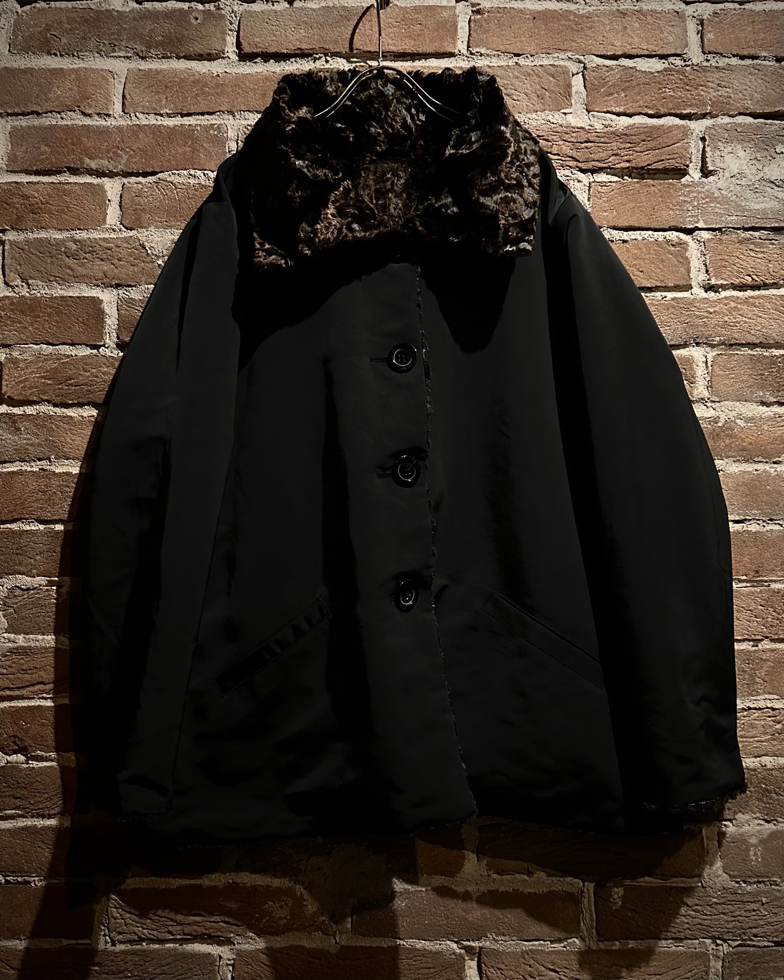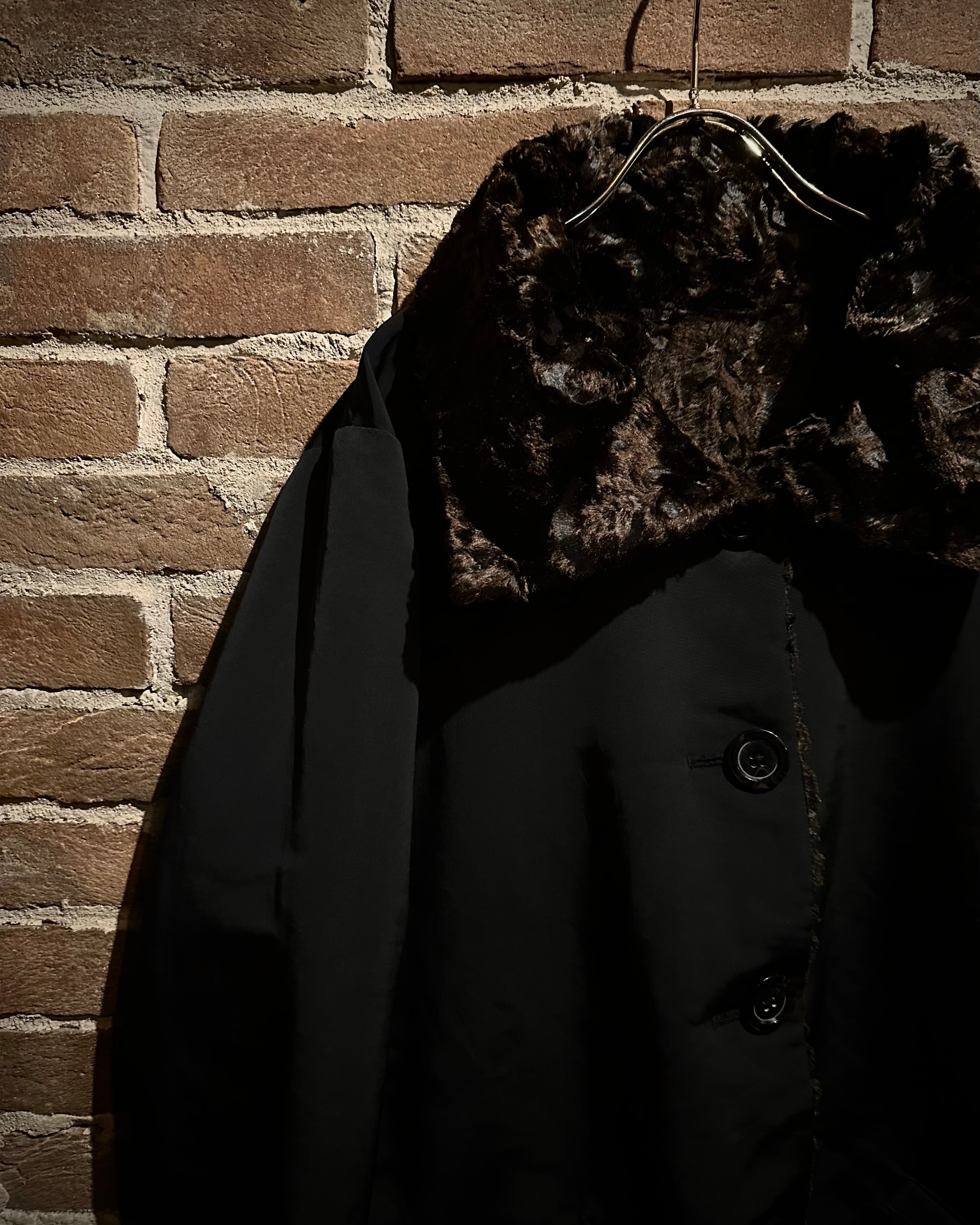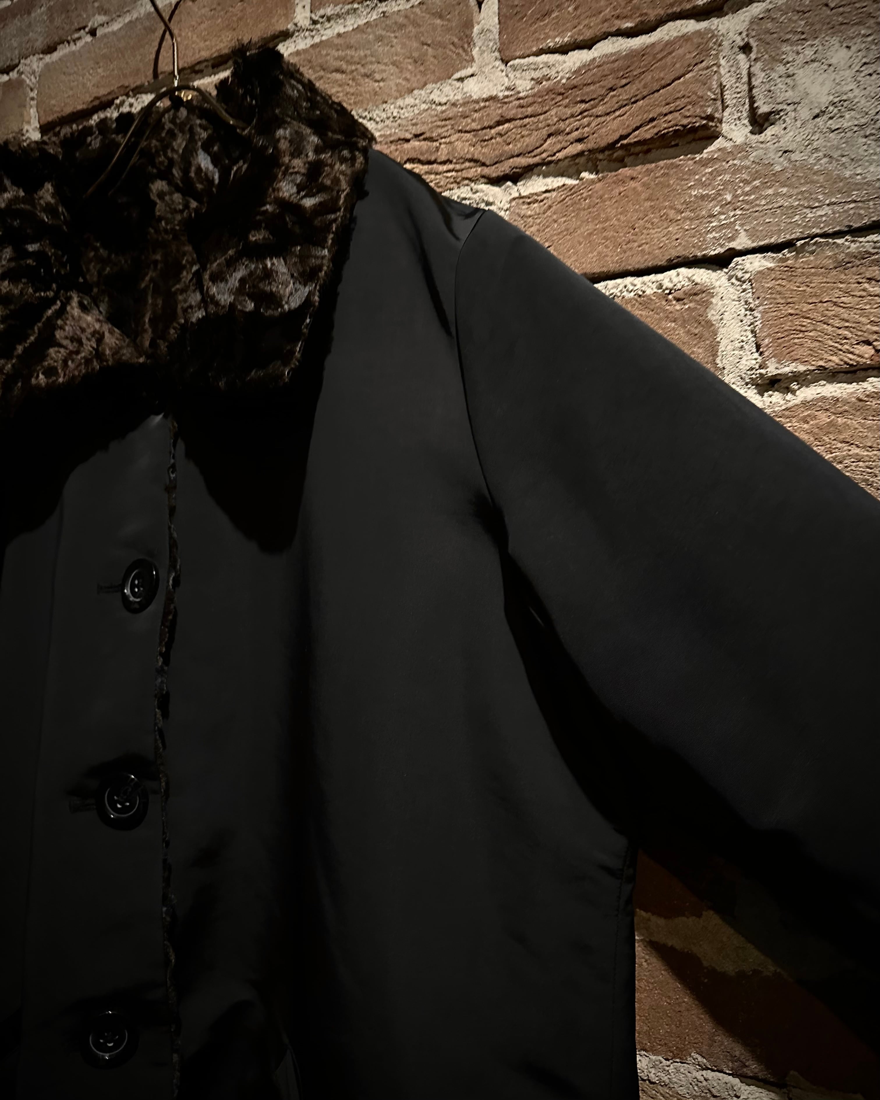 表面はマットな質感のポリコットンシェルを採用し、凛とした佇まい。裏面は一変、深いブラウンが艶めくフェイクファーで仕上げられた1着。