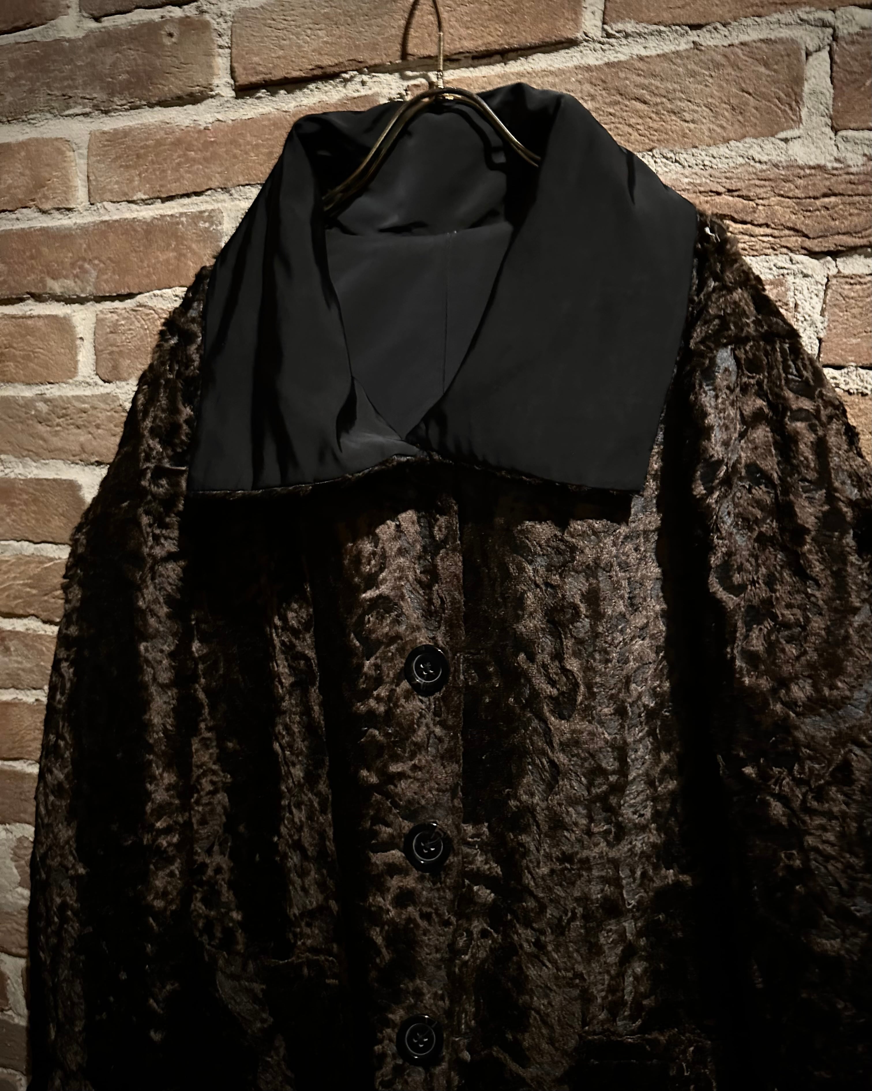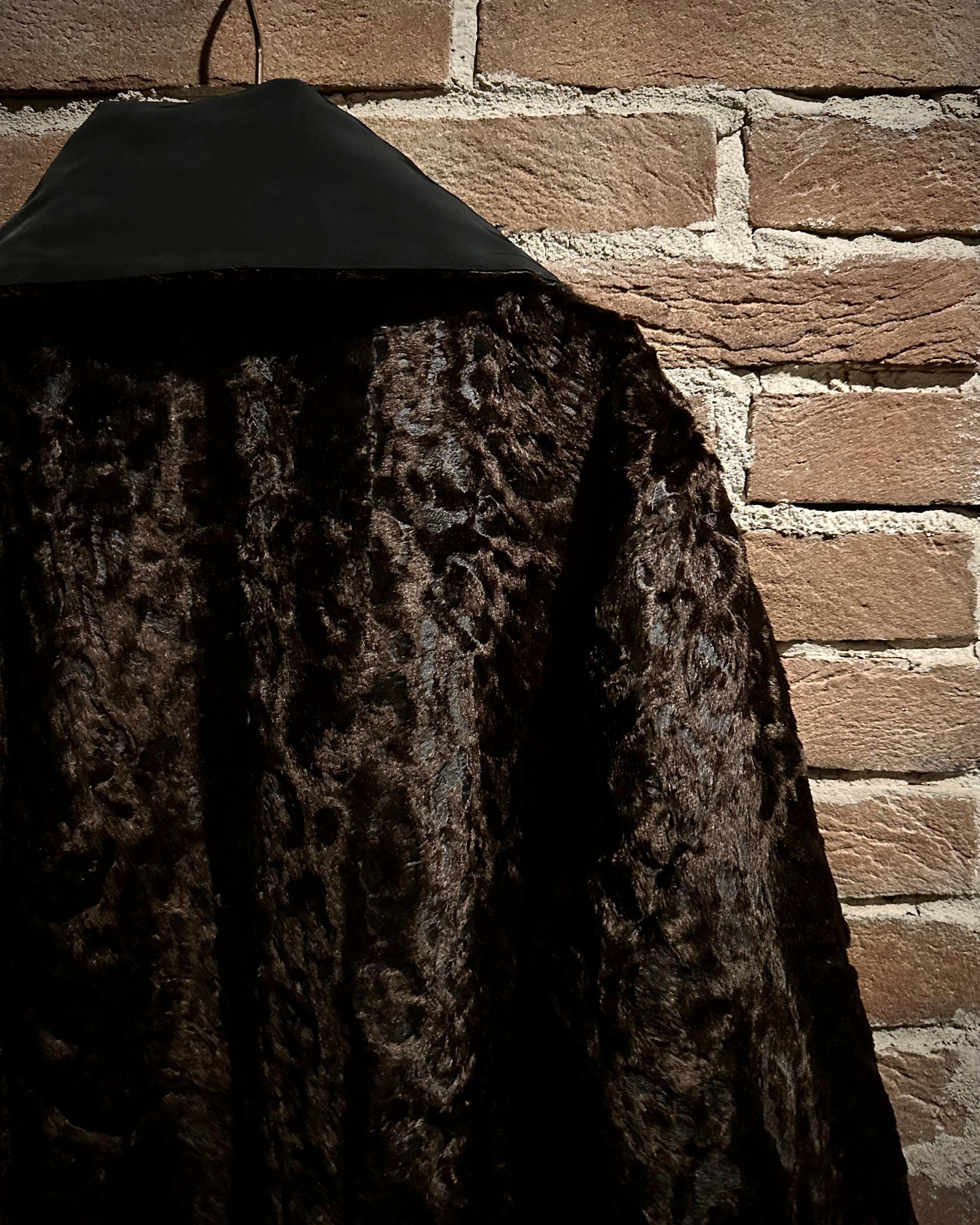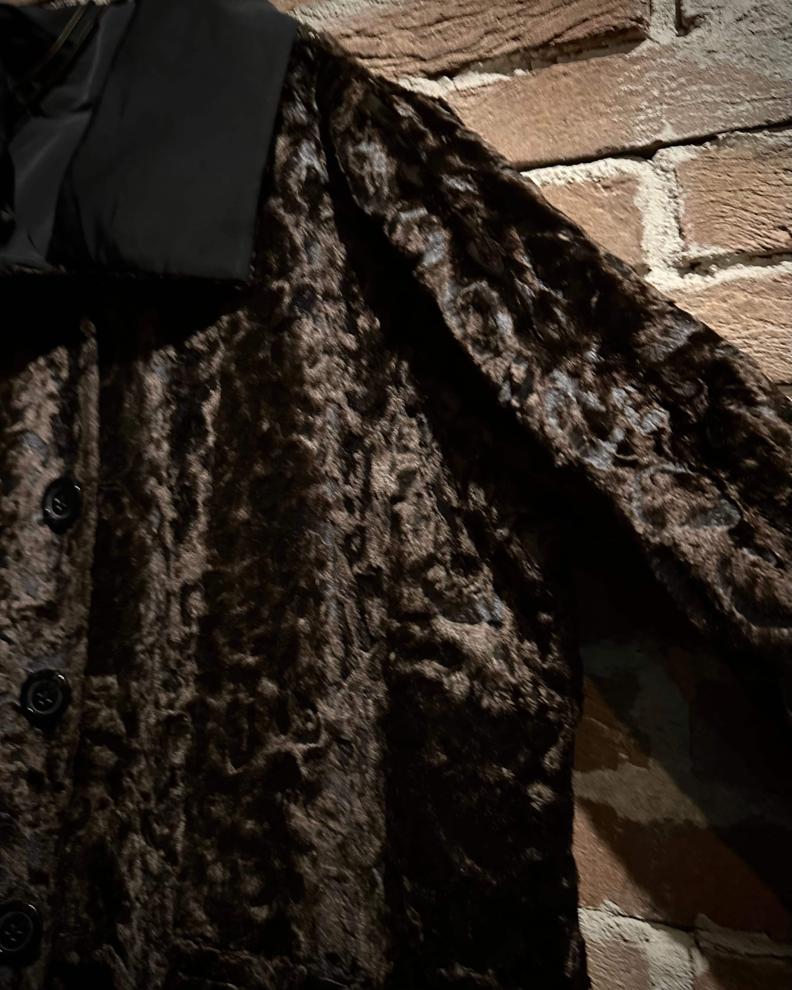 表面はマットな質感のポリコットンシェルを採用し、凛とした佇まい。裏面は一変、深いブラウンが艶めくフェイクファーで仕上げられた1着。