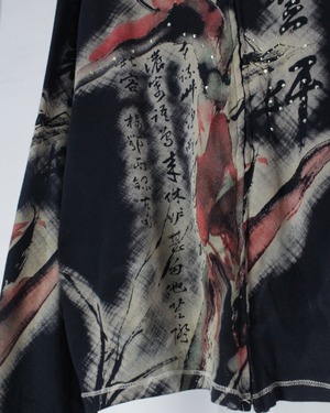 薄手のコットンボディに繊細なプリントを落とし込み、無数に施されたラインストーンが芸術性とストリートを絶妙に交差させていまふ。