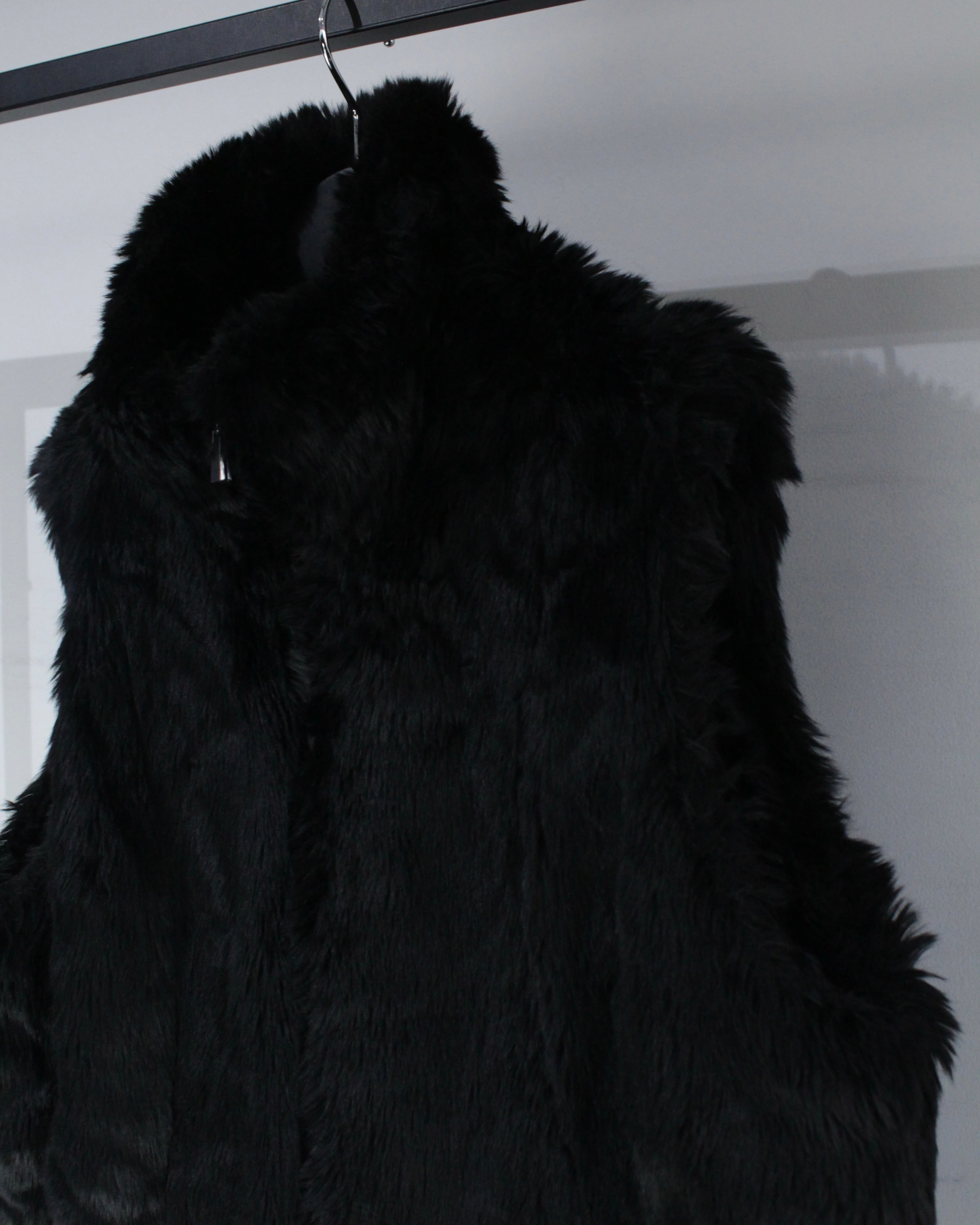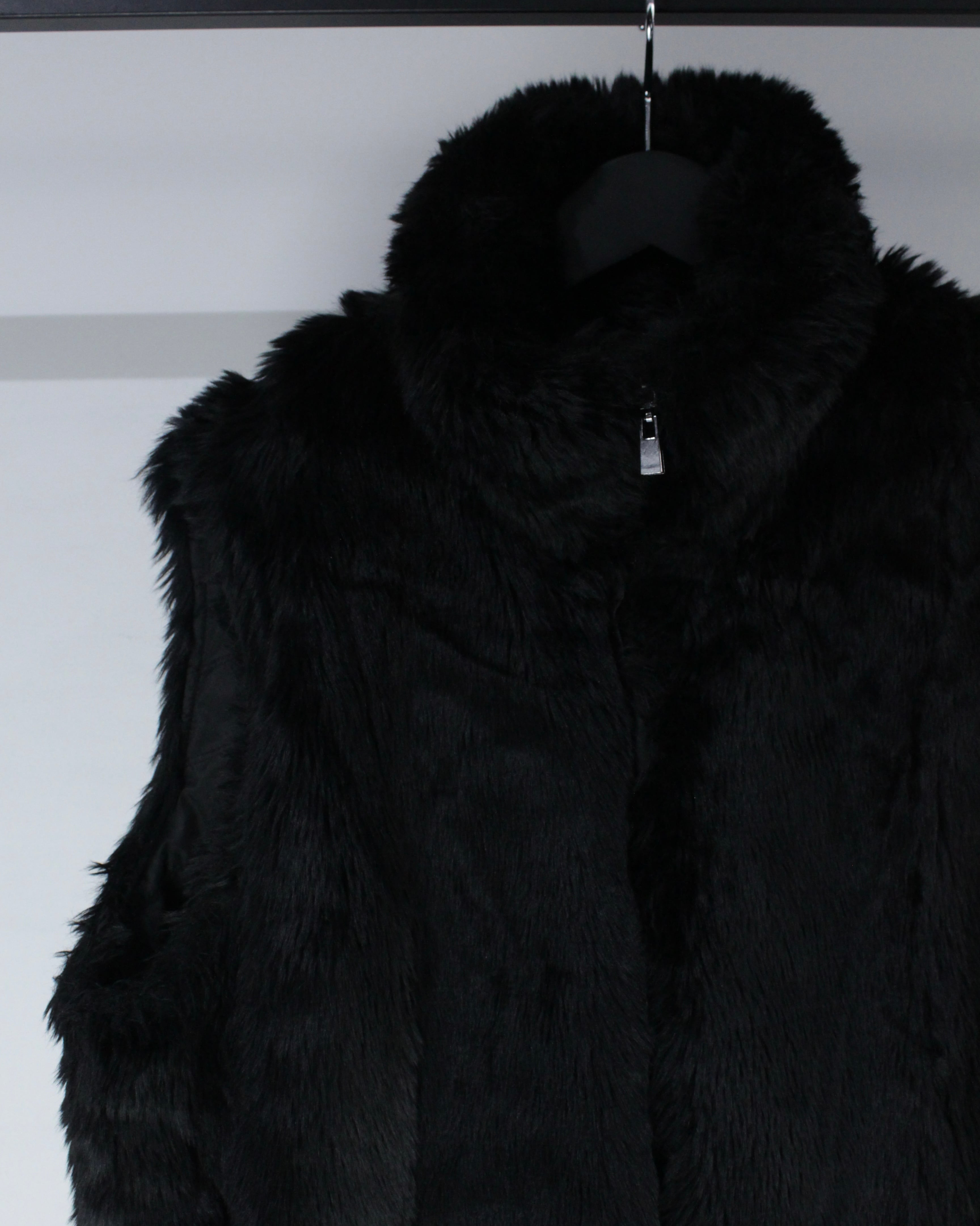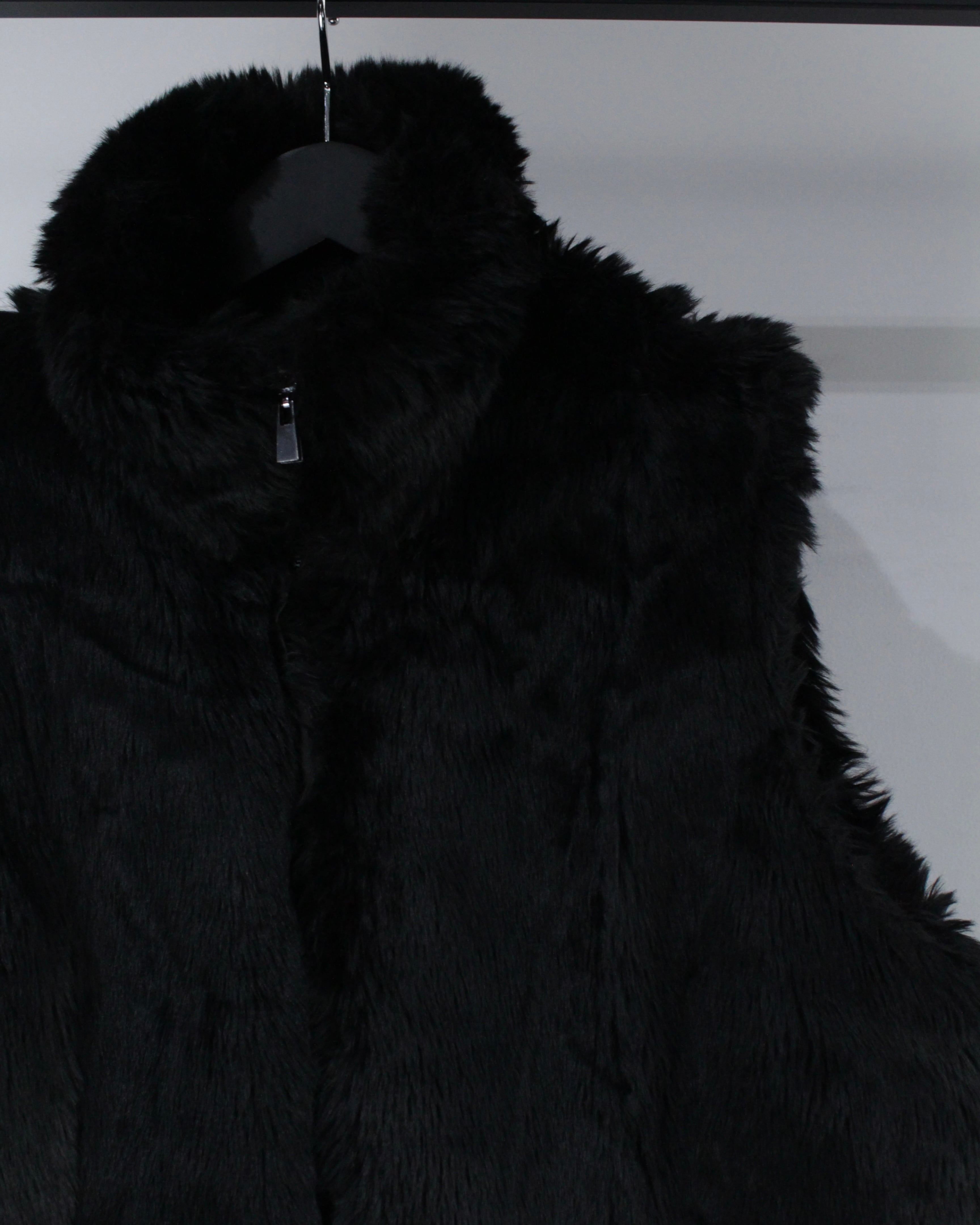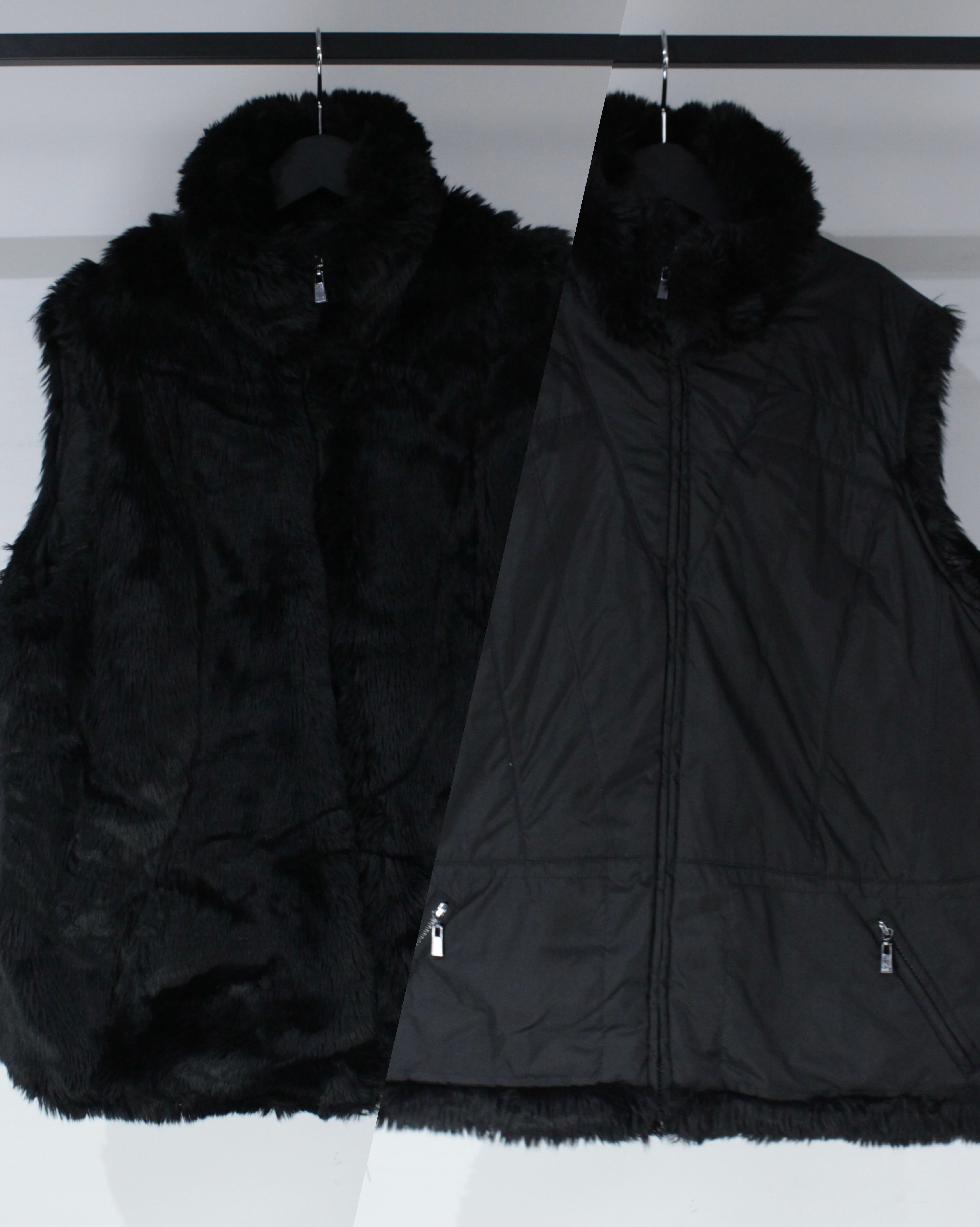 艶やかな光沢と、手触りまでもが上質なフェイクファーを贅沢に使用したジップアップベストをご紹介いたします。