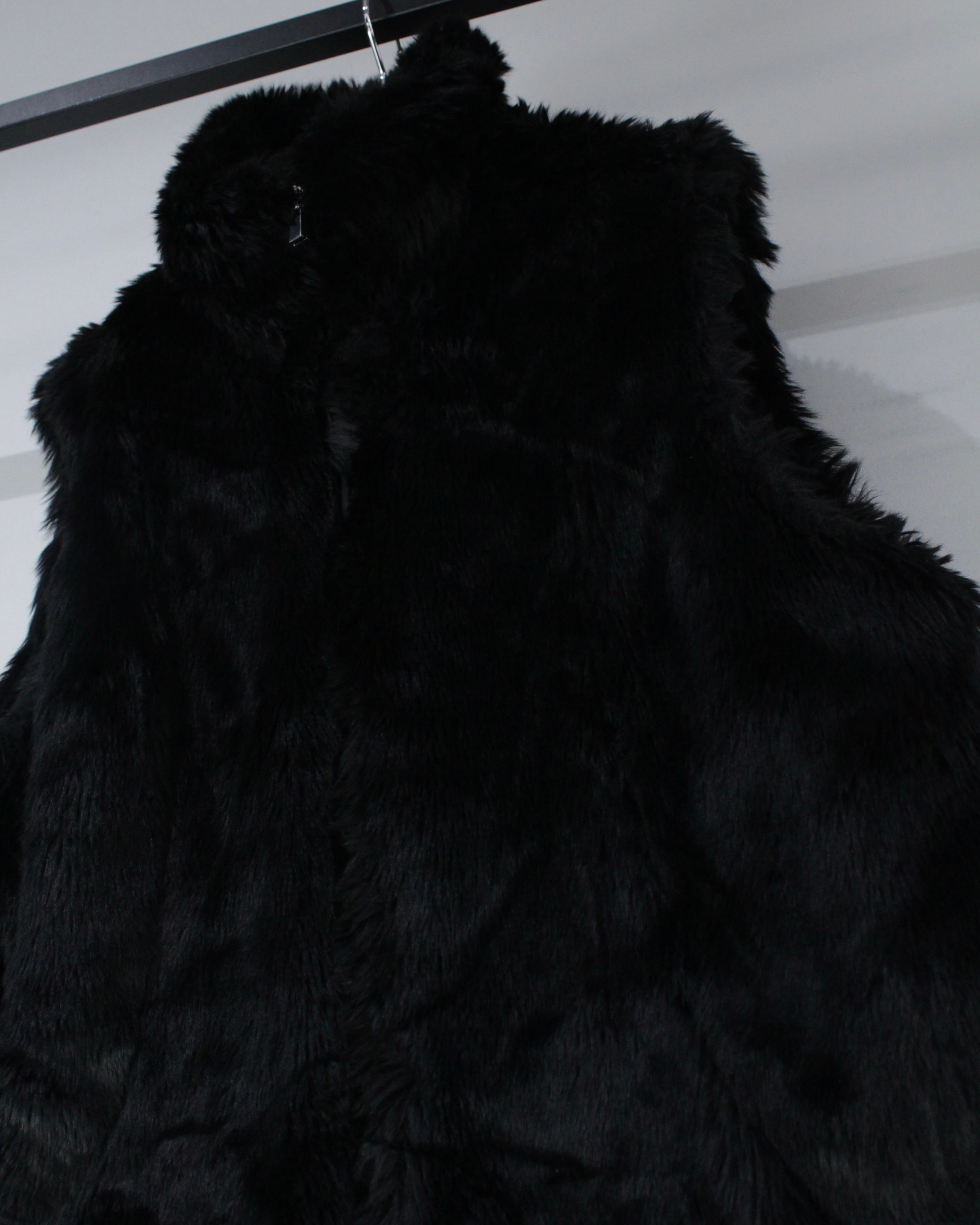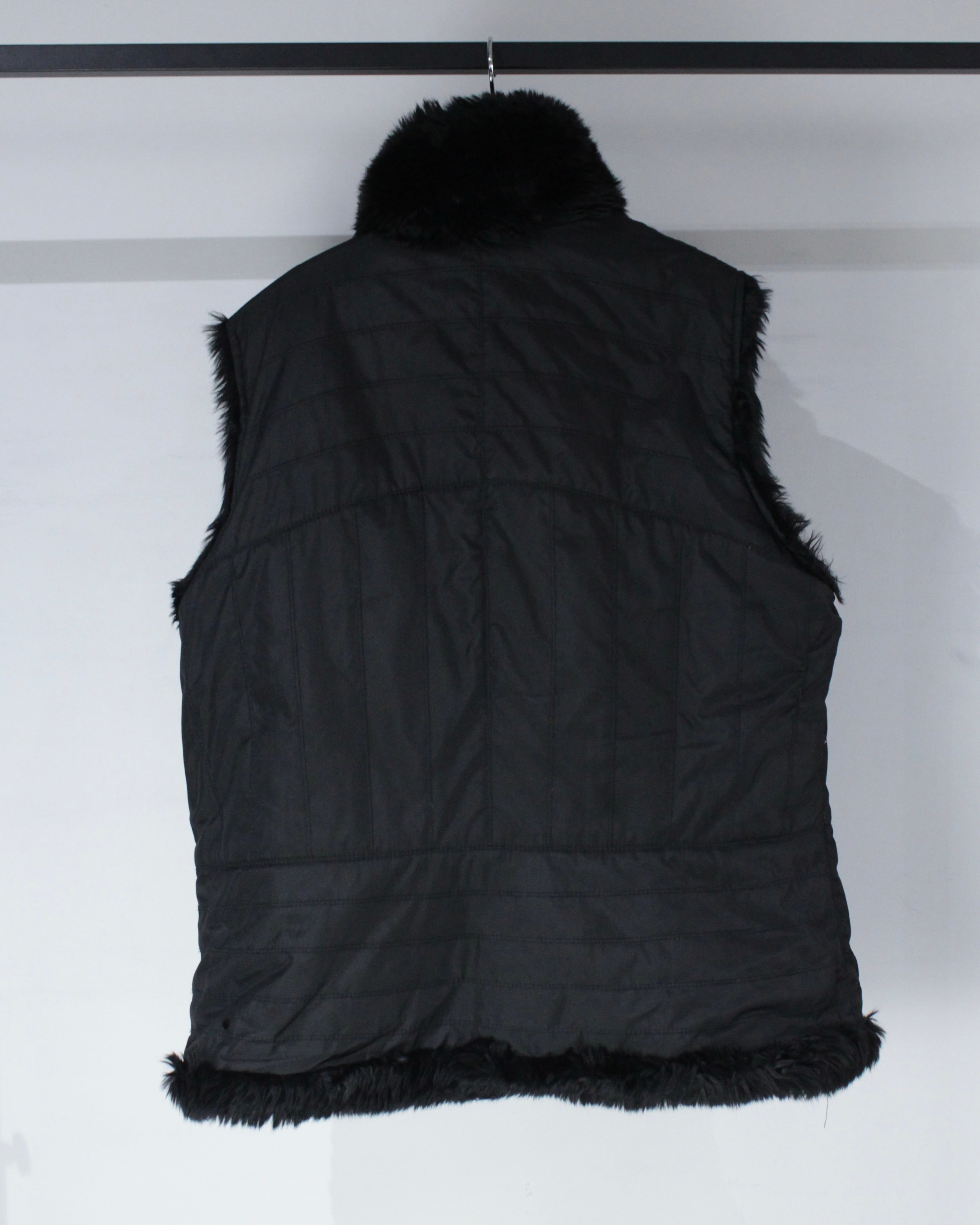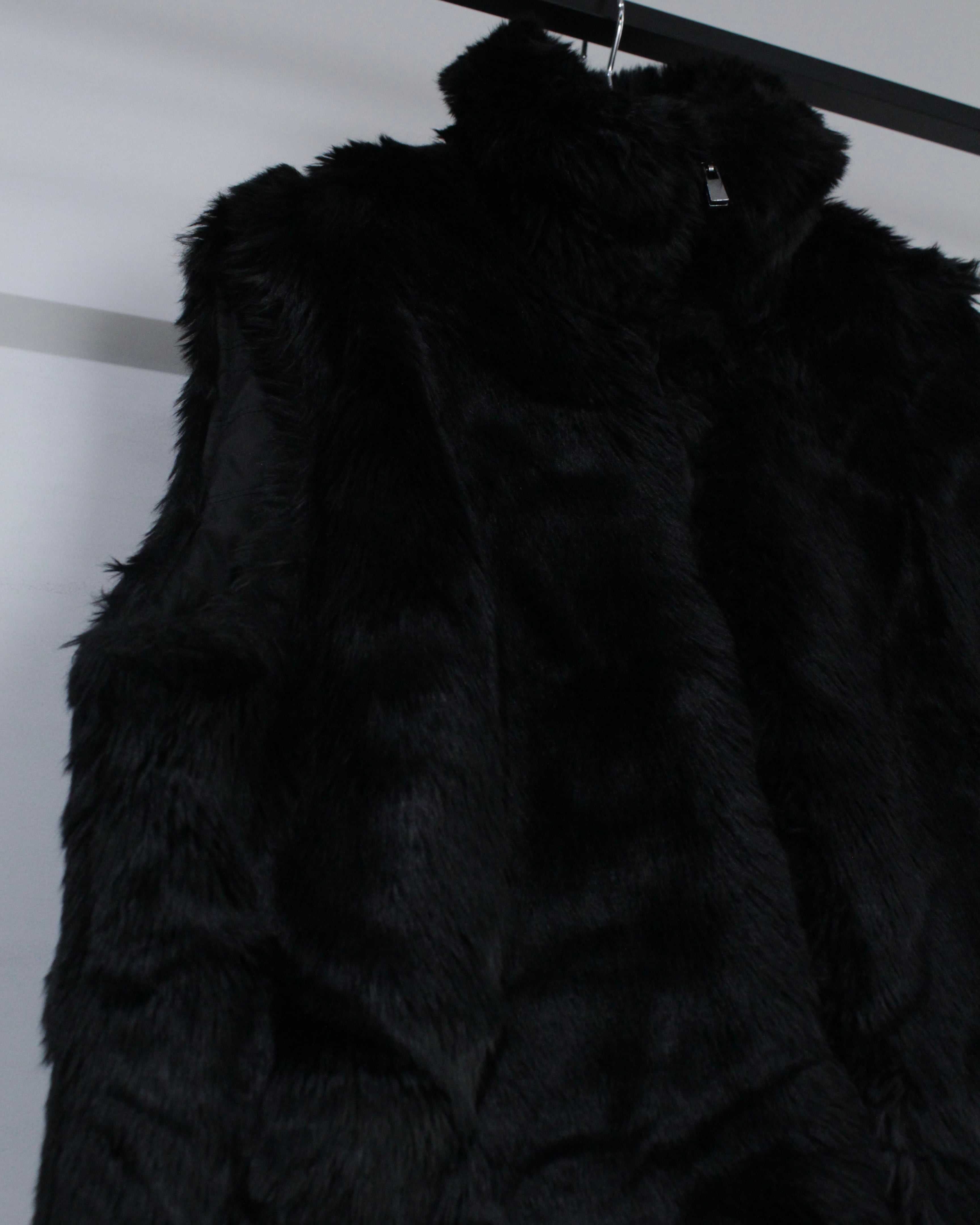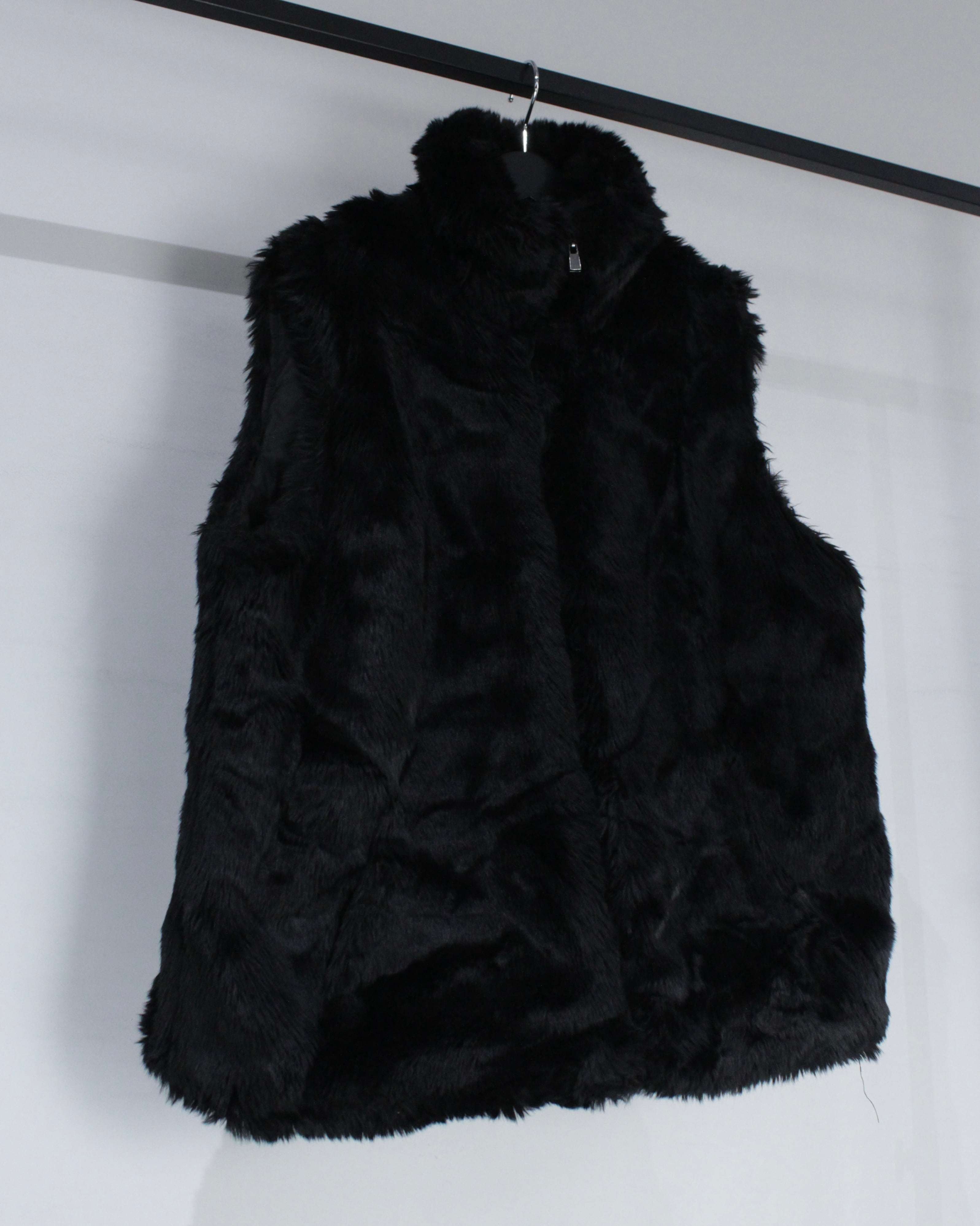 艶やかな光沢と、手触りまでもが上質なフェイクファーを贅沢に使用したジップアップベストをご紹介いたします。
