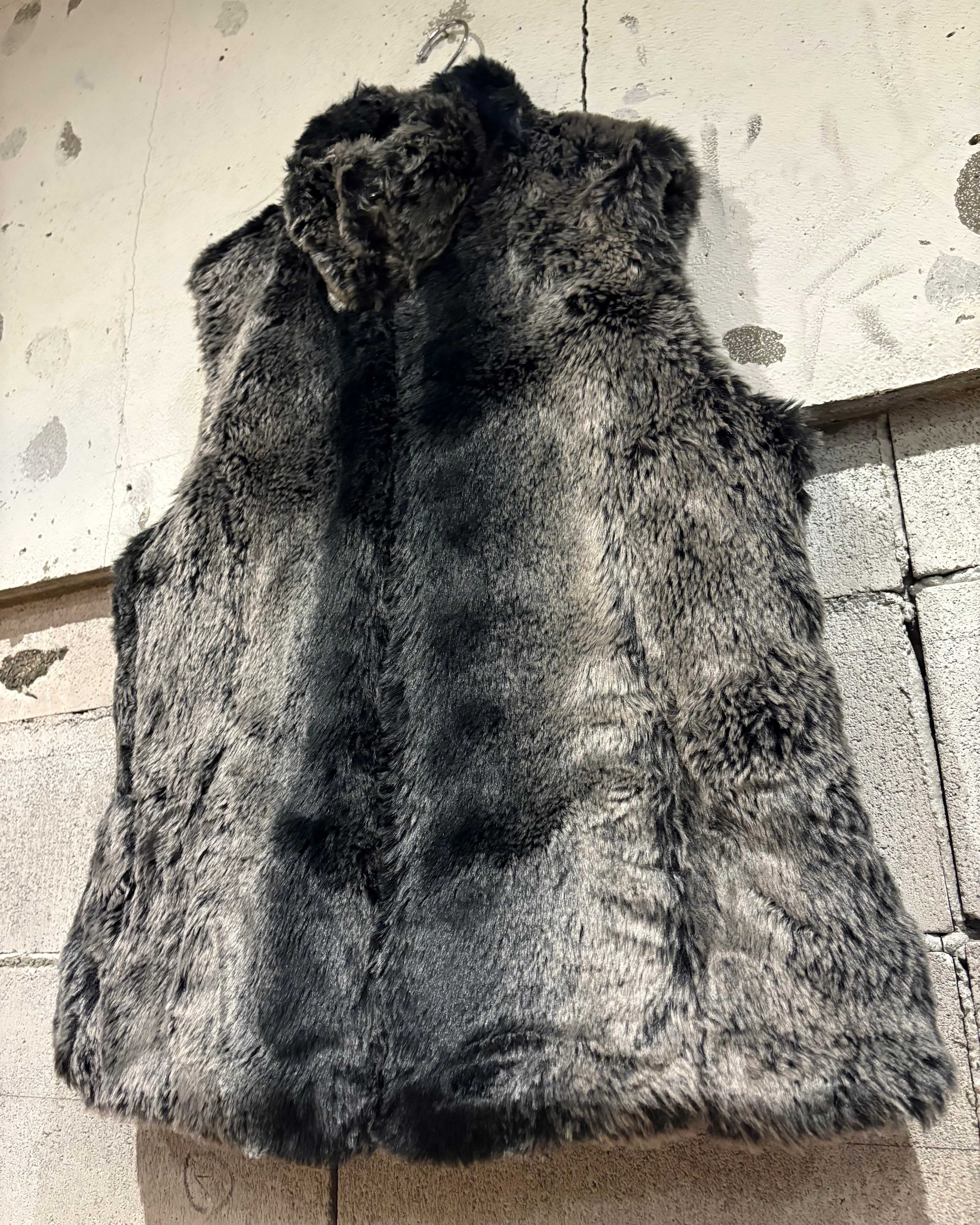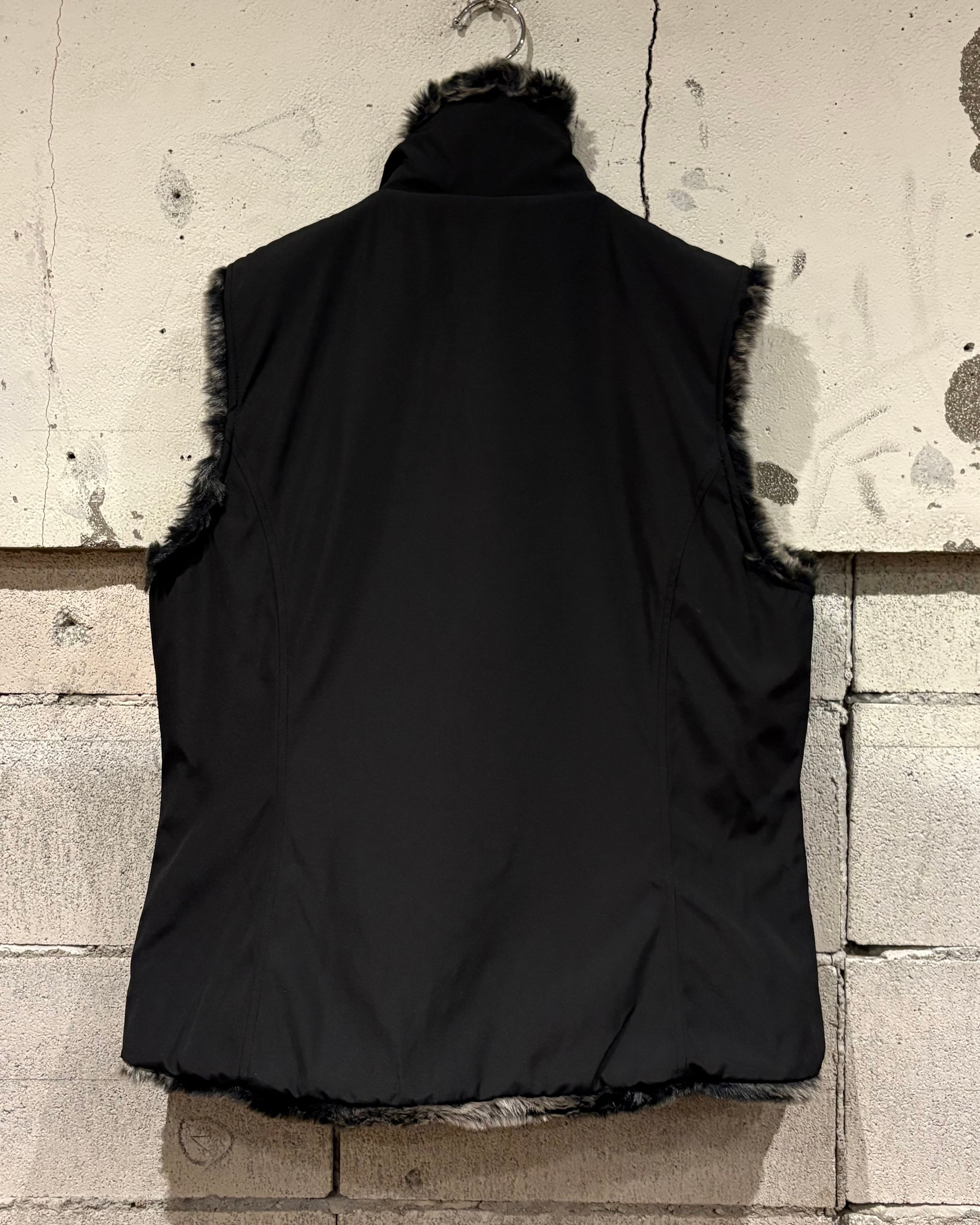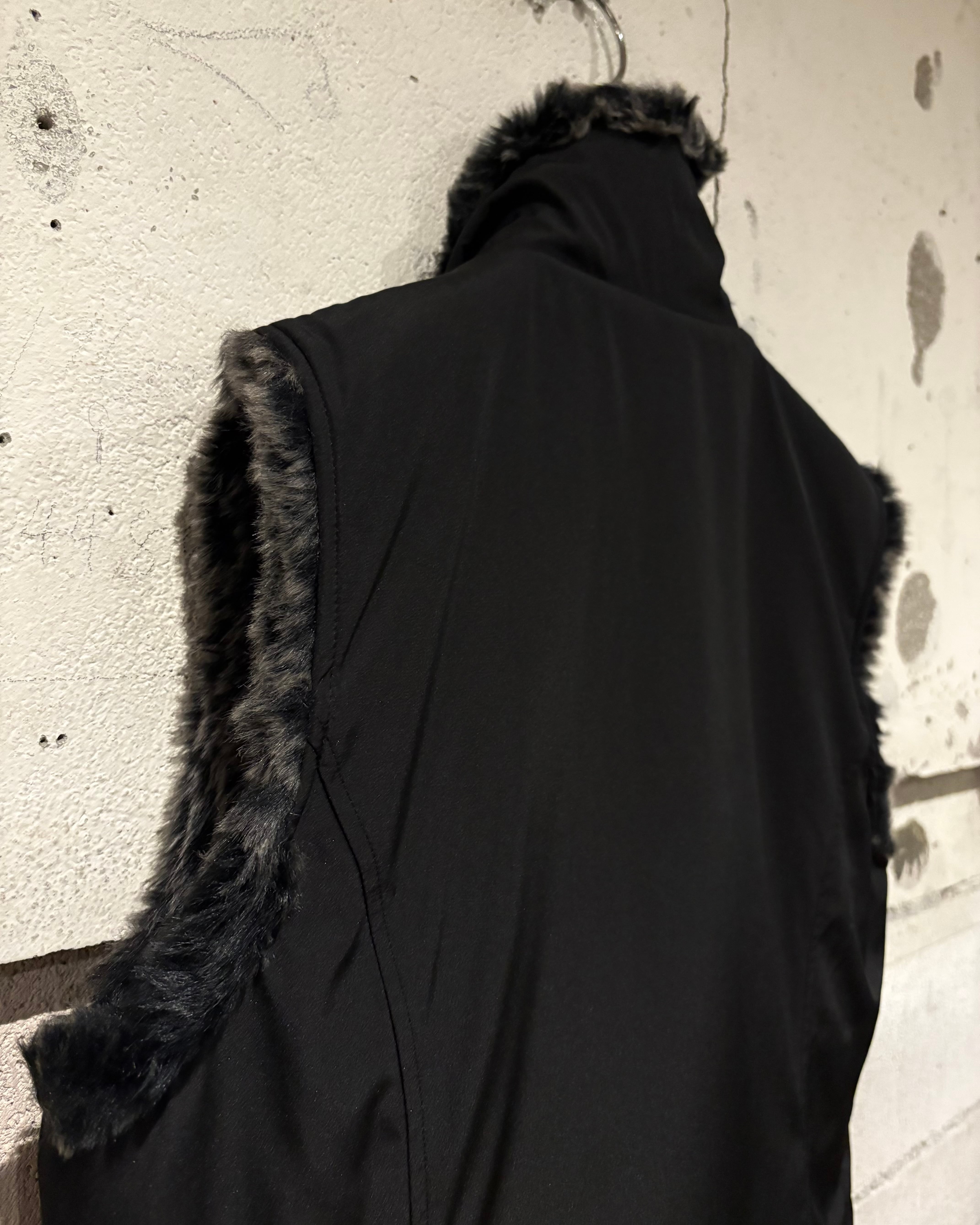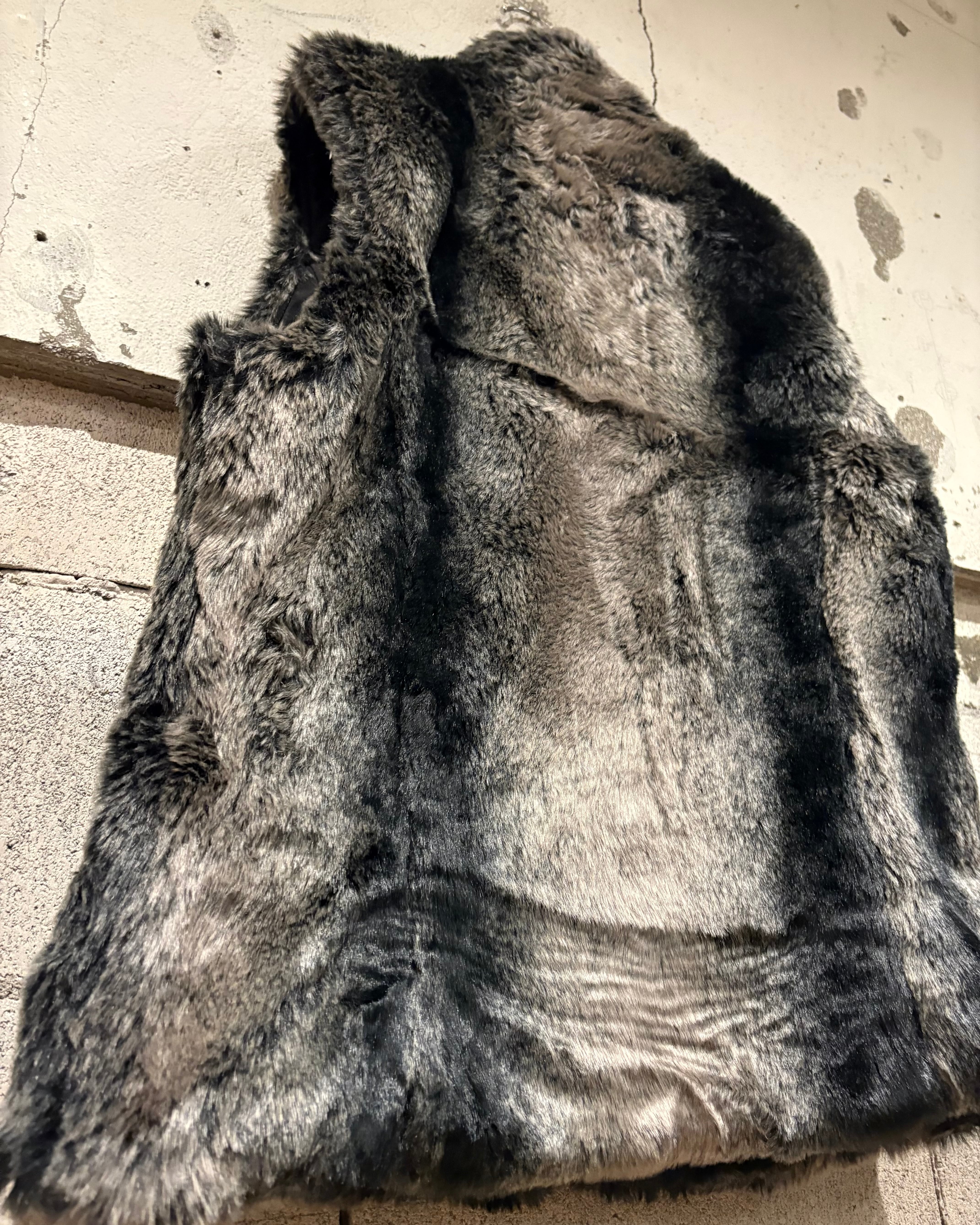 深みのあるグラデーションが美しいチャコールトーンでまとめた、リバーシブル仕様のフェイクファーベスト。