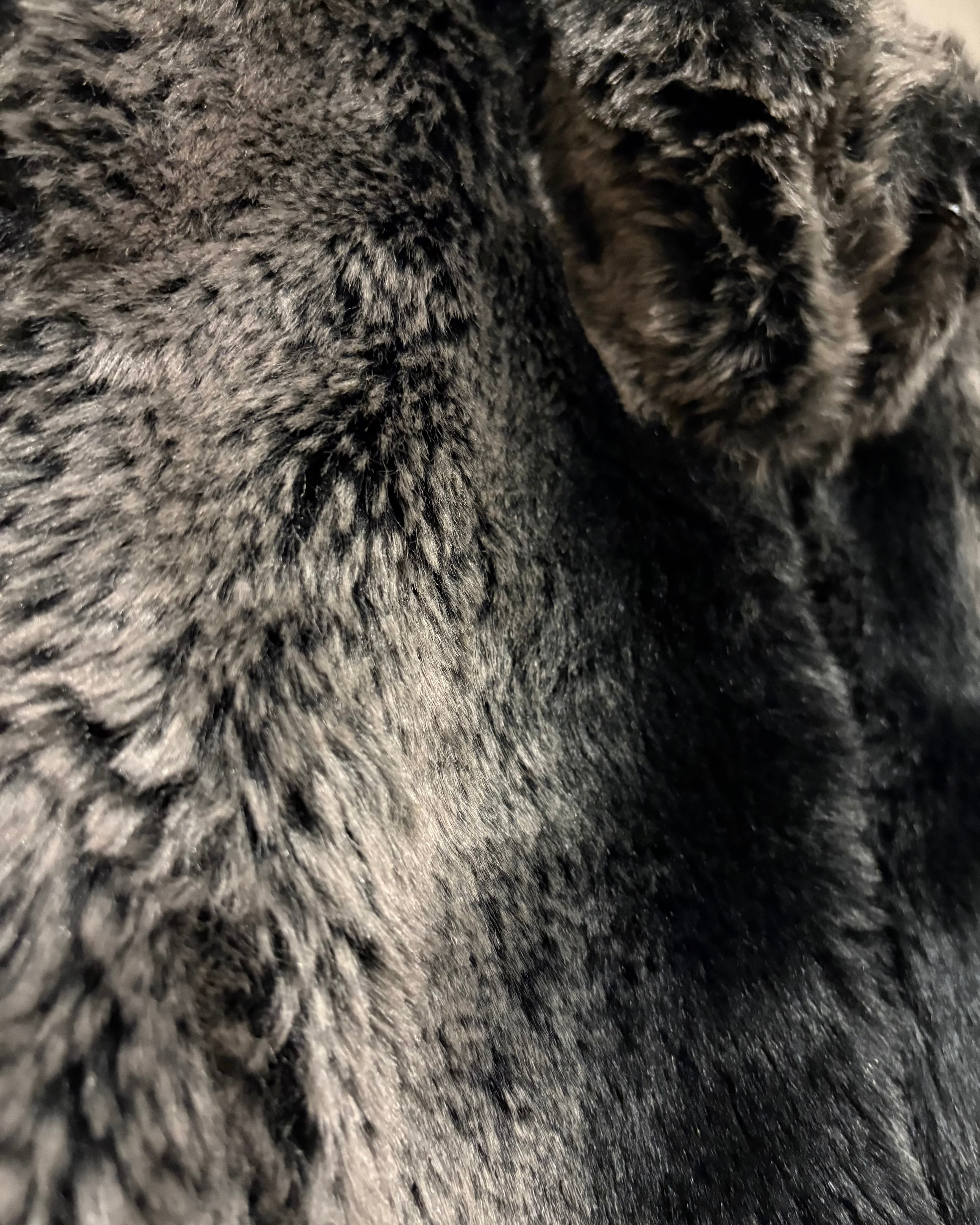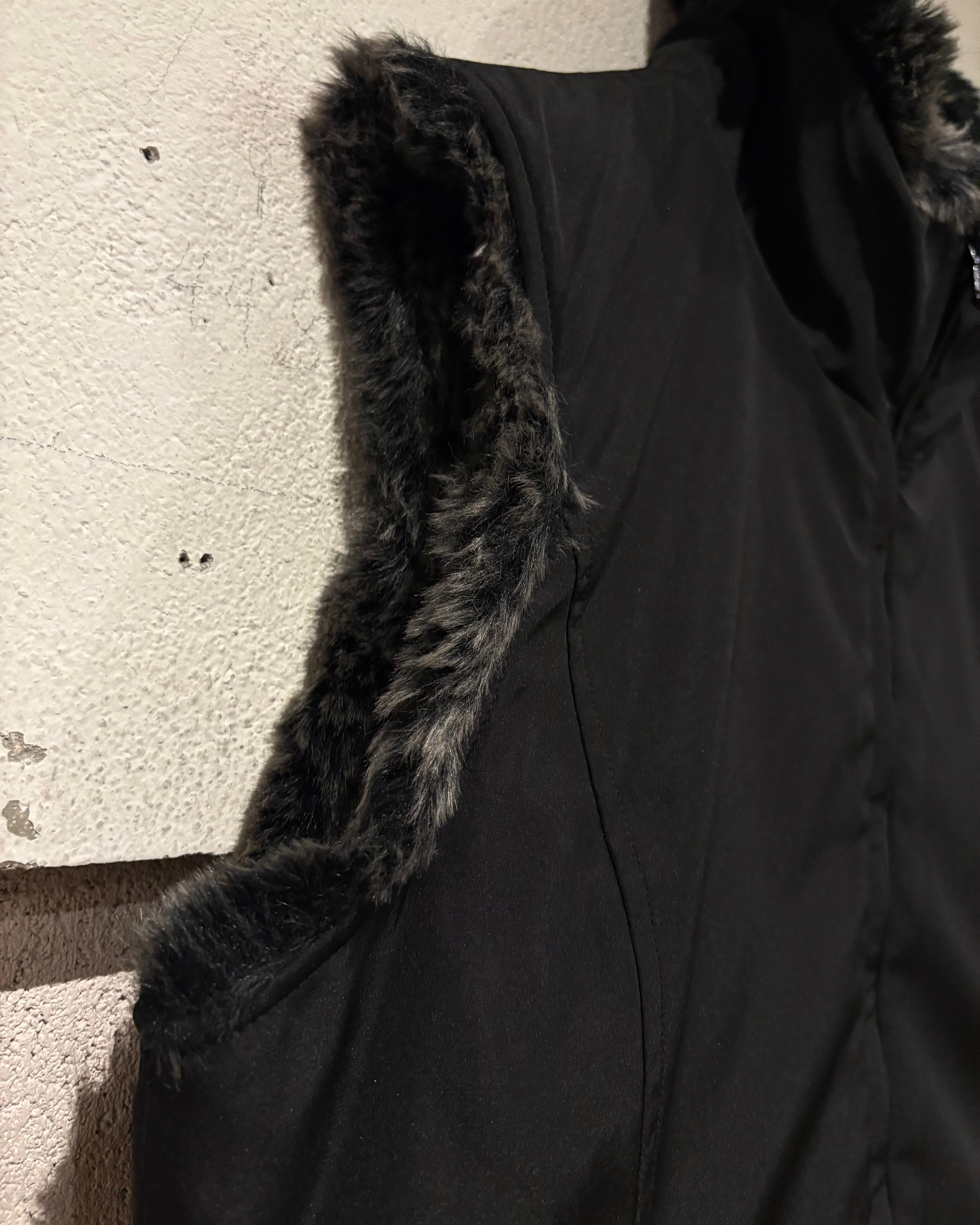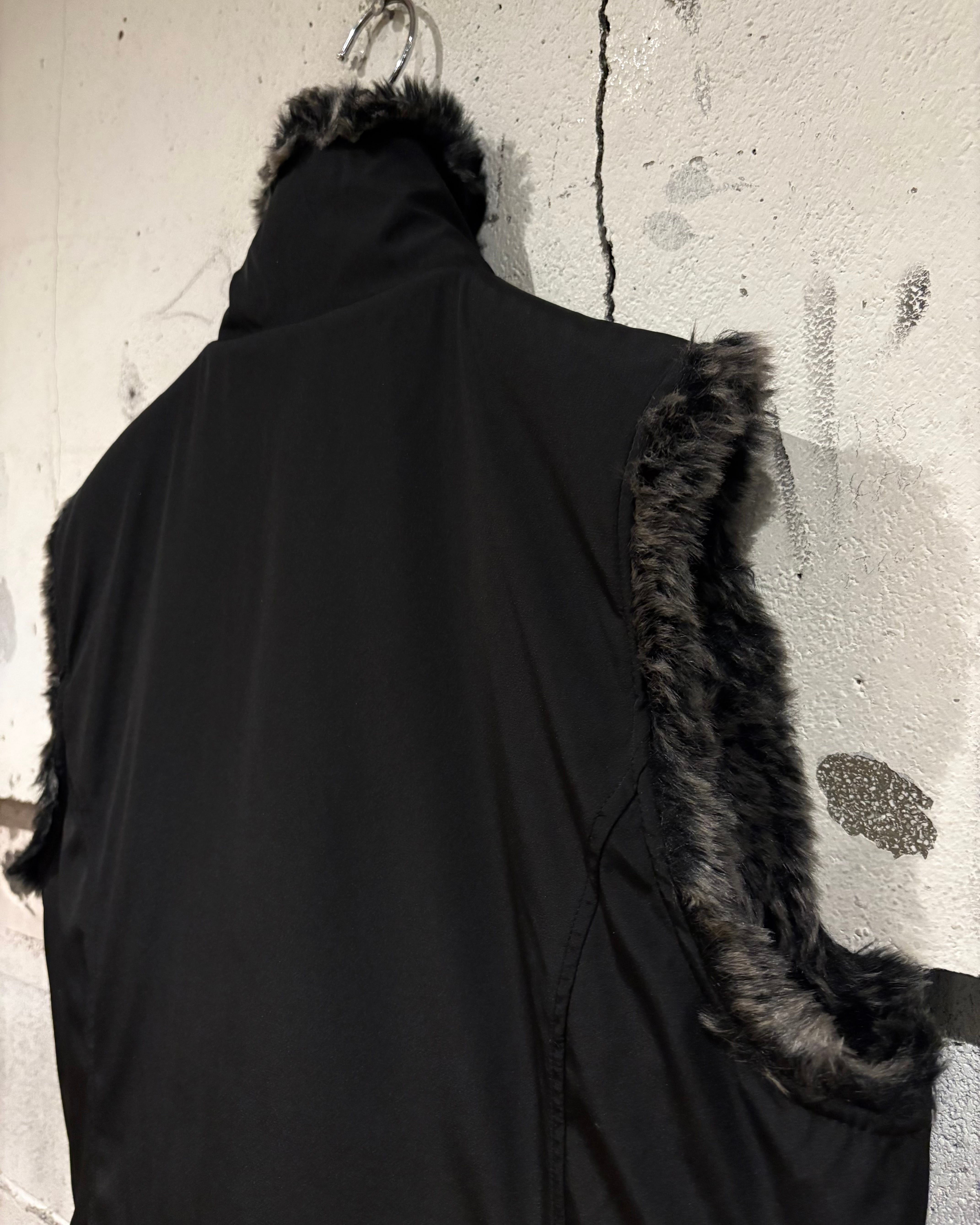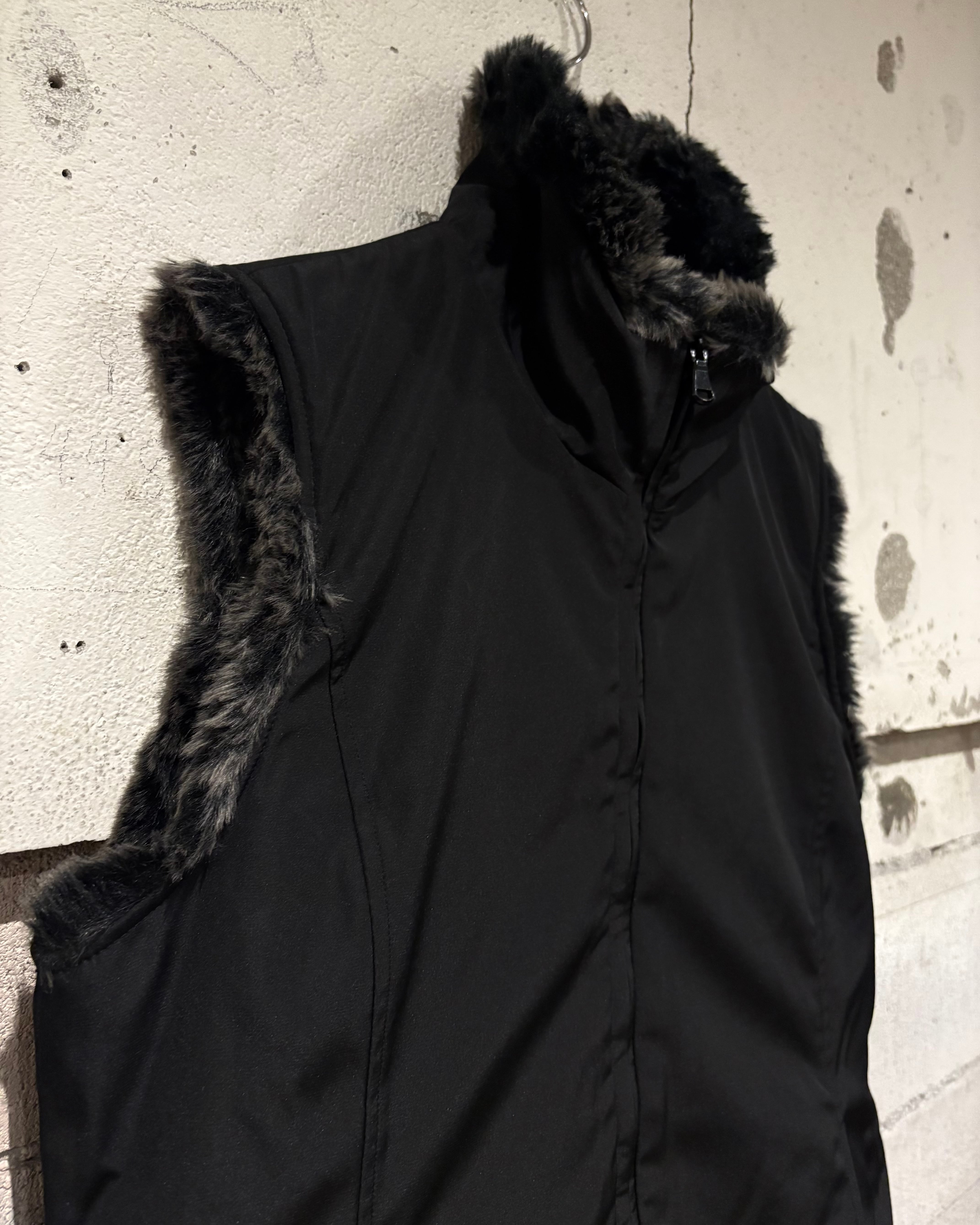 深みのあるグラデーションが美しいチャコールトーンでまとめた、リバーシブル仕様のフェイクファーベスト。
