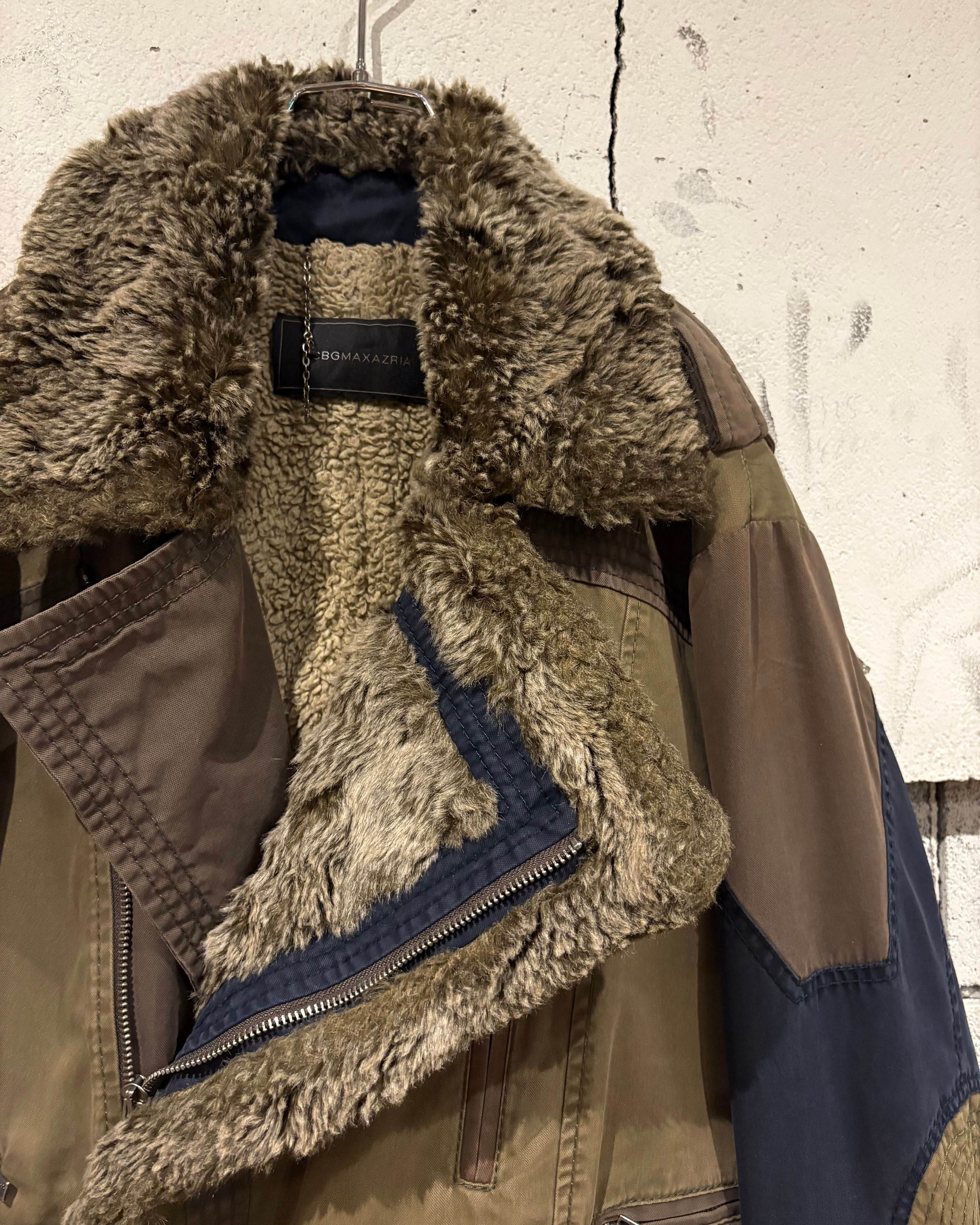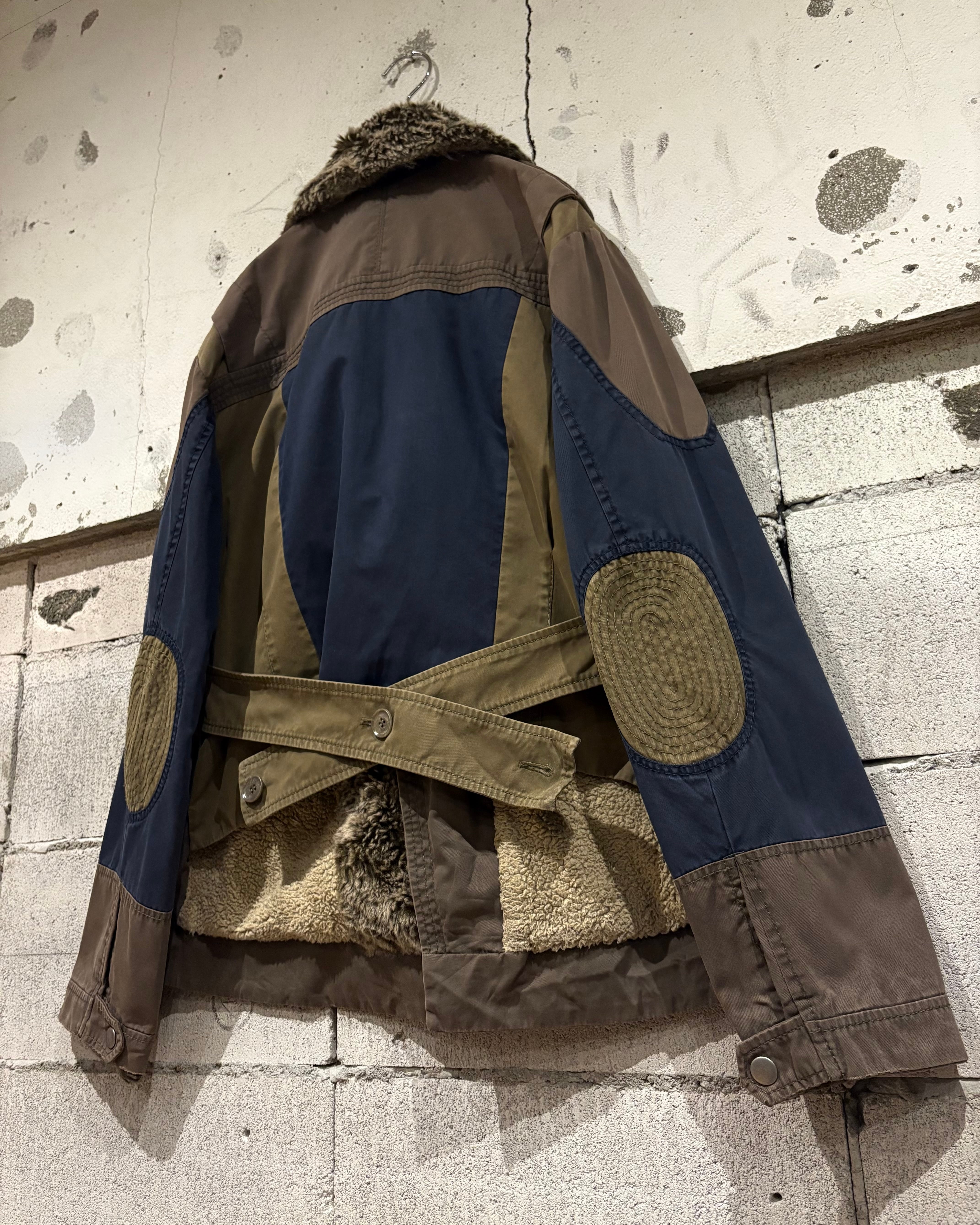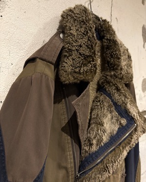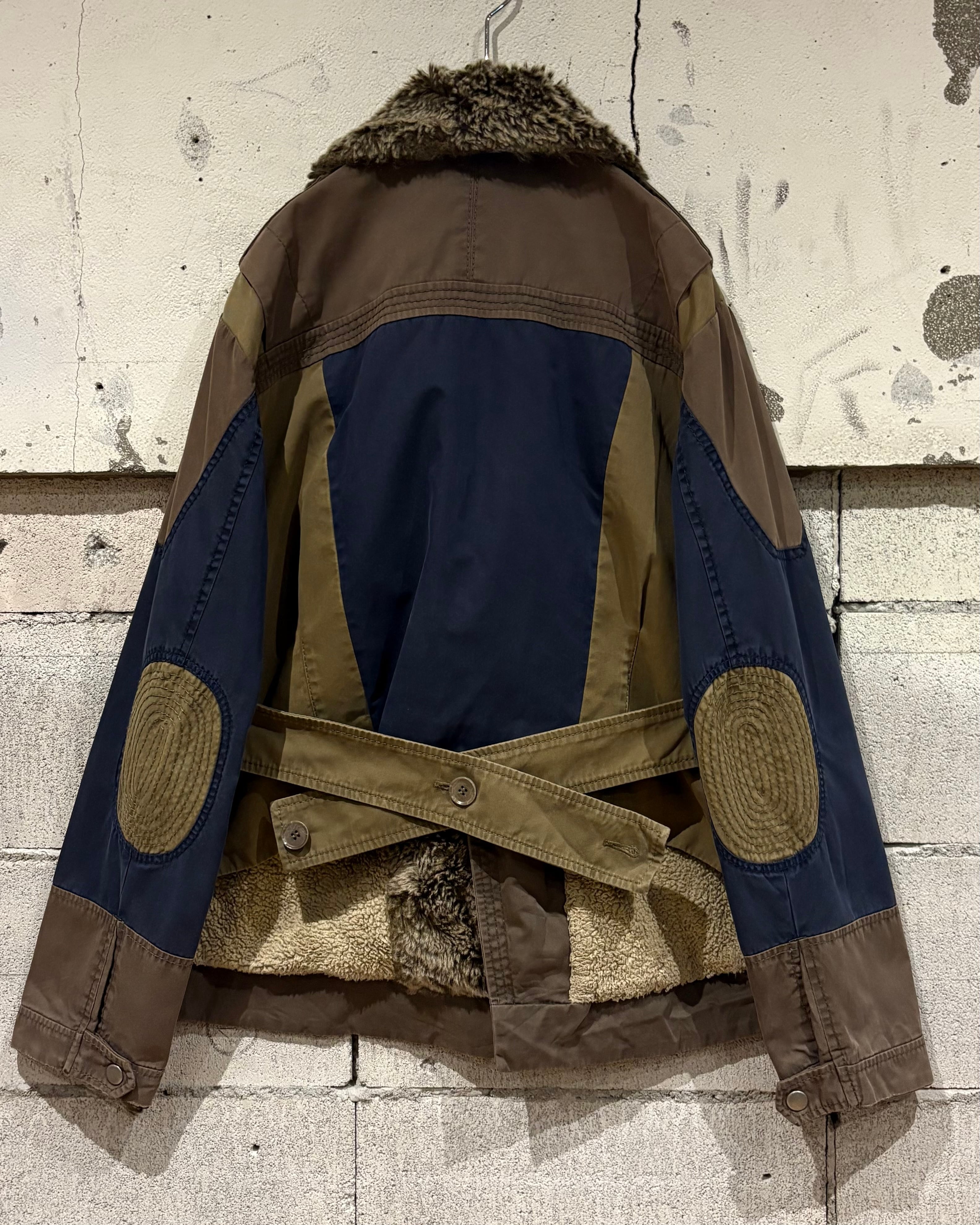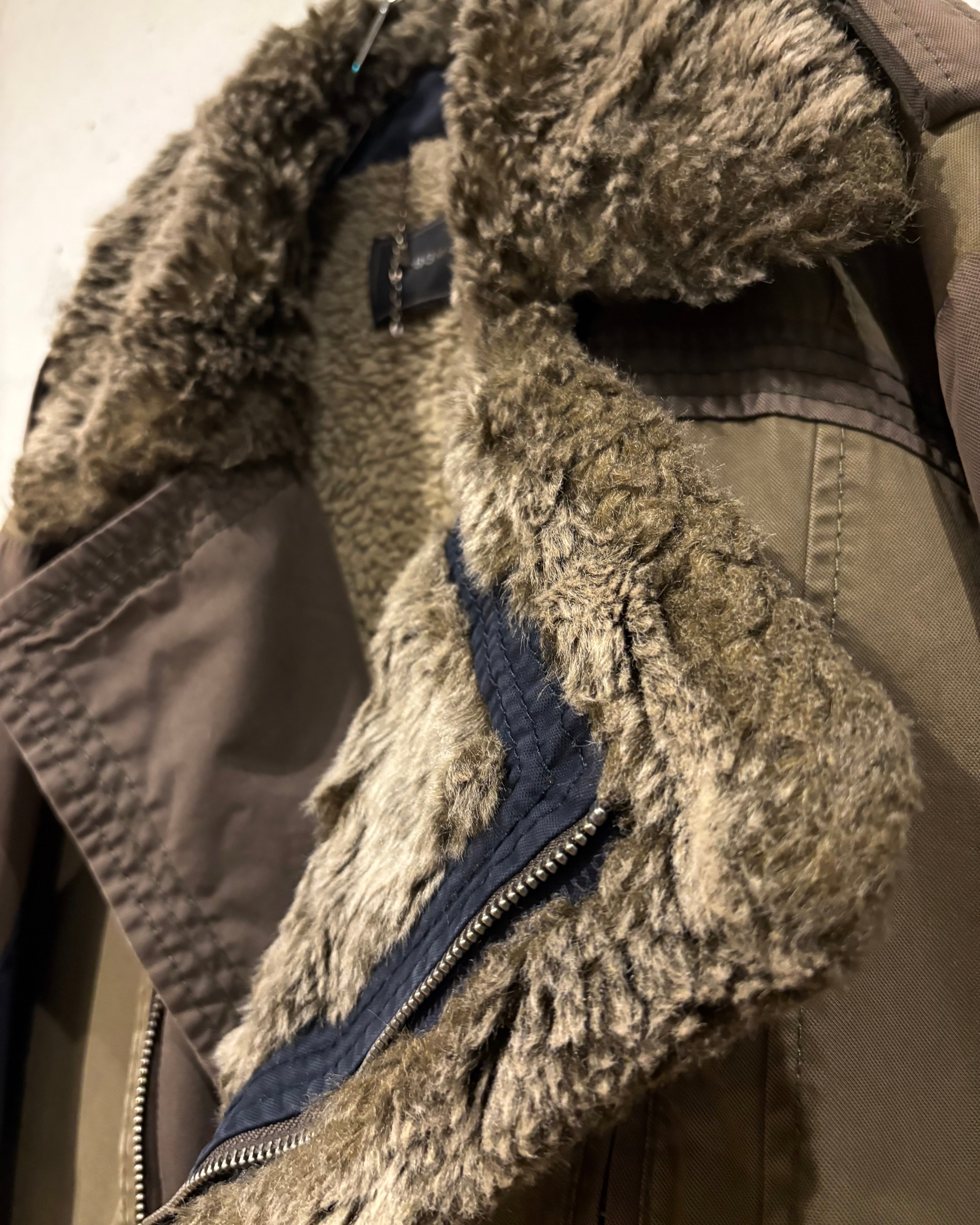 ダブルライダース特有の武骨さに、カラー切り替えのモード感、そしてボアの存在感が合わさった唯一無二の1着。冬のスタイリングの主役として間違いなく活躍する逸品です。