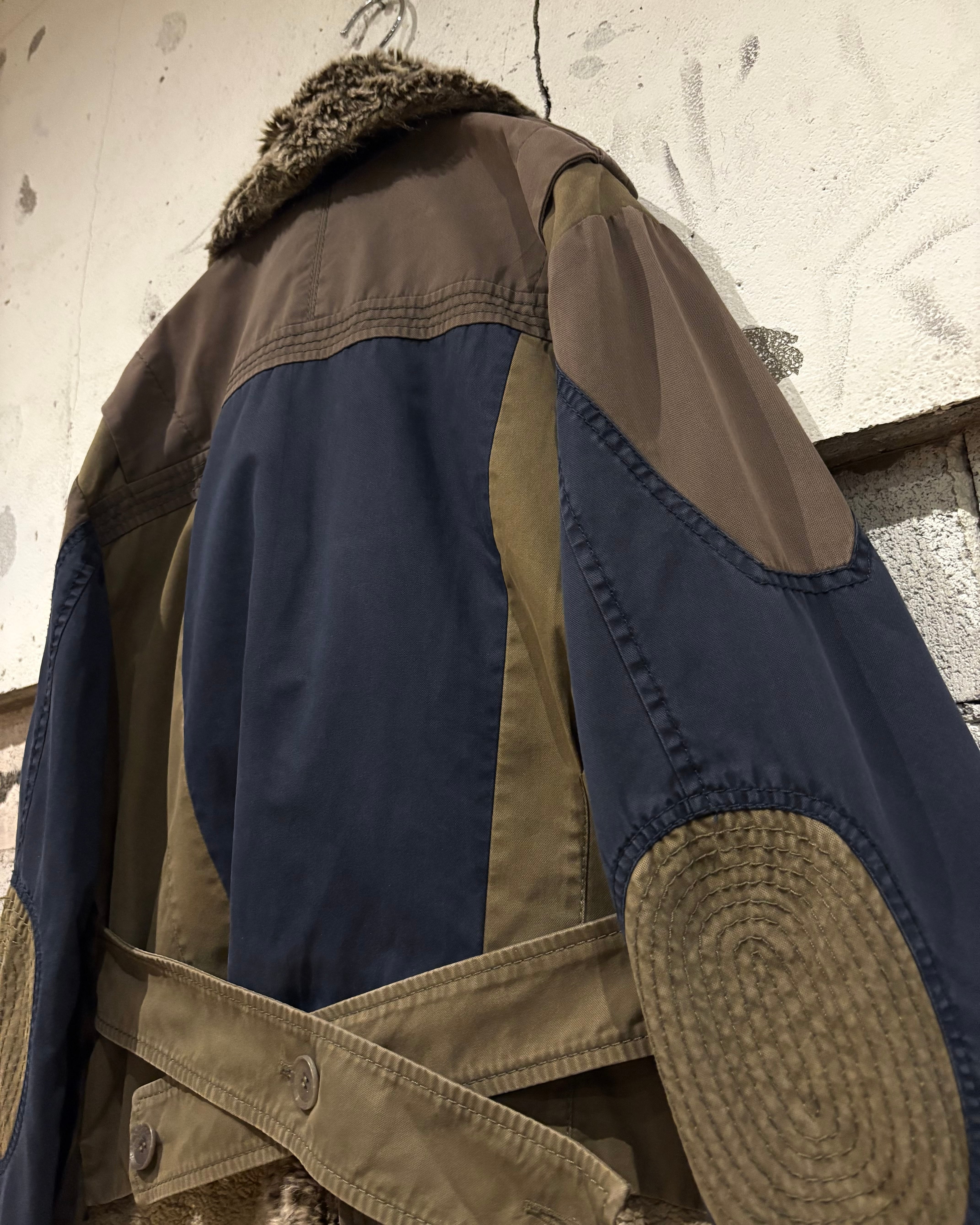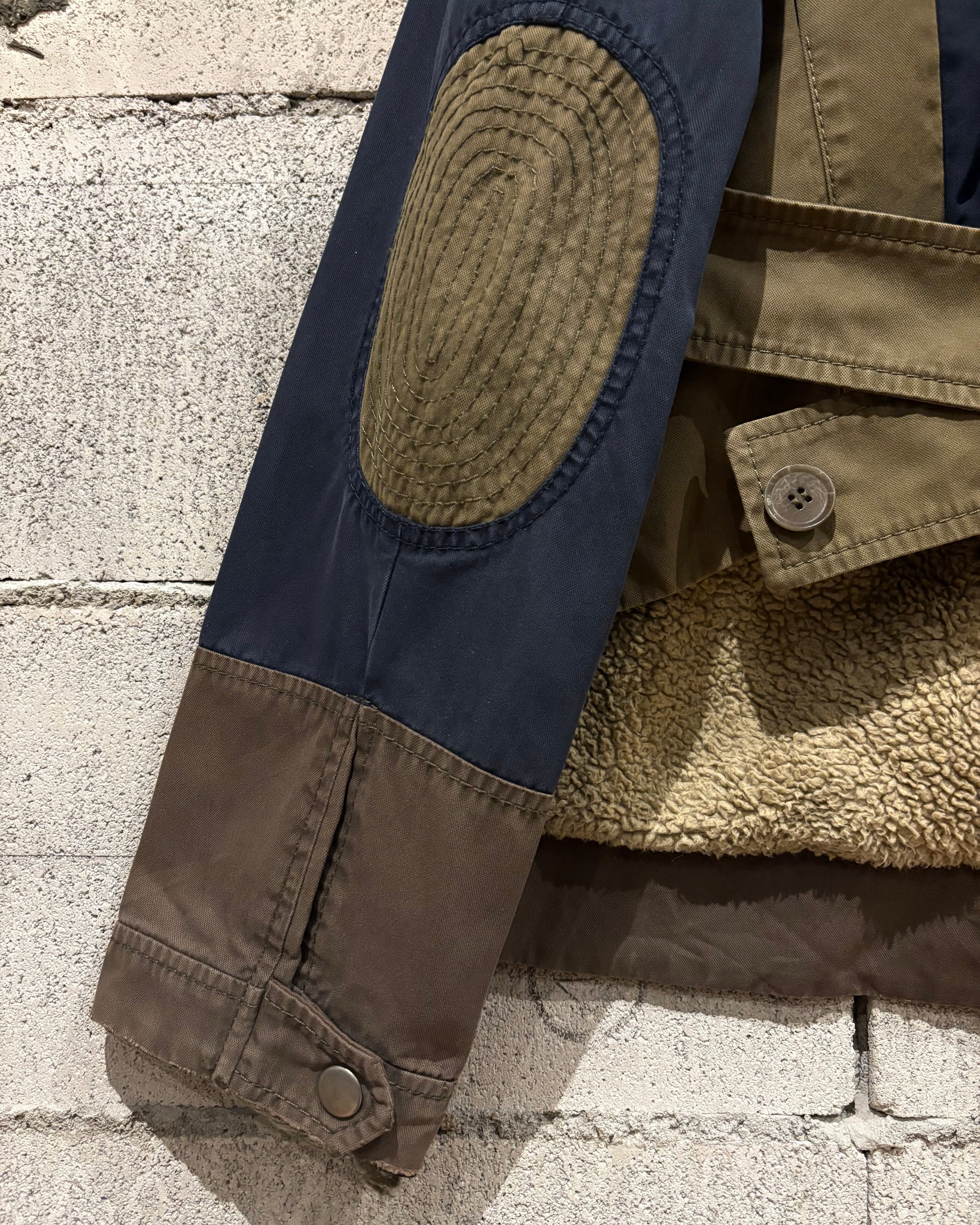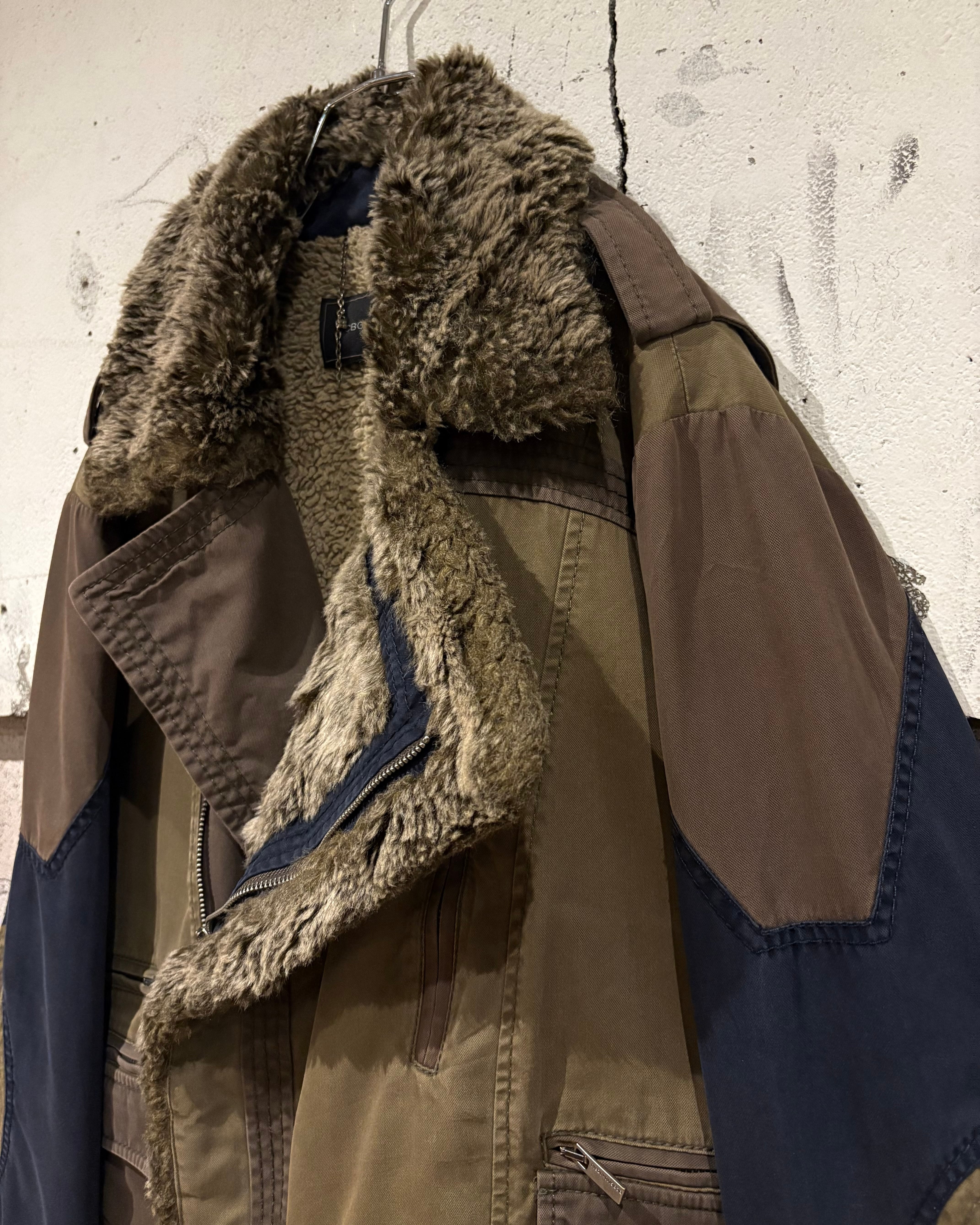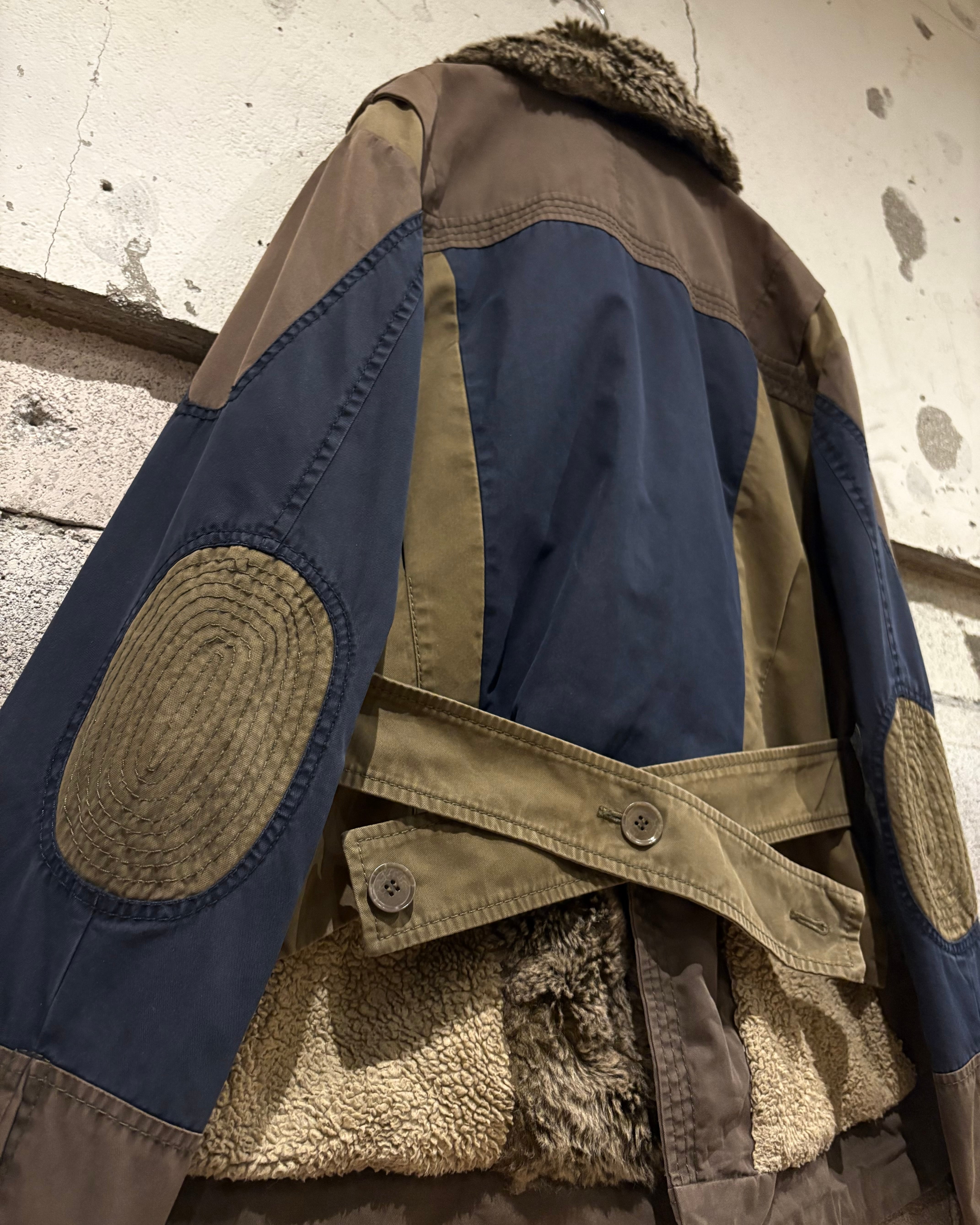 ダブルライダース特有の武骨さに、カラー切り替えのモード感、そしてボアの存在感が合わさった唯一無二の1着。冬のスタイリングの主役として間違いなく活躍する逸品です。