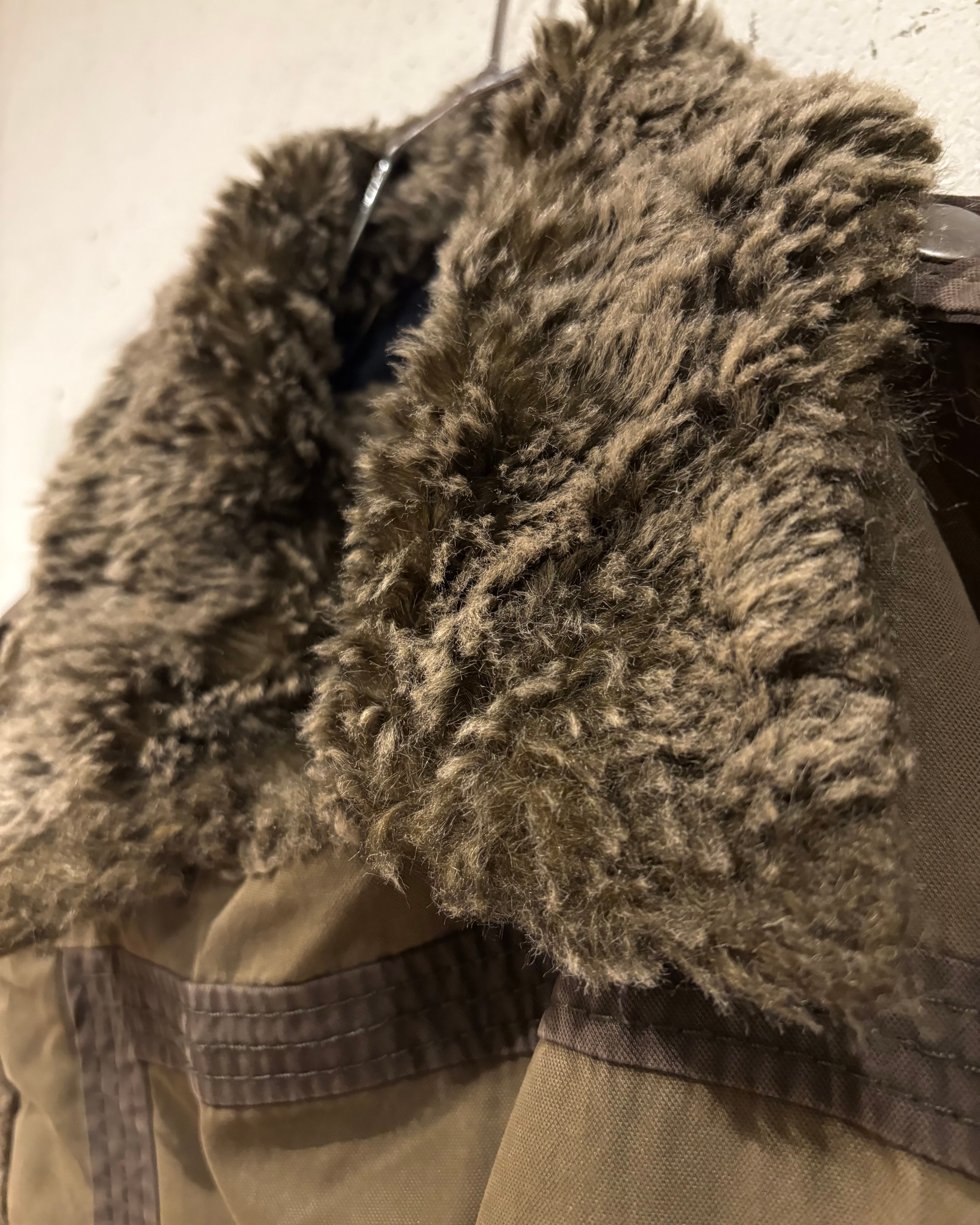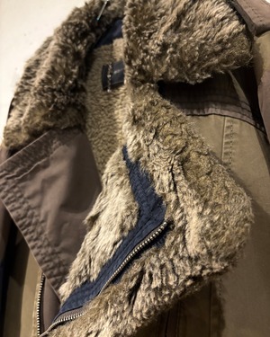 ボディ内側と襟に贅沢に敷き詰められたボアがこのアイテムの個性をグッと引き上げ。裏全面のボアが保温力を発揮し、大ぶりの襟ボアは首周りを包み込むように暖かく、フロントを開けて着たときの迫力ある見え方も魅力的です。