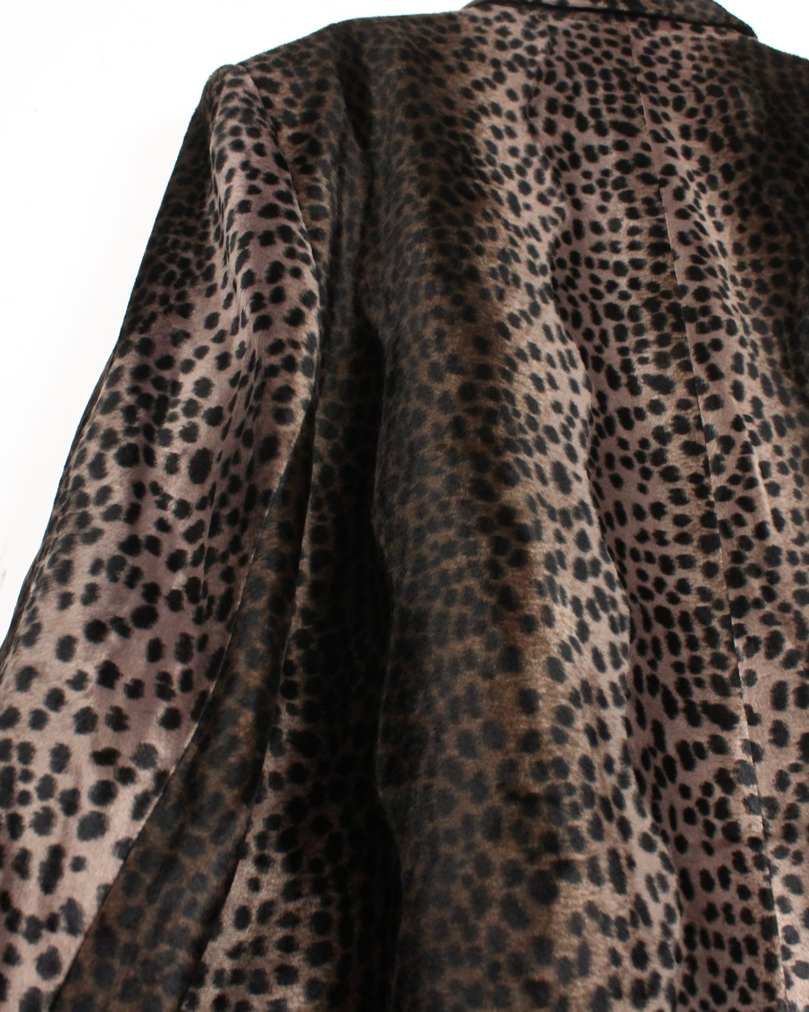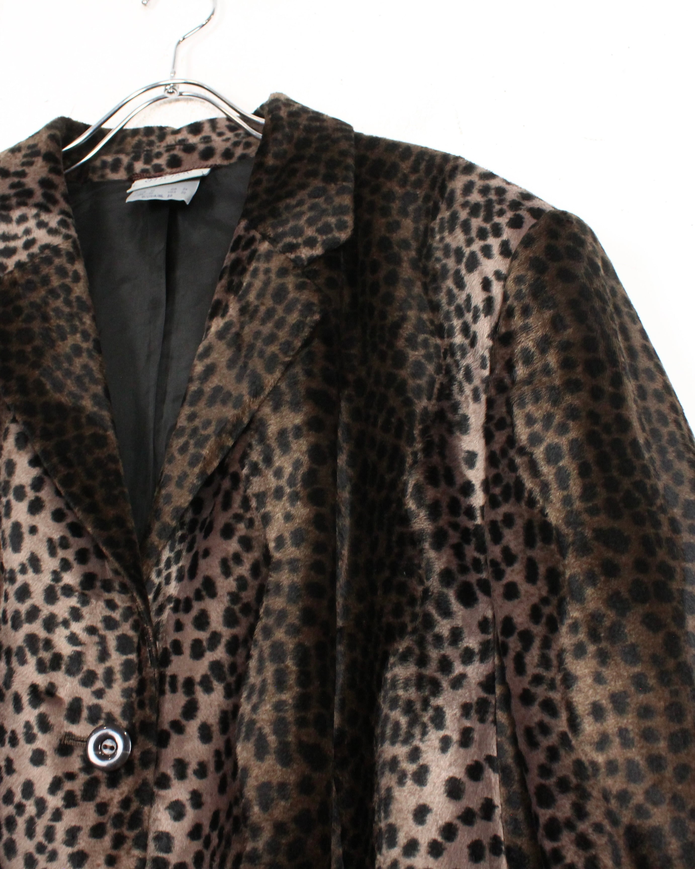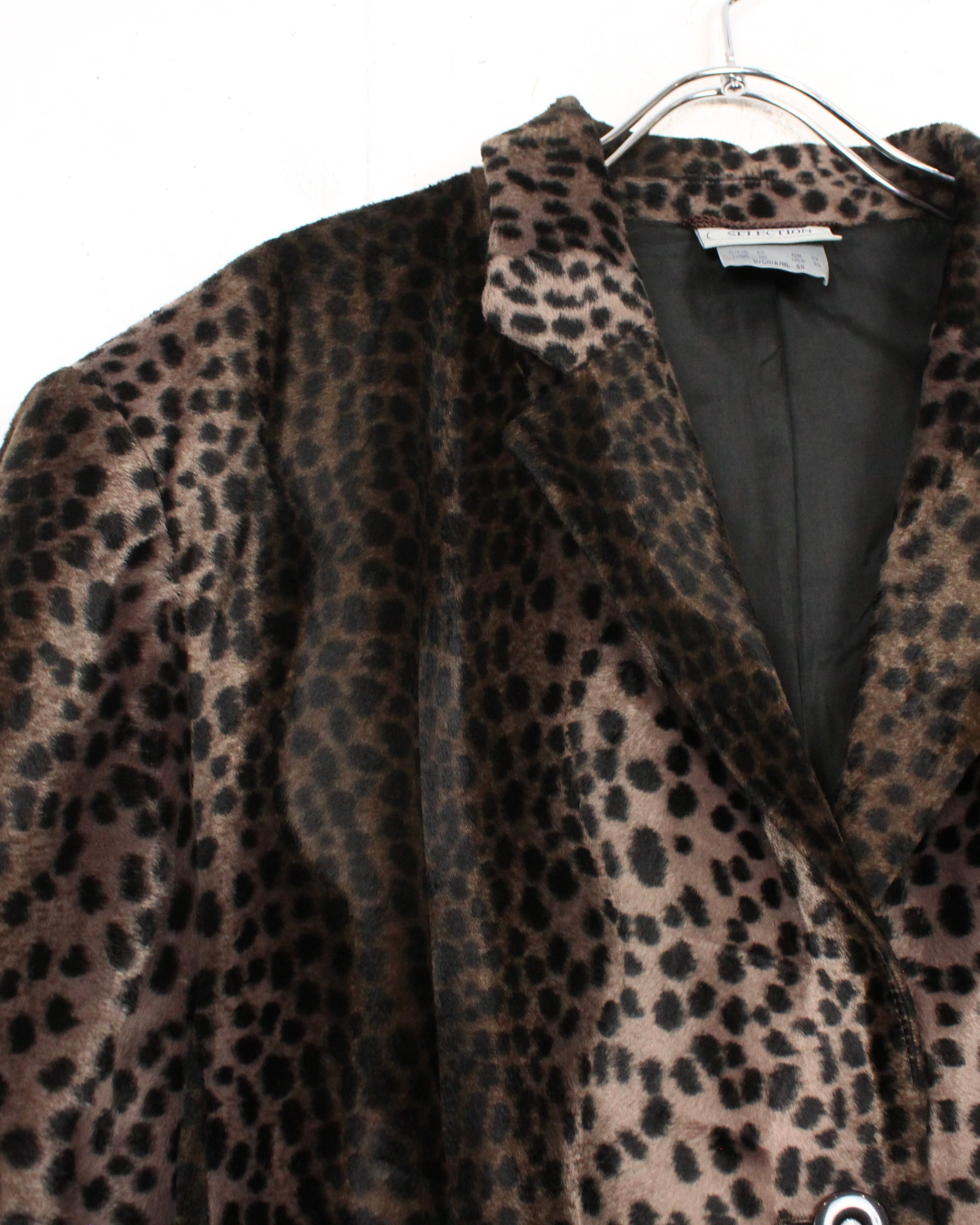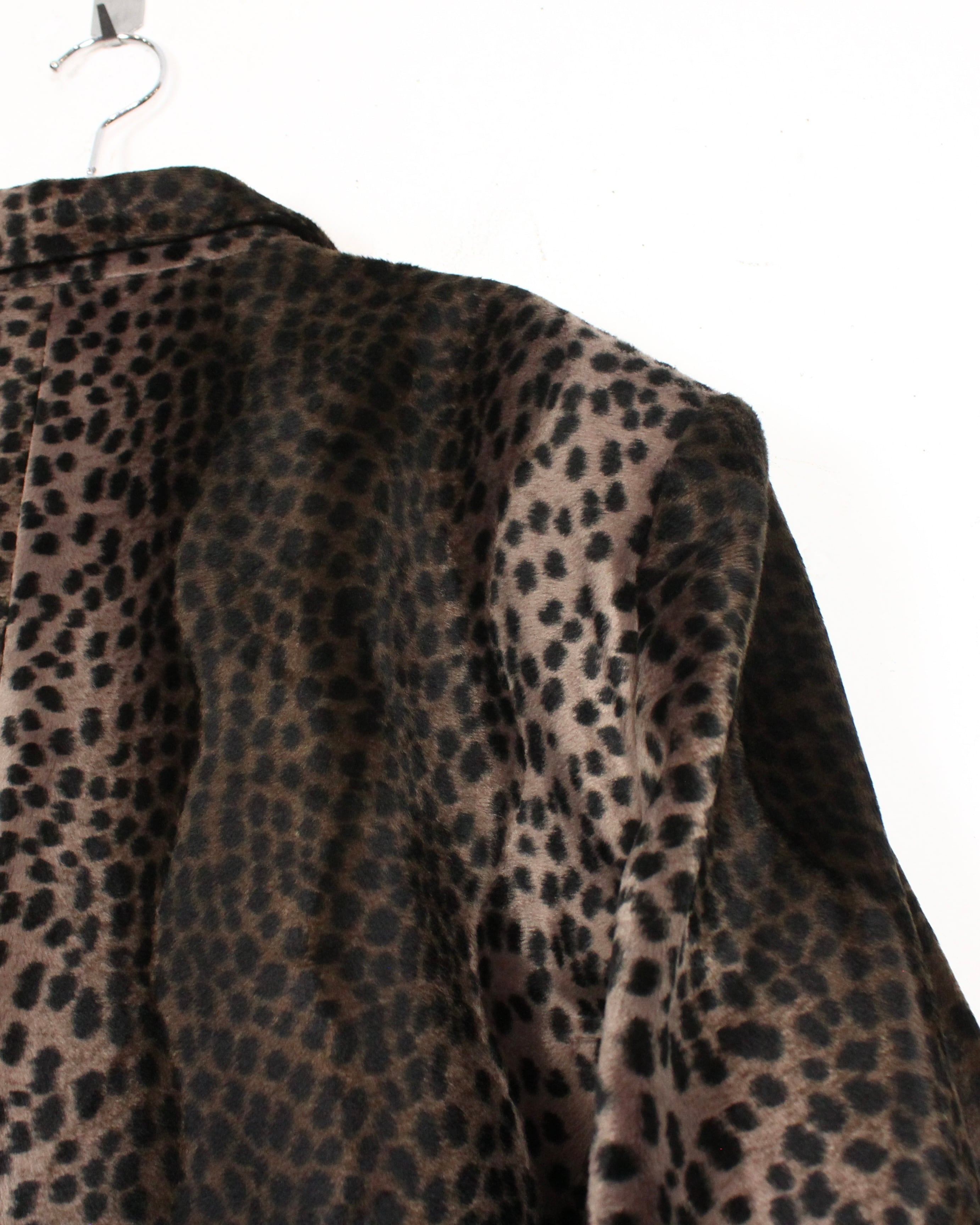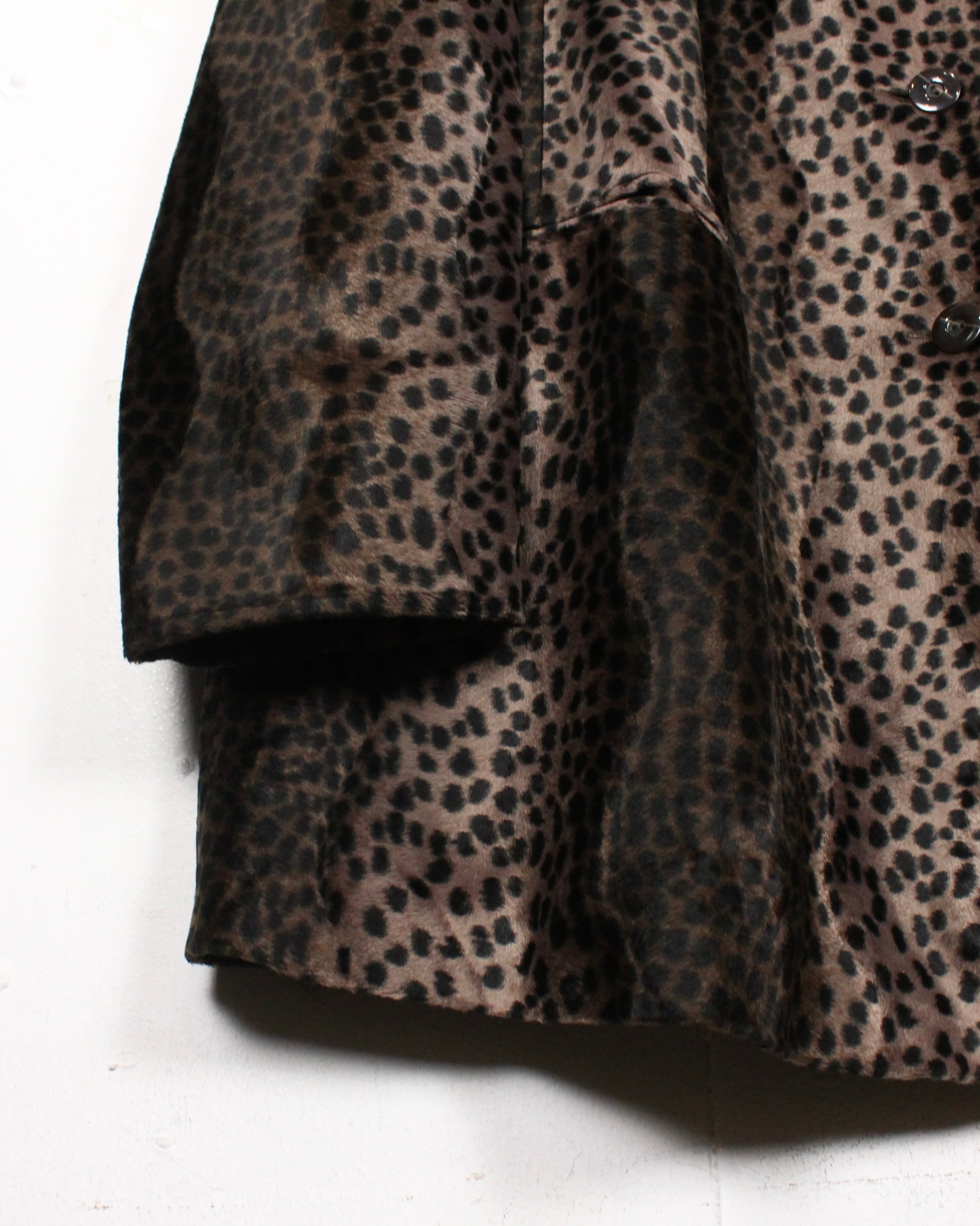 レオパード柄を全面に纏った、インパクト抜群のフェイクファーテーラードジャケット。