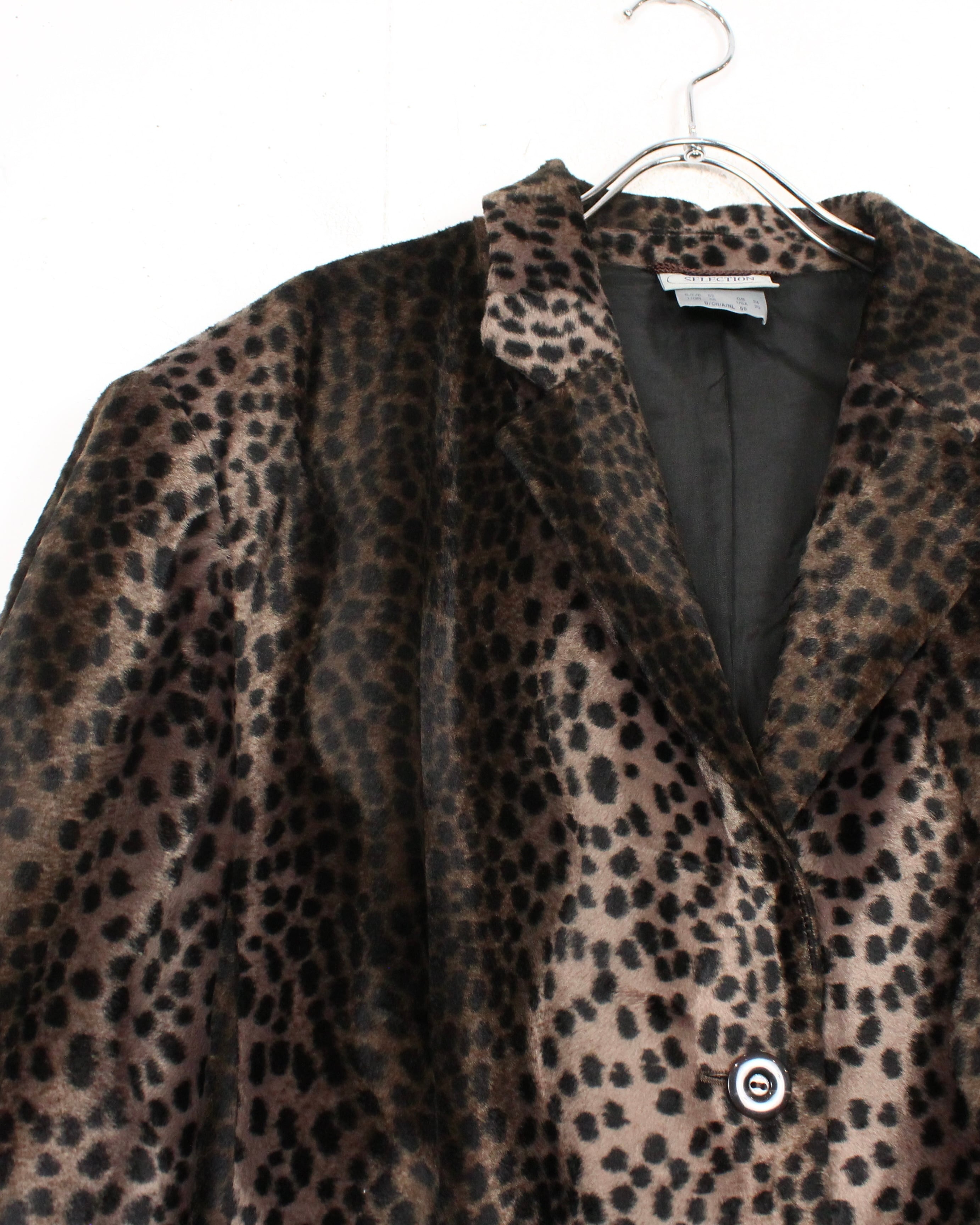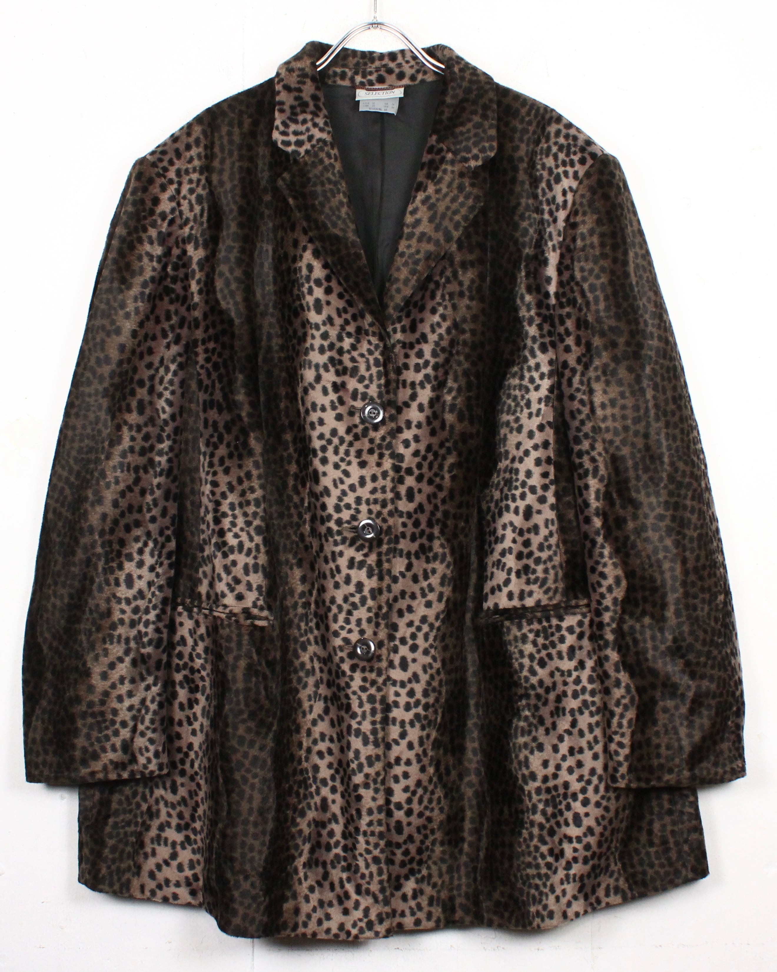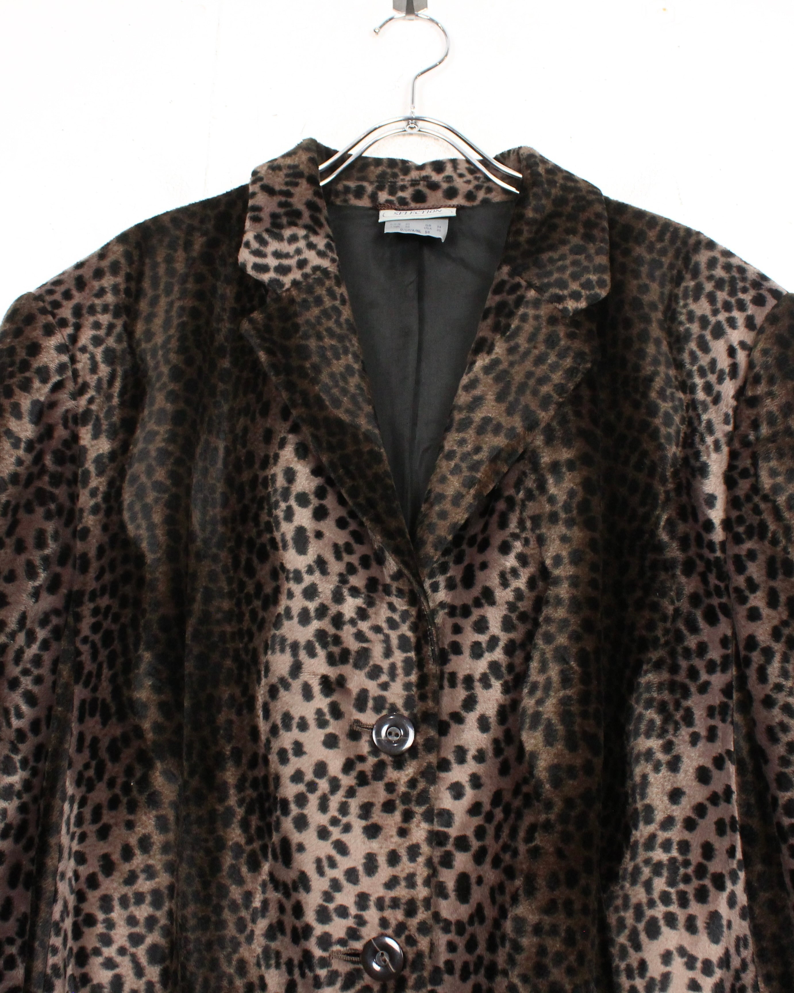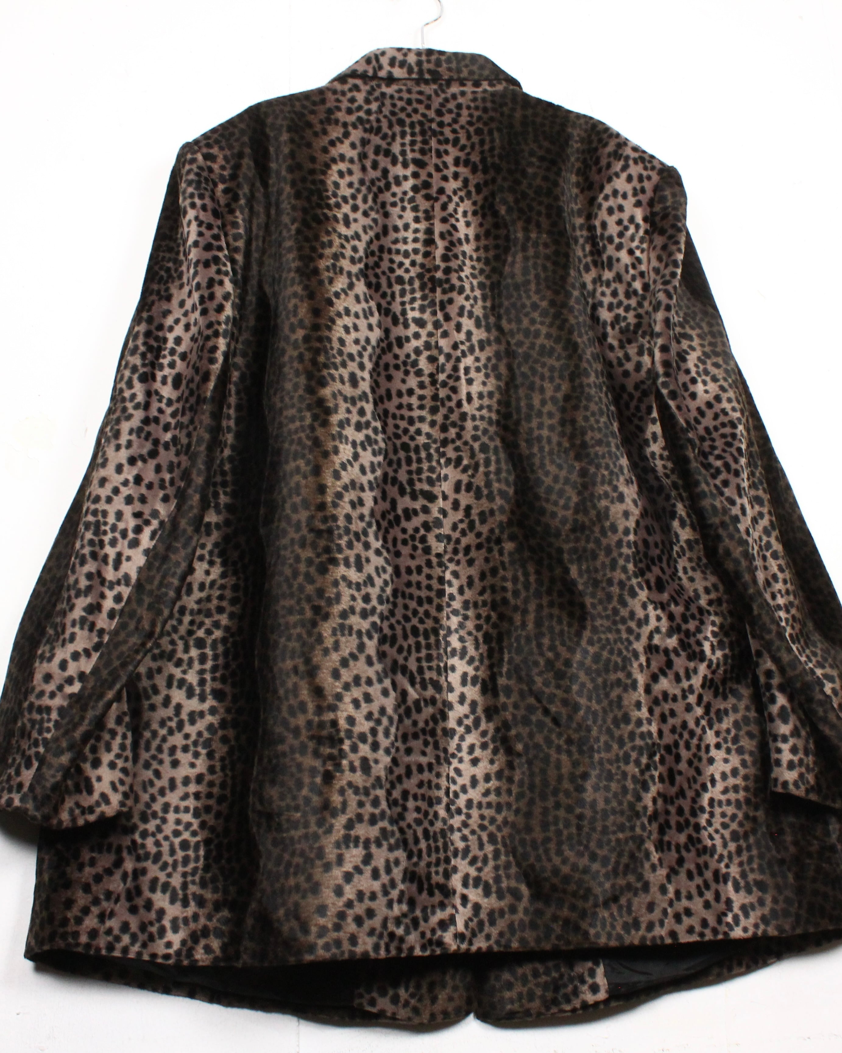 レオパード柄を全面に纏った、インパクト抜群のフェイクファーテーラードジャケット。