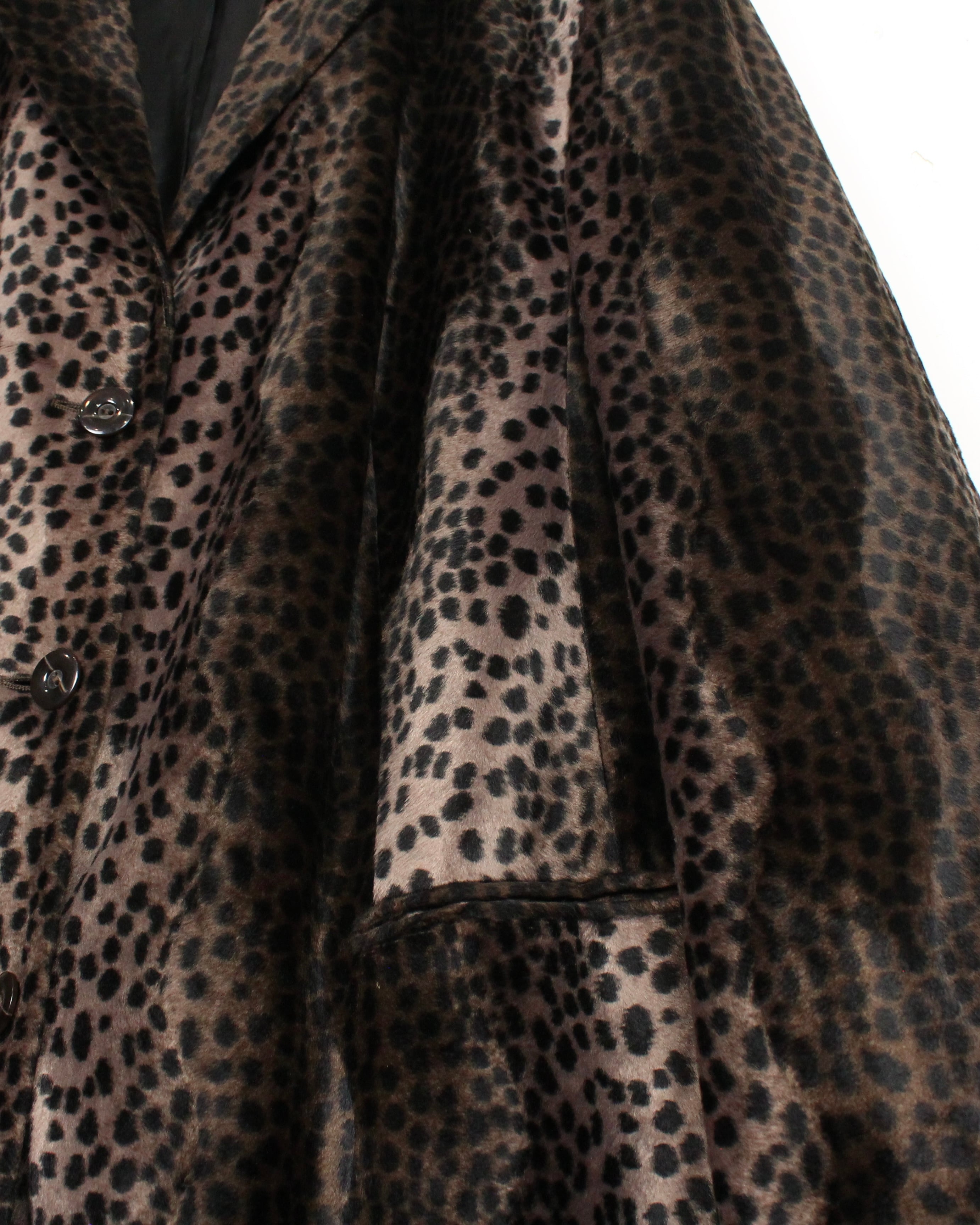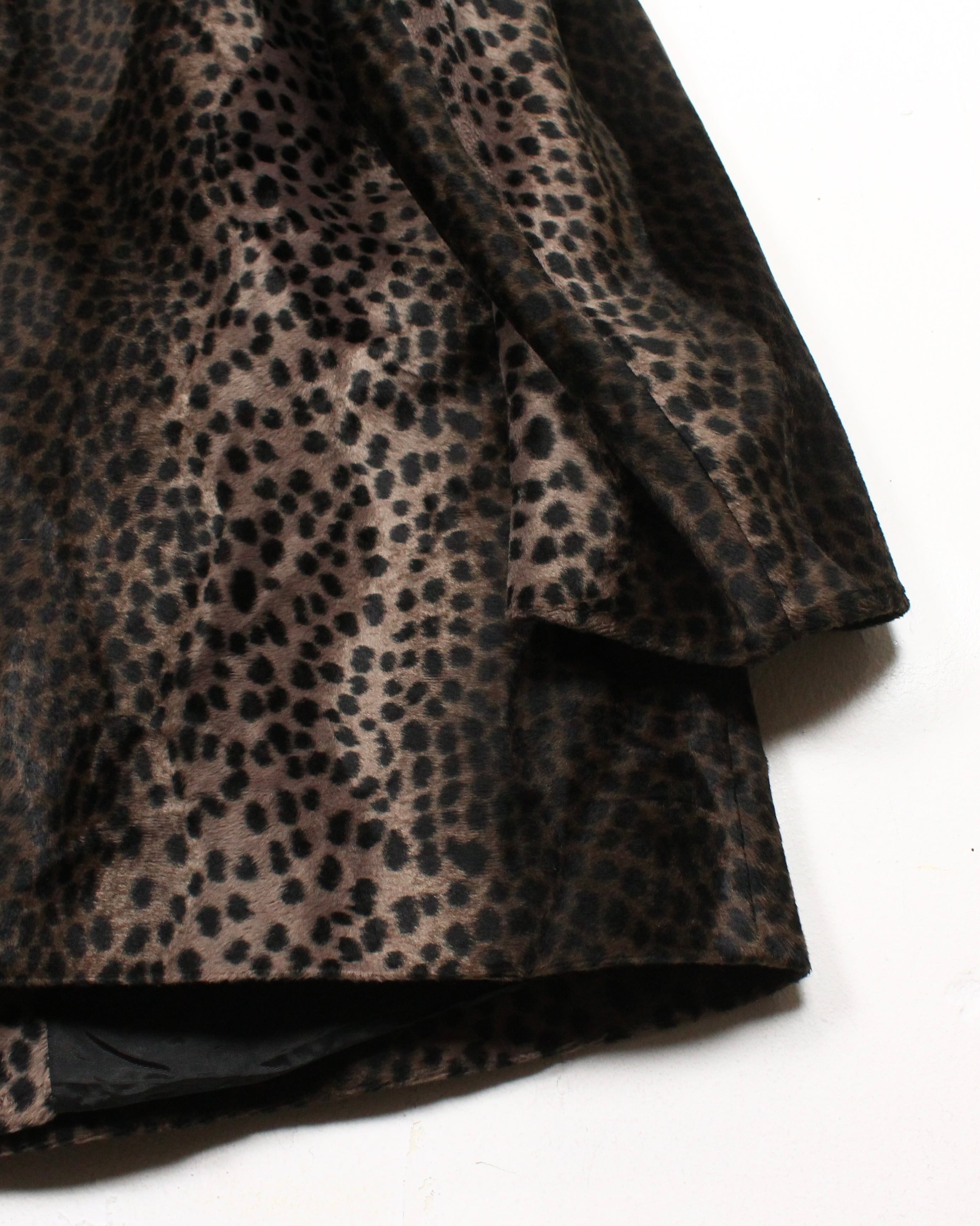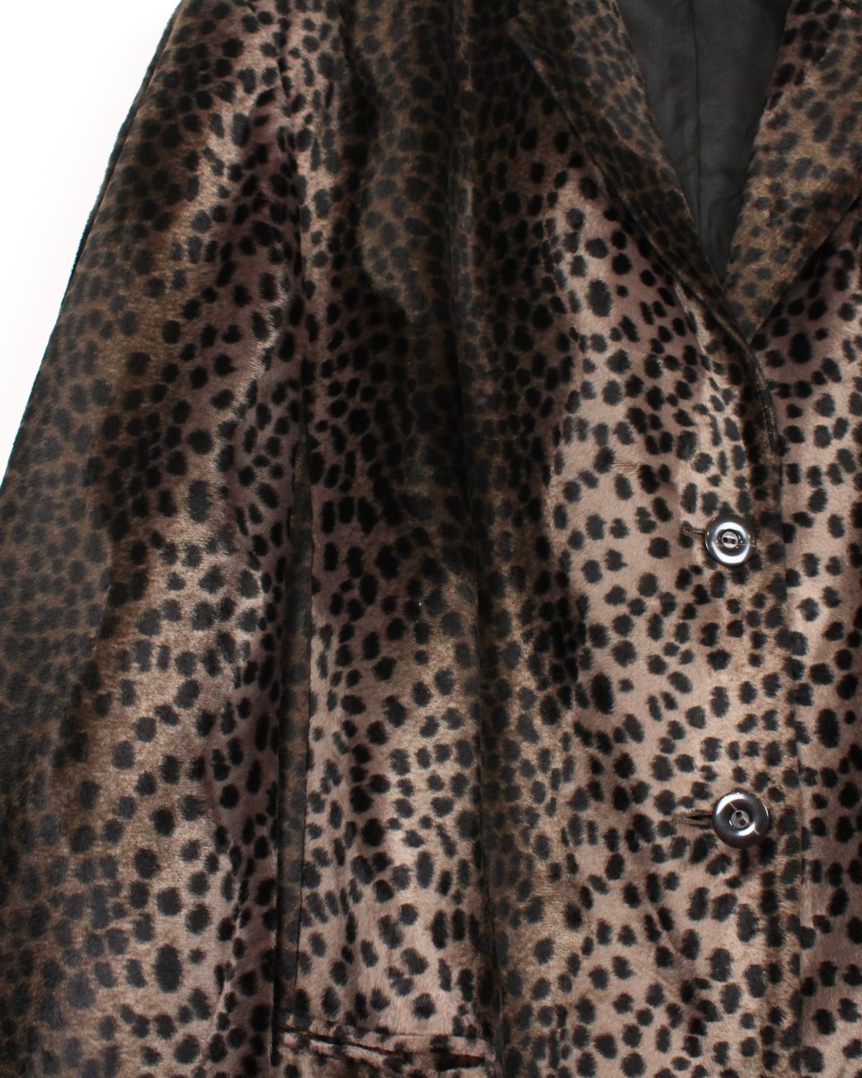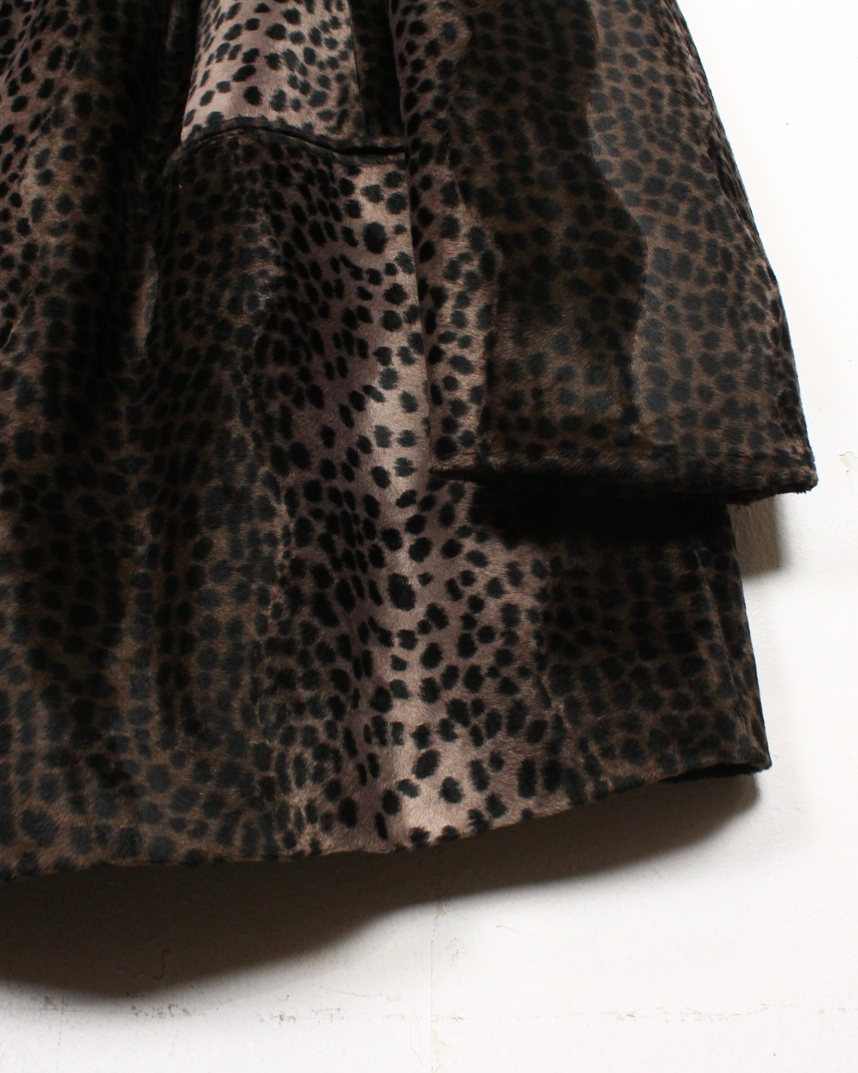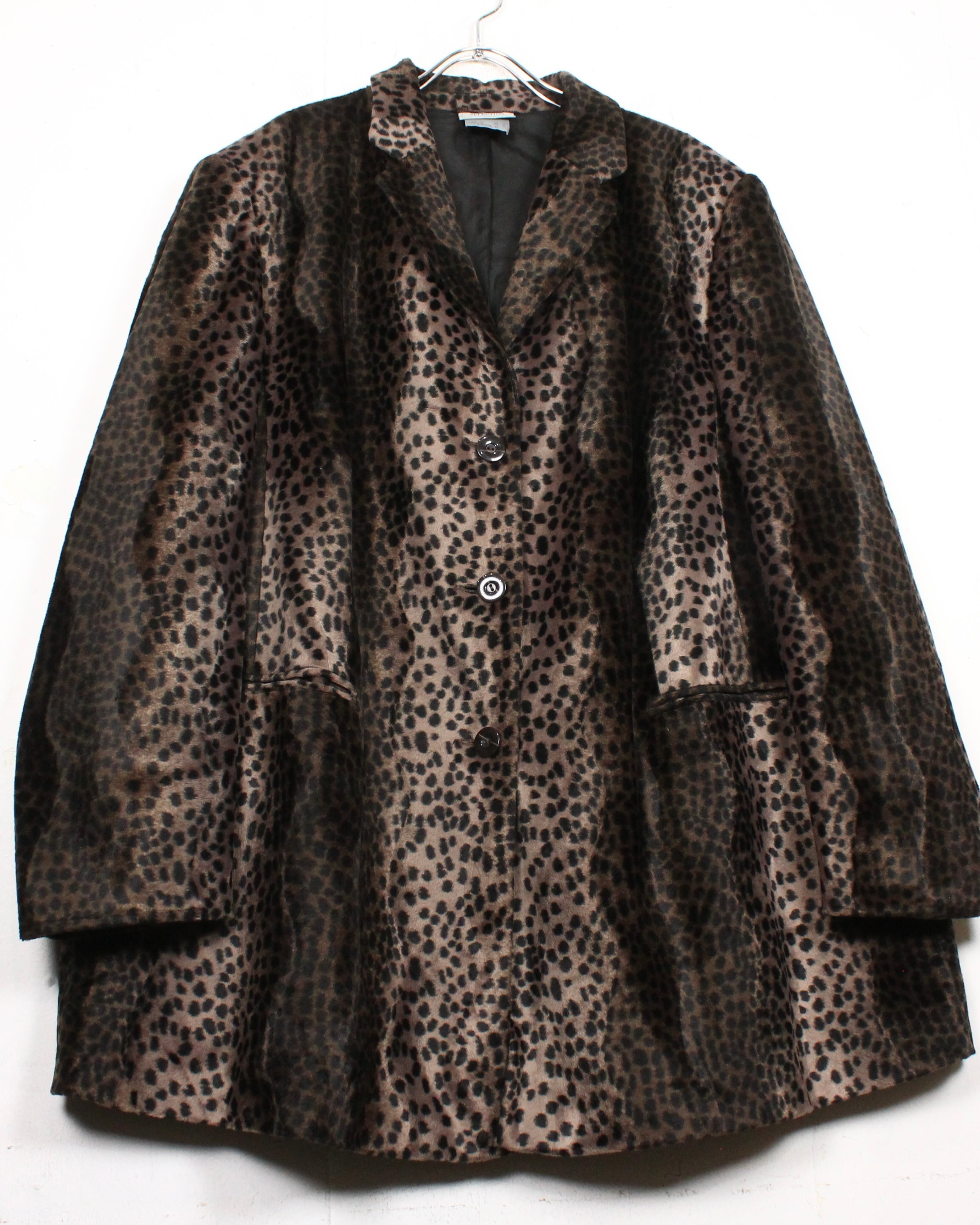 レオパード柄を全面に纏った、インパクト抜群のフェイクファーテーラードジャケット。