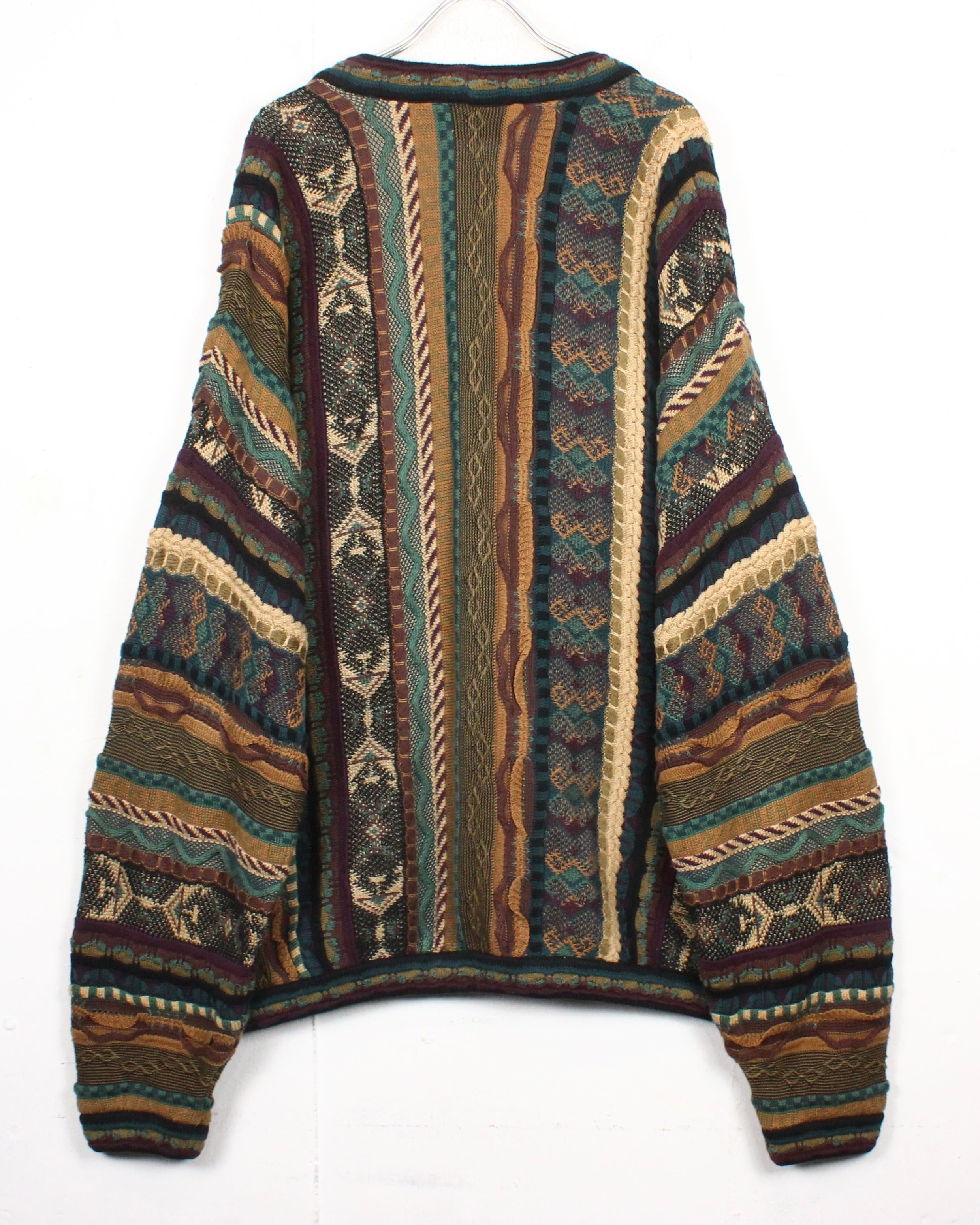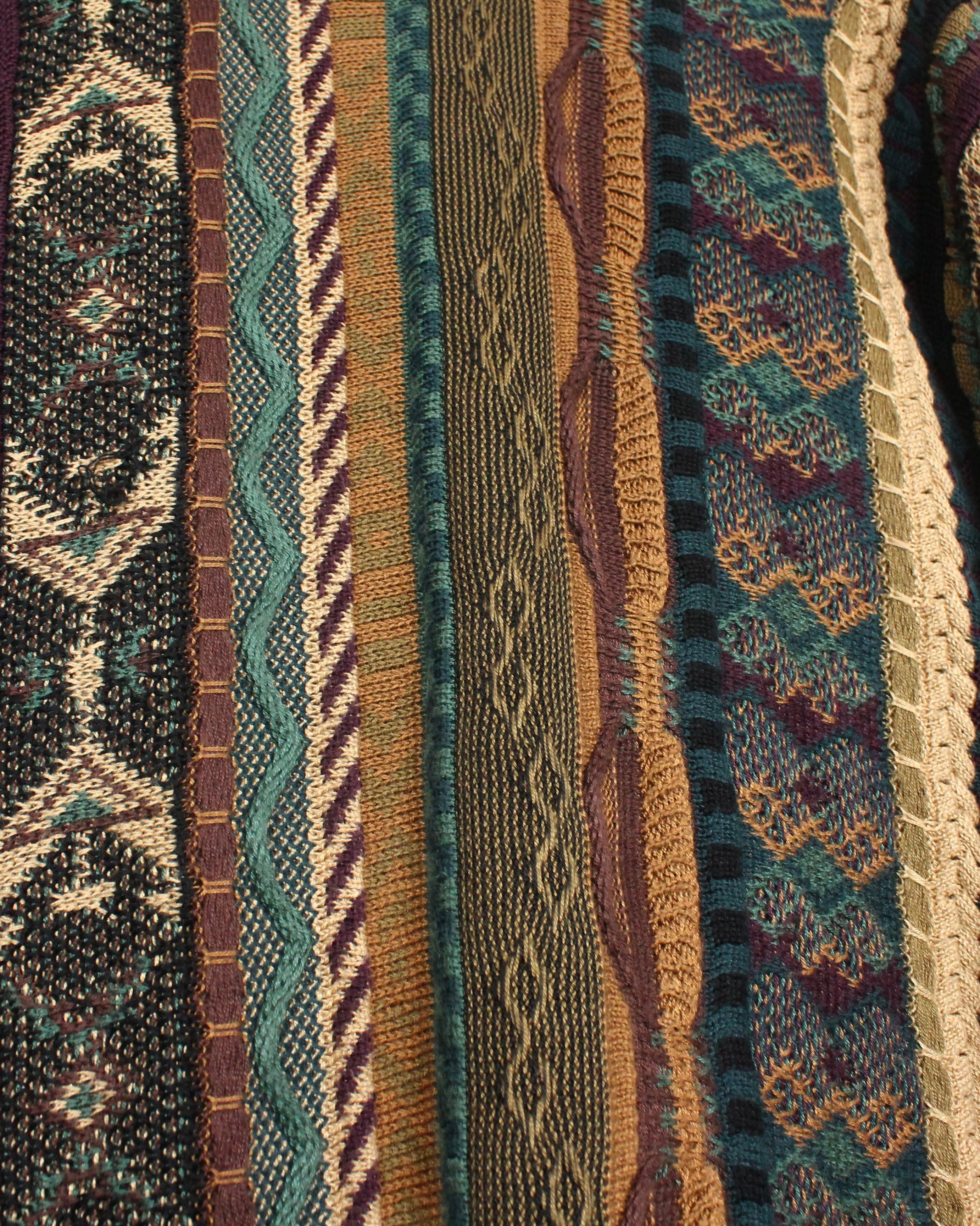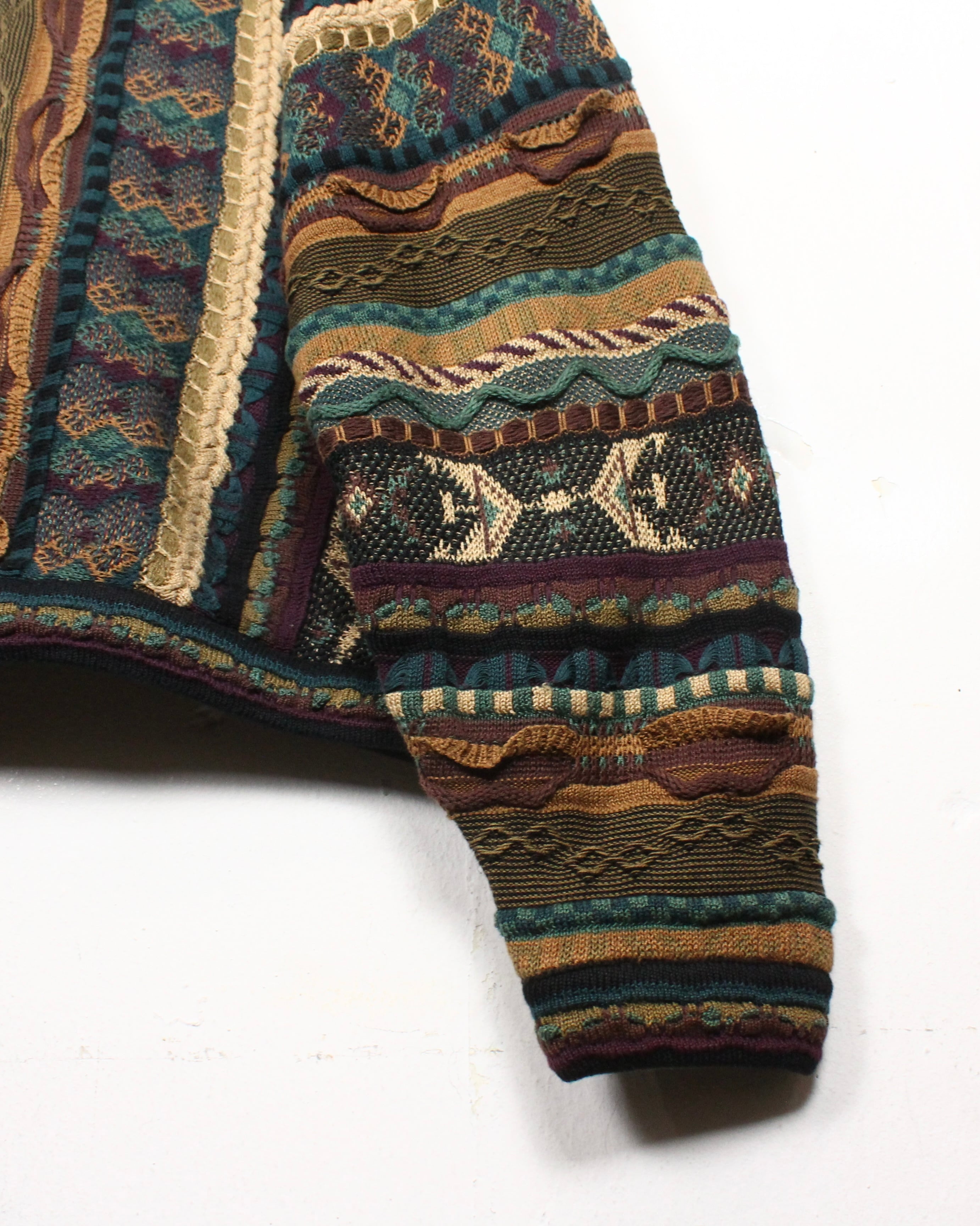 COOGIと並んで語られることも多い“TUNDRA”は、90’sカルチャーの中でも一線を画すニッティングで知られるブランド。深いグリーンやバーガンディ、サンドベージュ等立体的に編み込まれた多色な糸が複雑に走り、唯一無二の存在感を放ちます。