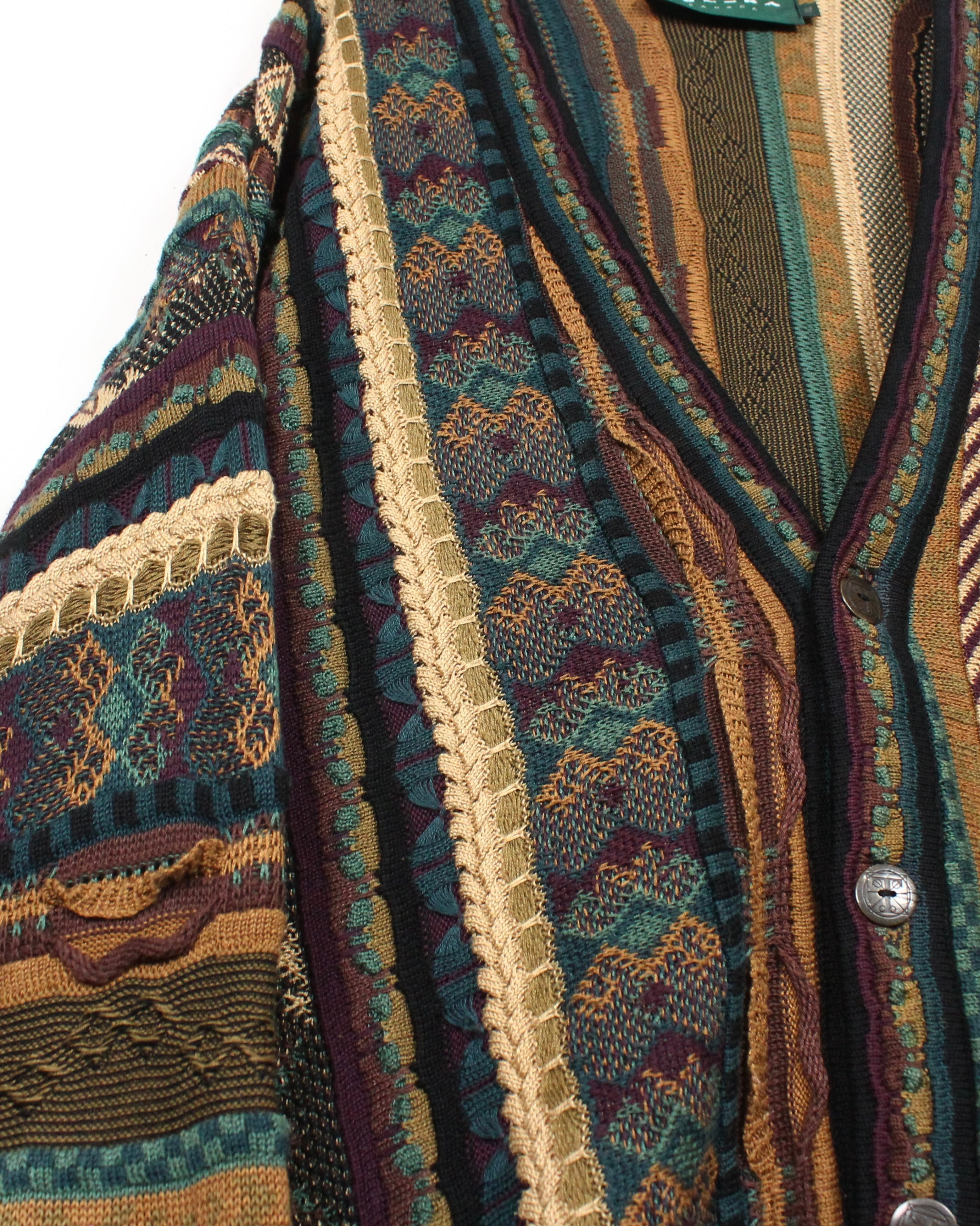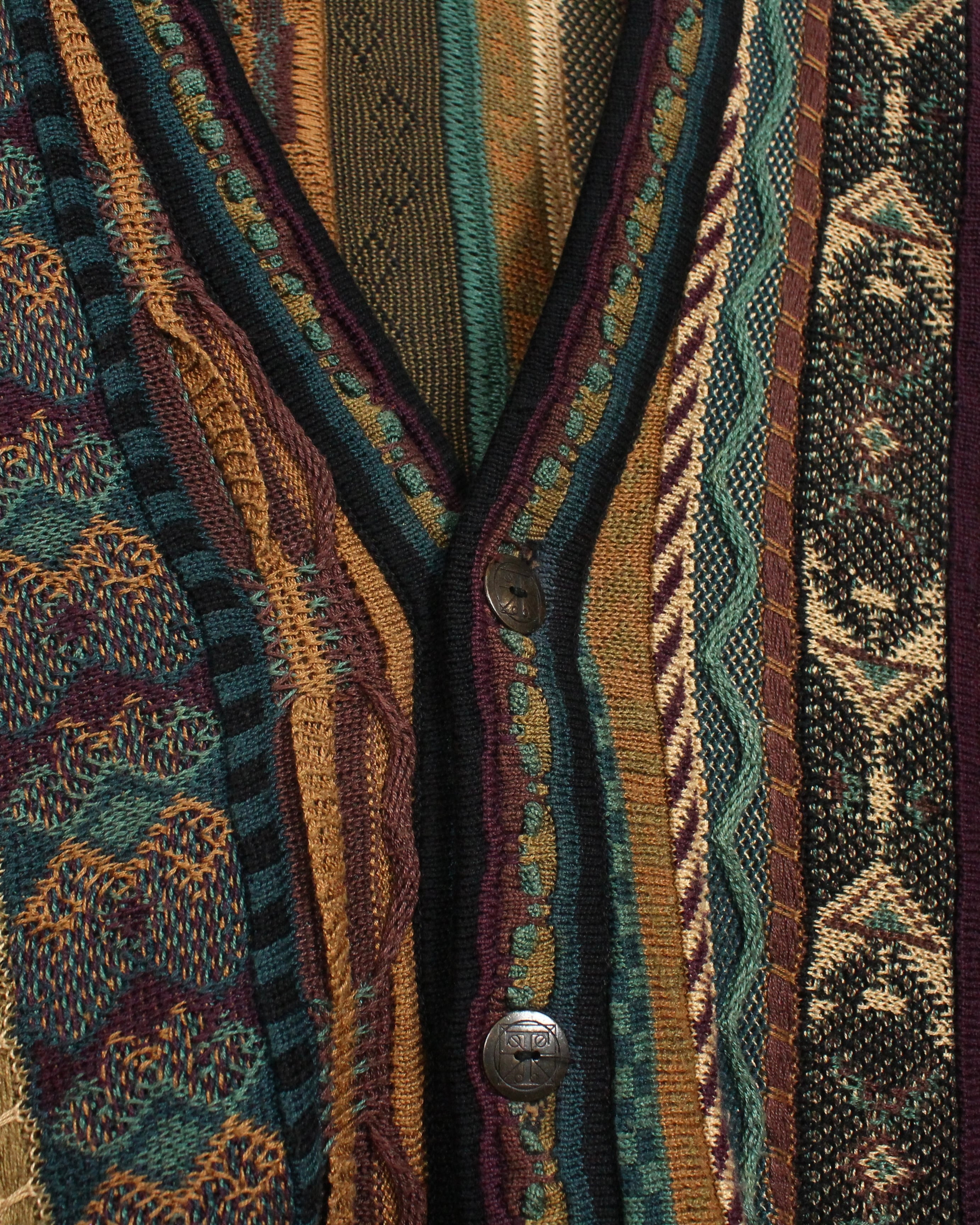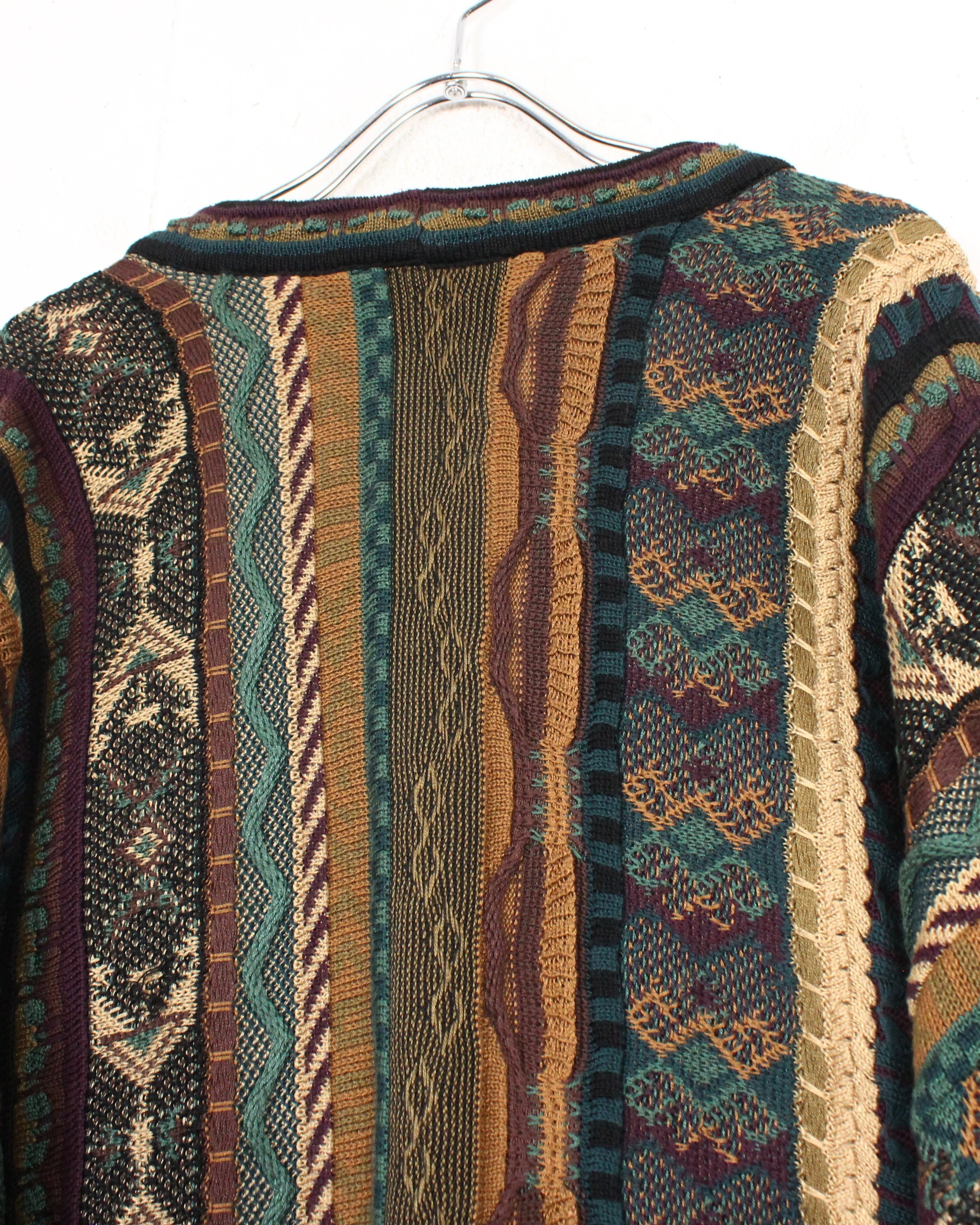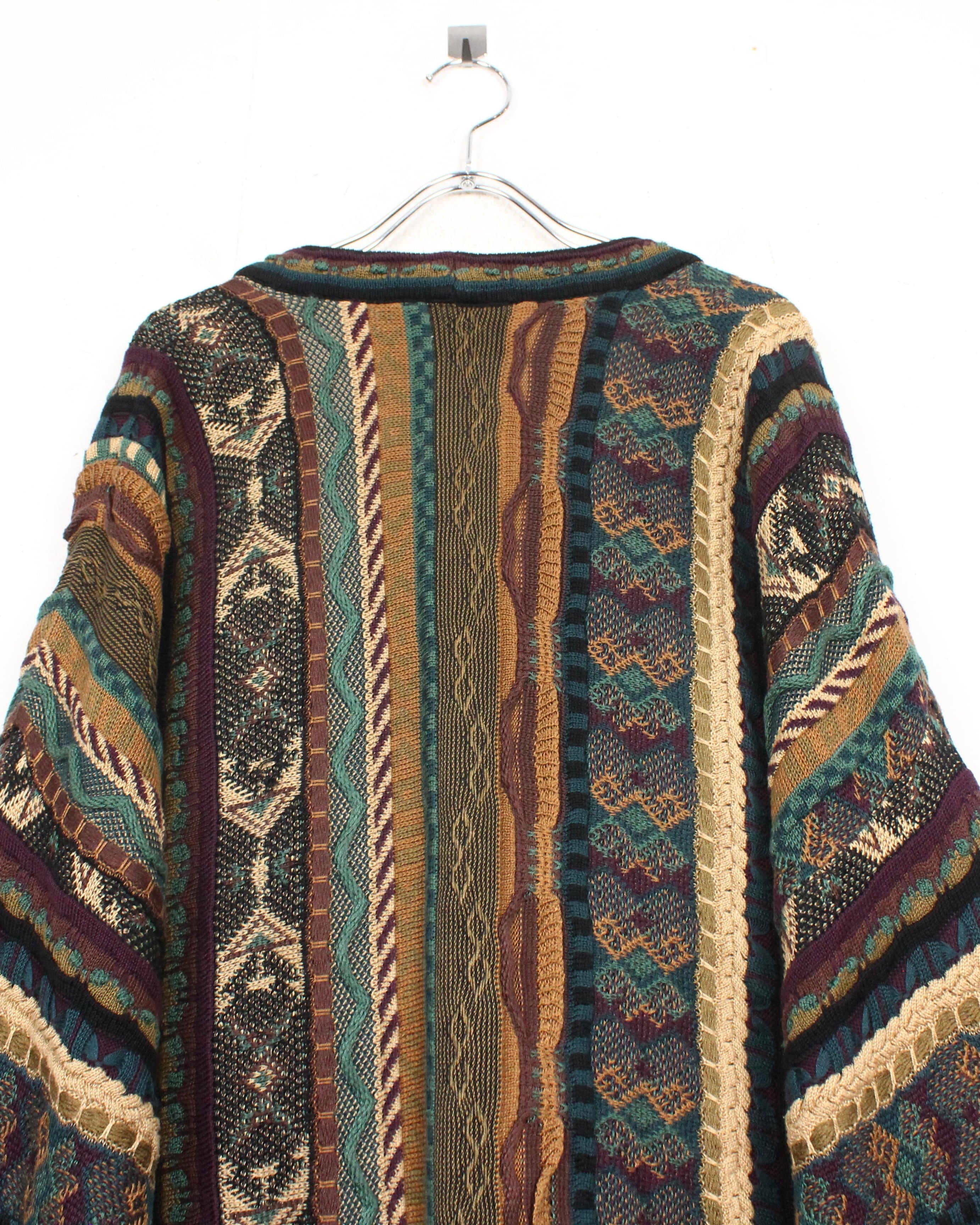 COOGIと並んで語られることも多い“TUNDRA”は、90’sカルチャーの中でも一線を画すニッティングで知られるブランド。深いグリーンやバーガンディ、サンドベージュ等立体的に編み込まれた多色な糸が複雑に走り、唯一無二の存在感を放ちます。