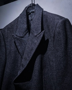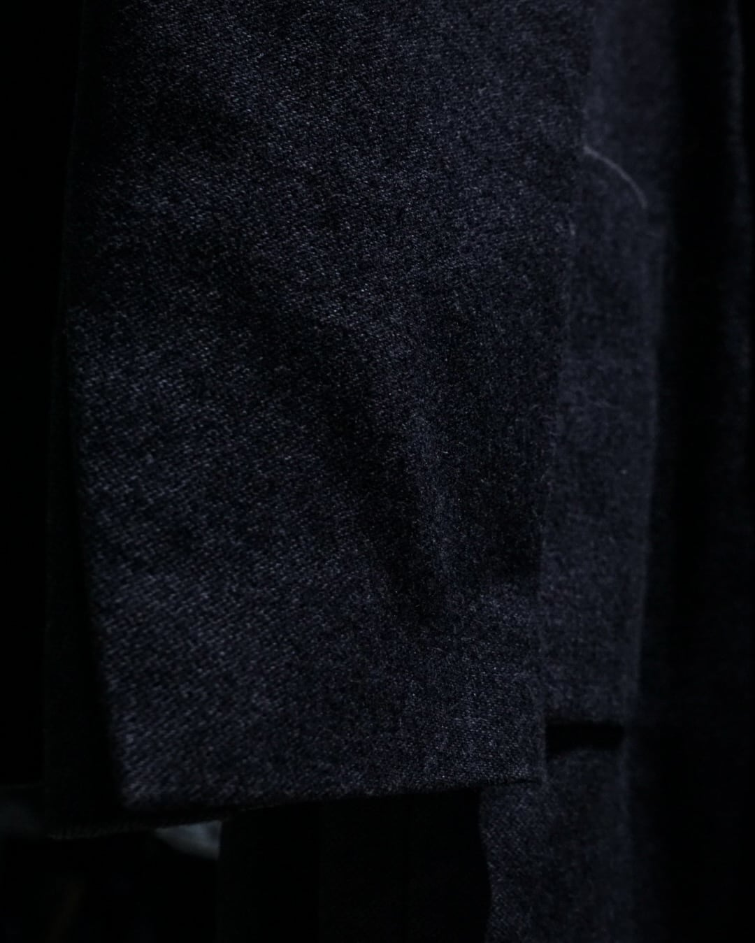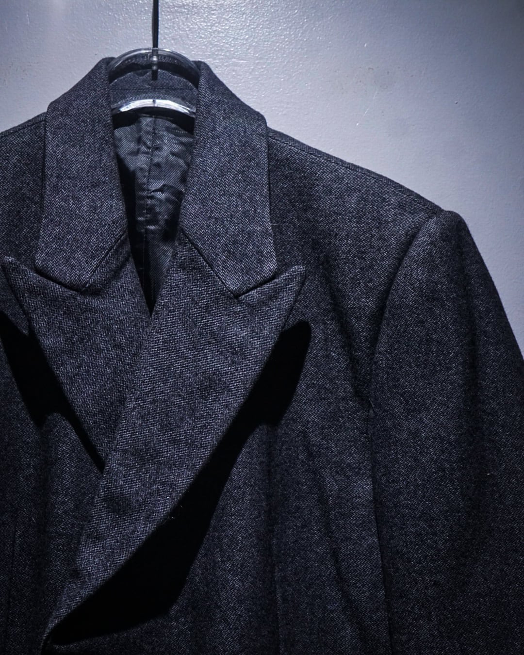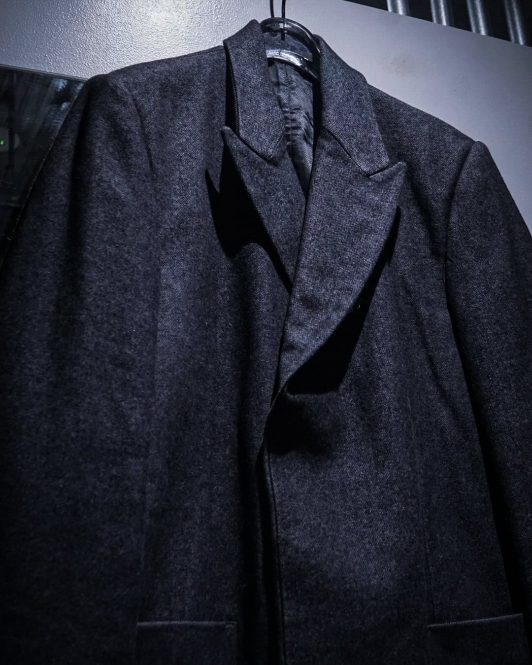 深みのあるチャコールトーンをベースに、直線的かつ洗練されたカッティングで仕立てられた1着。