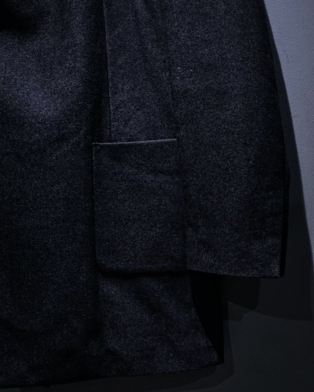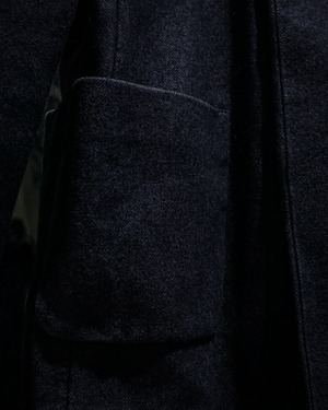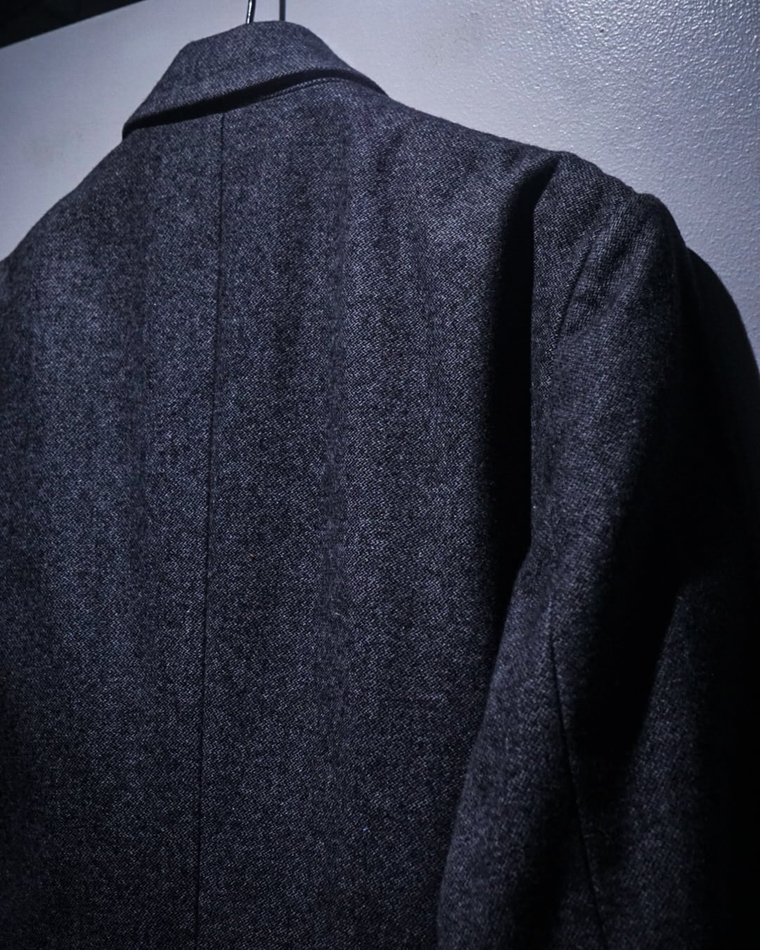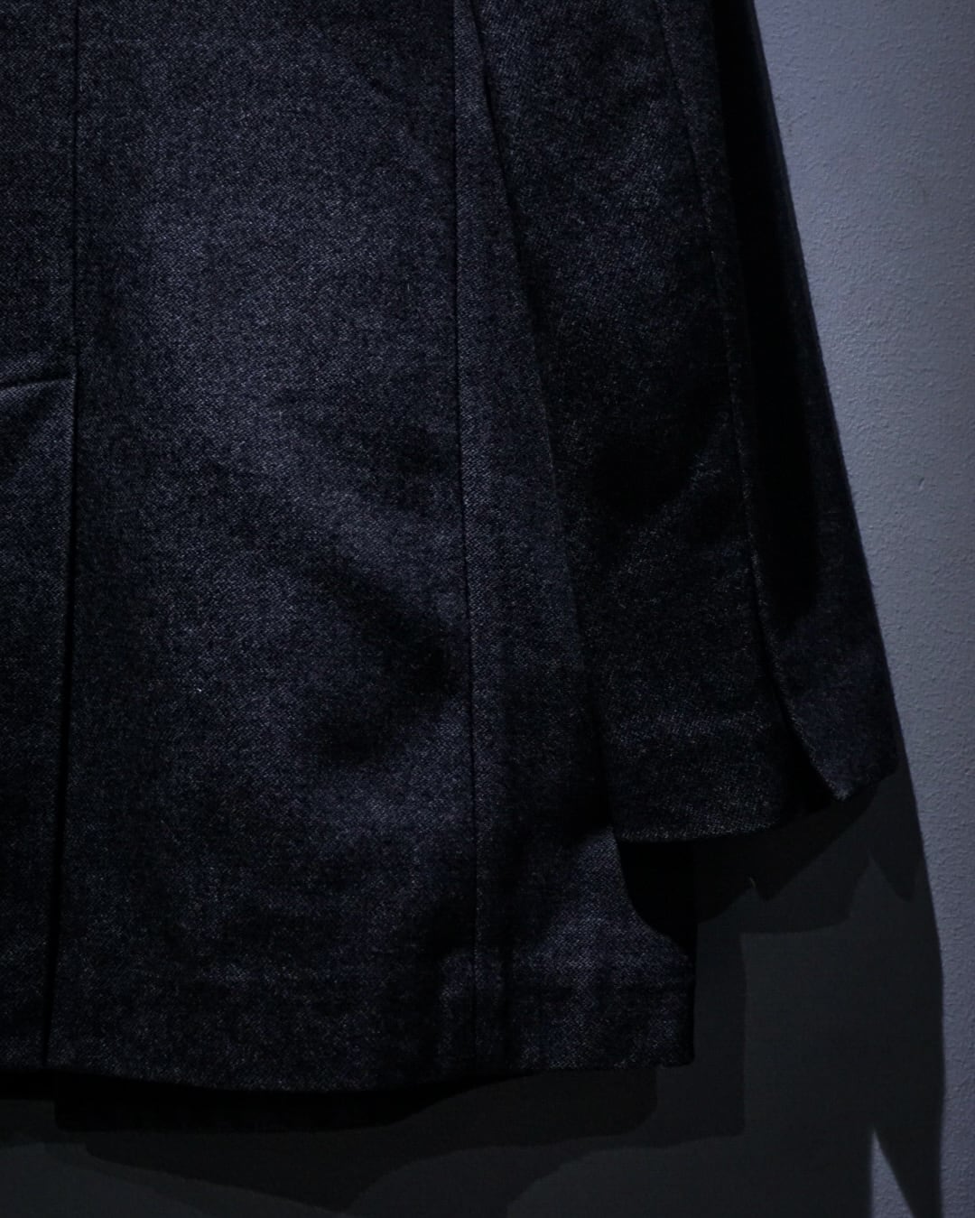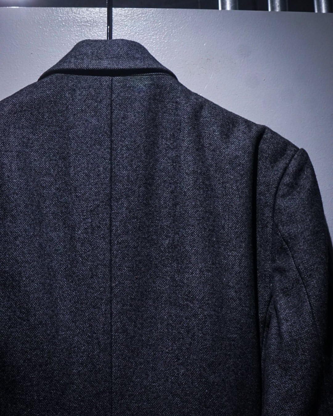 程よい着丈とミドルウェイトのウールが組み合わさりスタイリングの幅は極めて広く、ワイドスラックスでモードに寄せても、デニムでカジュアルダウンしても品が崩れません。