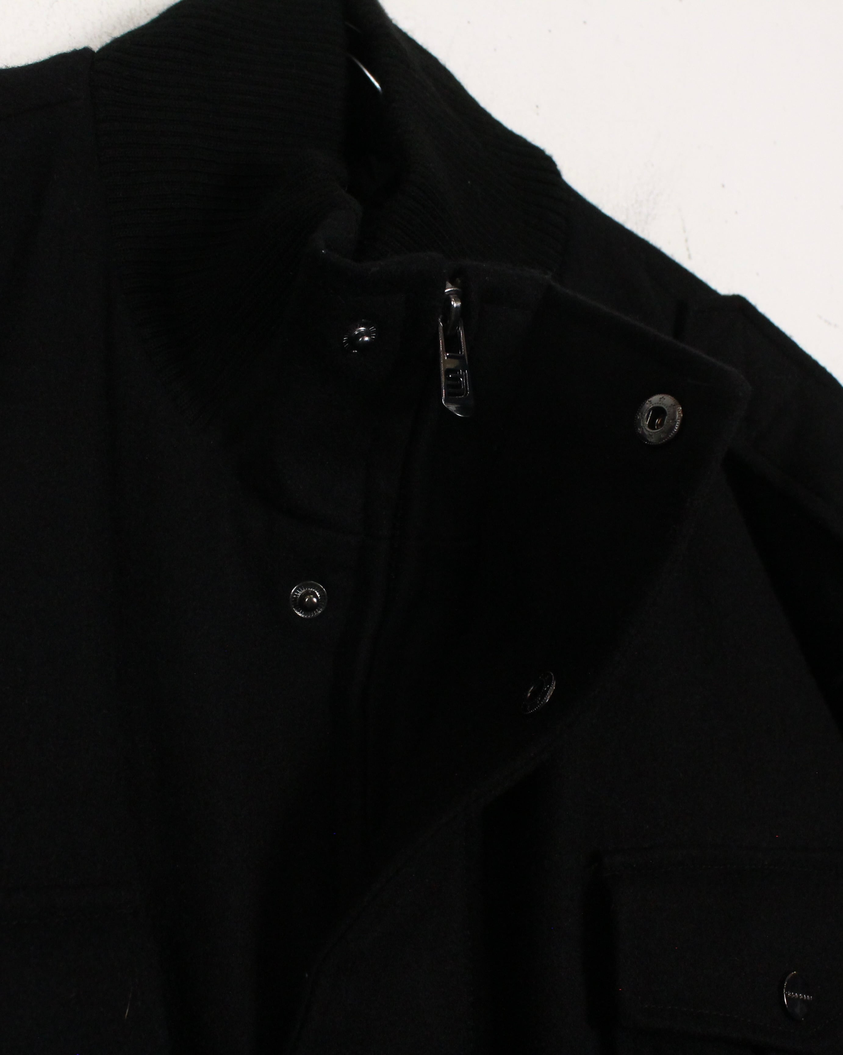 しっかりとした肉厚のウールブレンドボディに、フロントはスナップボタン+ジップの比翼仕立て。無駄を削ぎ落としたミニマルな見た目ながら、ストリートらしさも絶妙に感じられます。